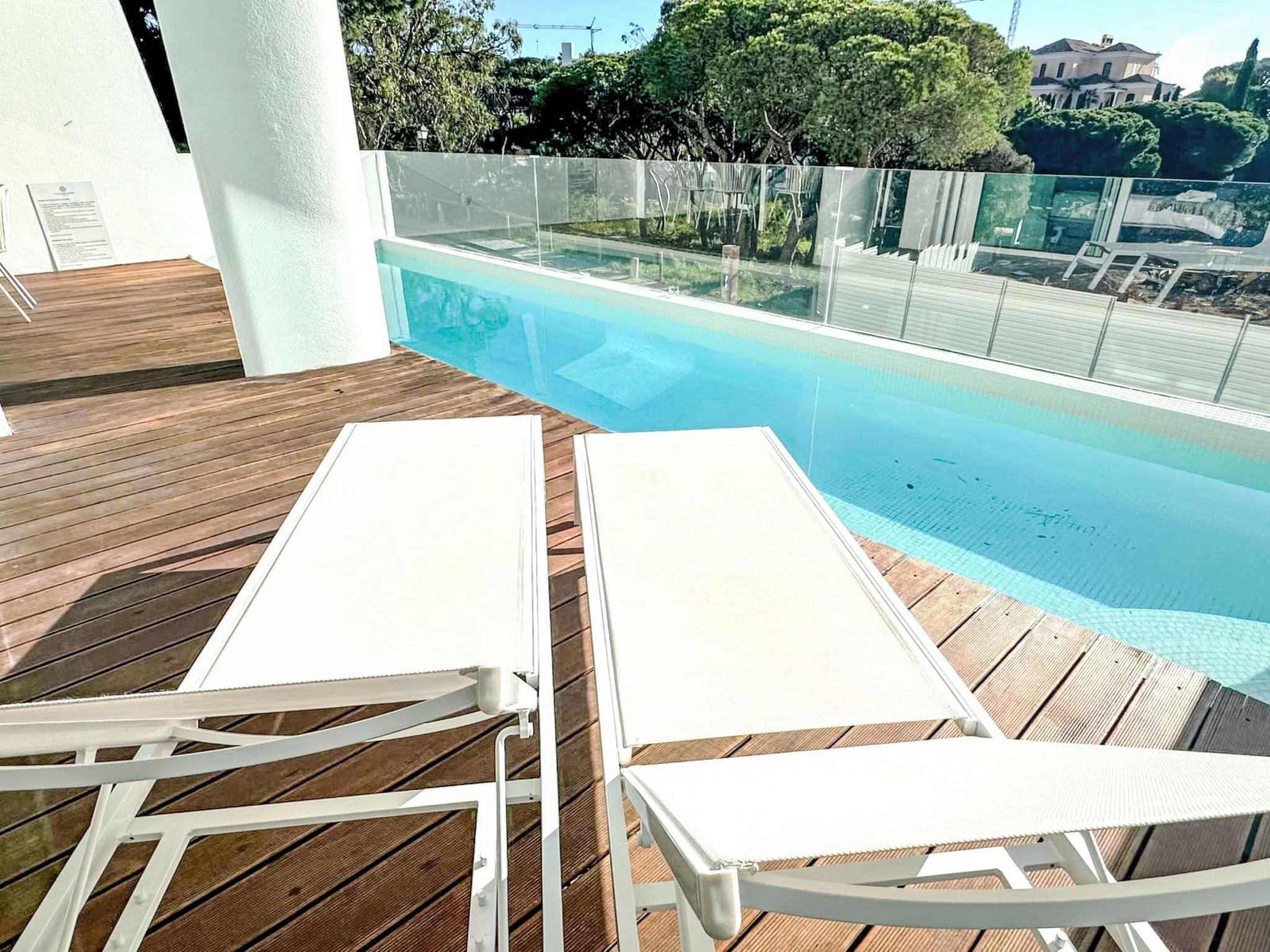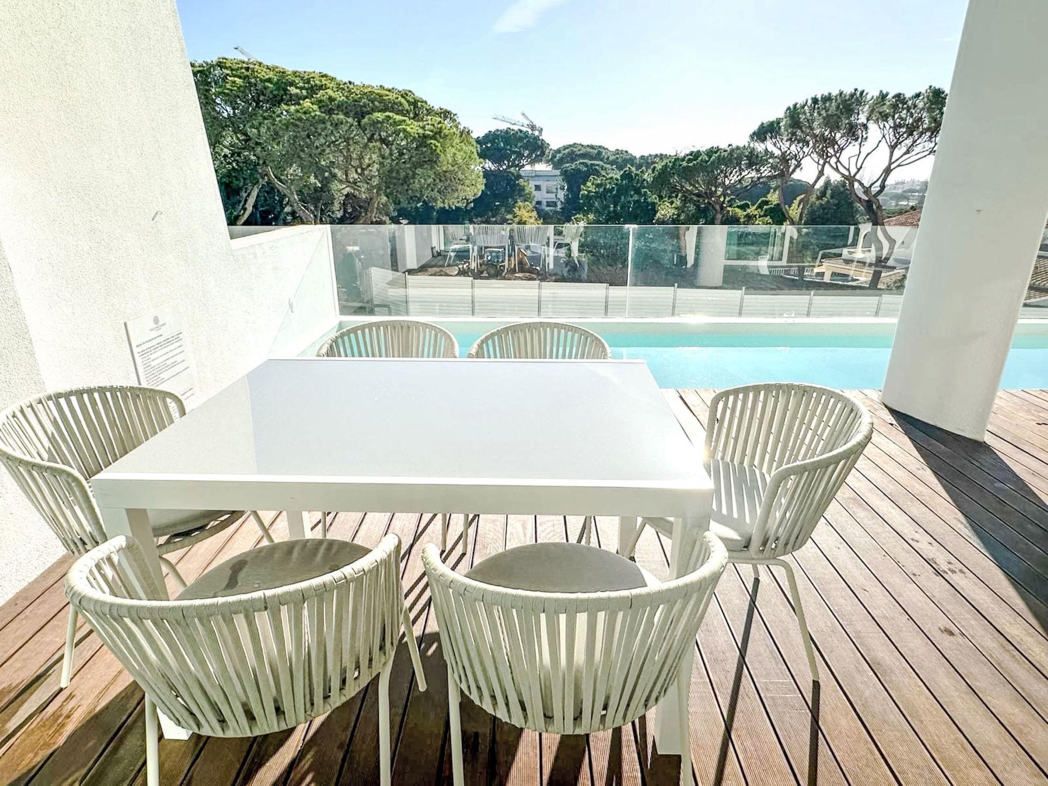 Vale de lobo: Very modern, cosy apartment block "Ocean". In the district Vale de lobo, residential area (villas), 900 m from the sea. Private: swimming pool angular (3 x 8 m, depth 90 - 90 cm, seasonal availability: 01.Jan. - 31.Dec.). In the house: WiFi, air conditioning, washing machine. Room cleaning weekly on request (included). Grocery 3 km, supermarket 3 km, shopping centre 2.4 km, restaurant 900 m, bar 2.6 km, bakery 3 km, café 900 m, pedestrian zone 1 km, bus stop 2.3 km, sandy beach "Praia do Garrão Poente" 900 m. Marina 13.2 km, golf course (18 hole) 2.3 km, surf school 13.2 km, tennis 850 m, riding stable 11.2 km. Nearby attractions: Vilamoura 2400 km, Kartódromo 6.9 km, Aquashow 7.9 km, Algarve Buggy Tours 9.9 km, Casino Vilamoura 11.2 km, Aeroporto Faro 18.4 km. Please note: car recommended. Suitable for families. Loading and unloading of baggage is possible at the holiday house.