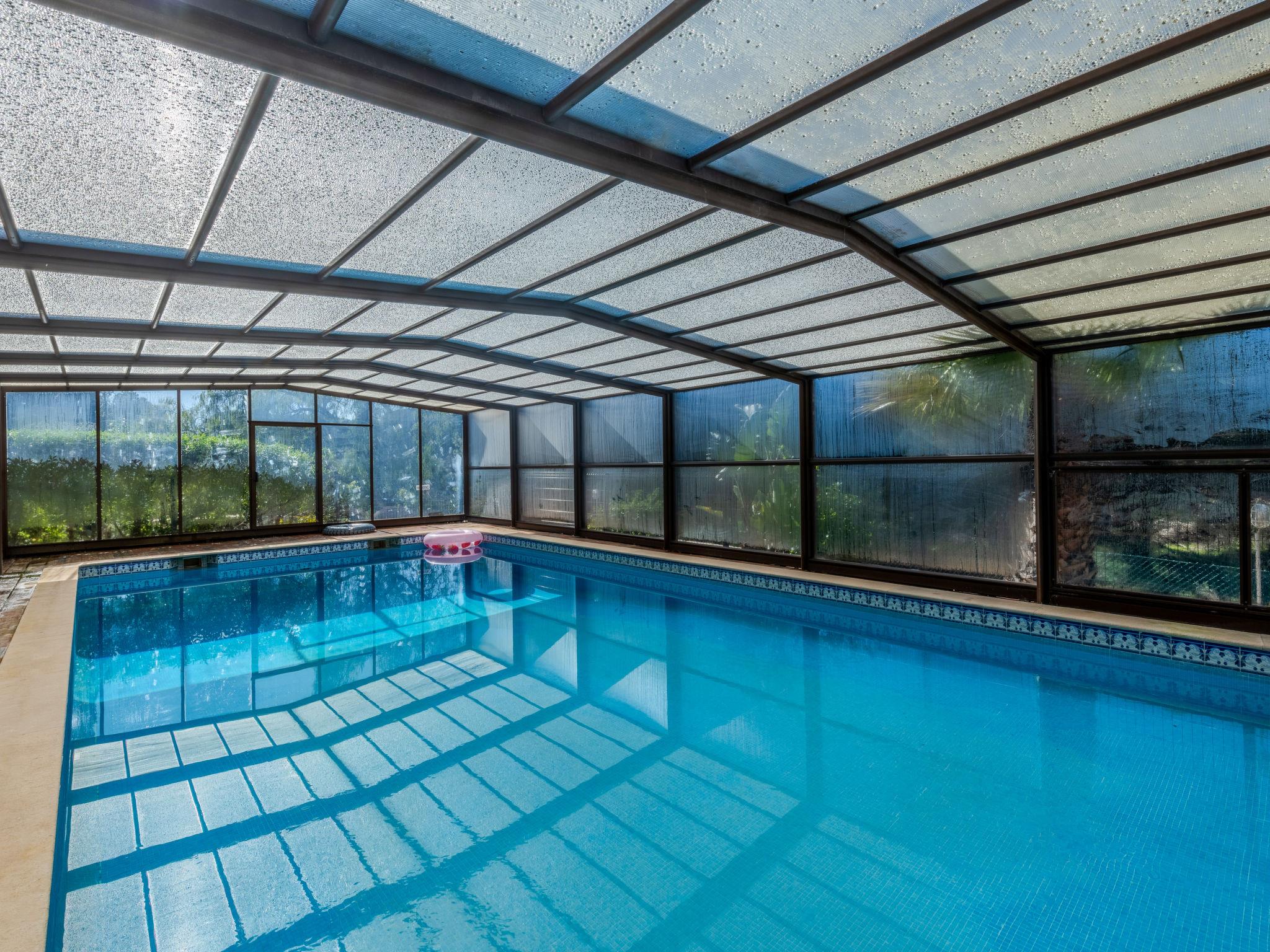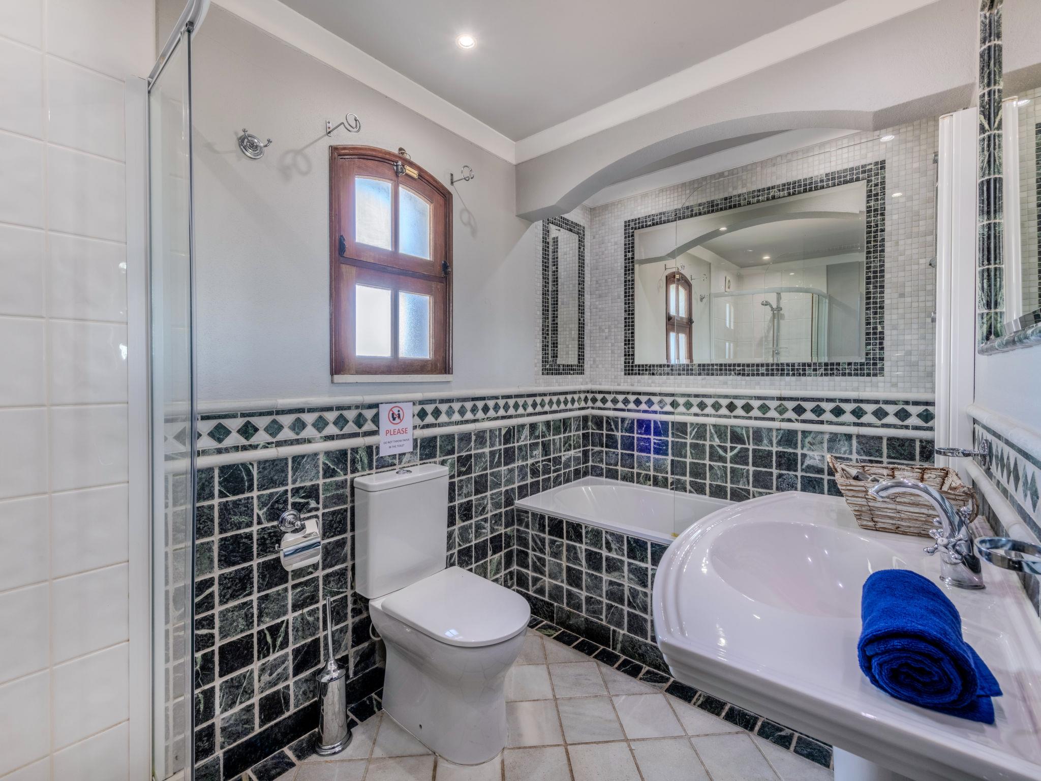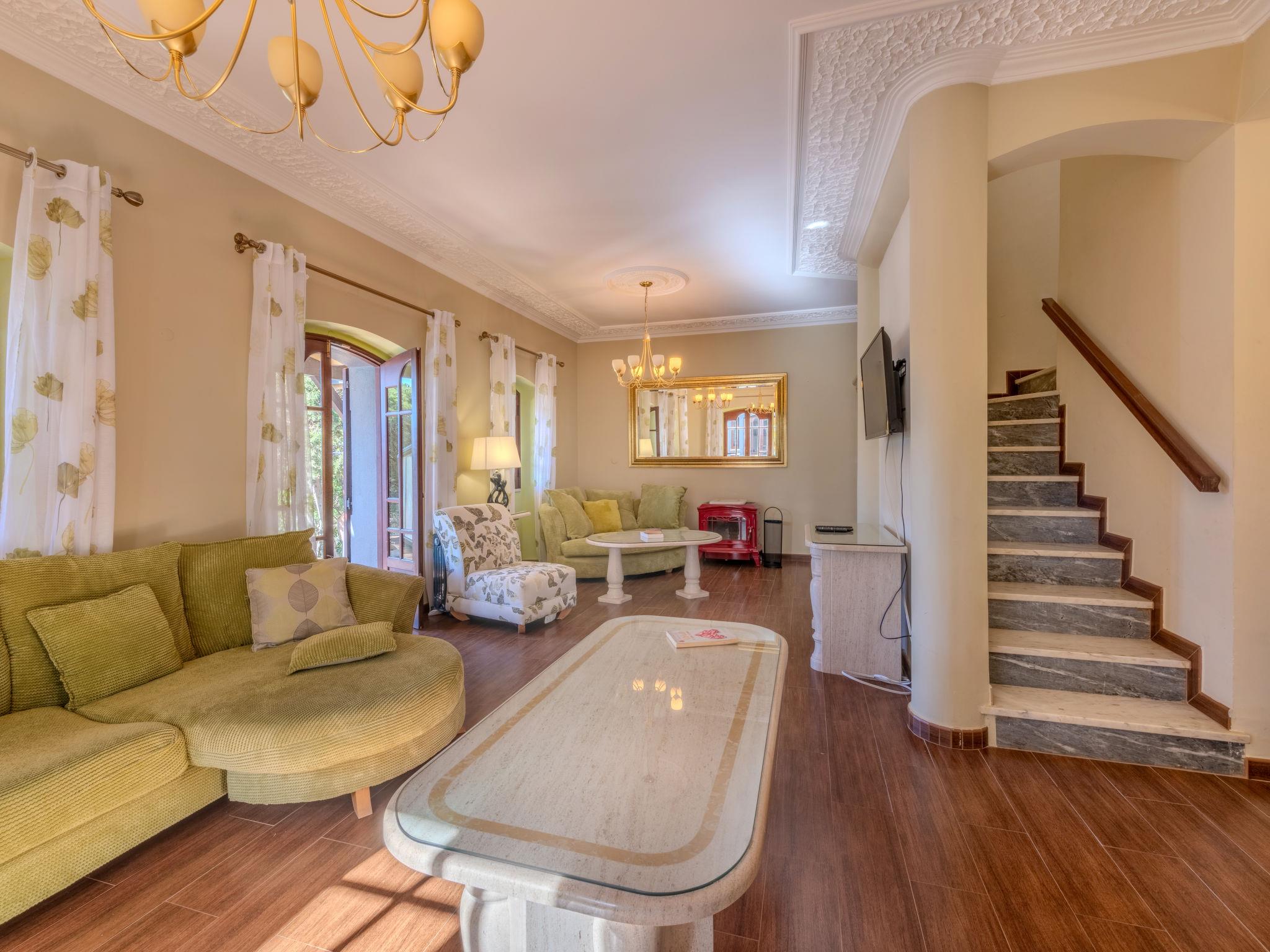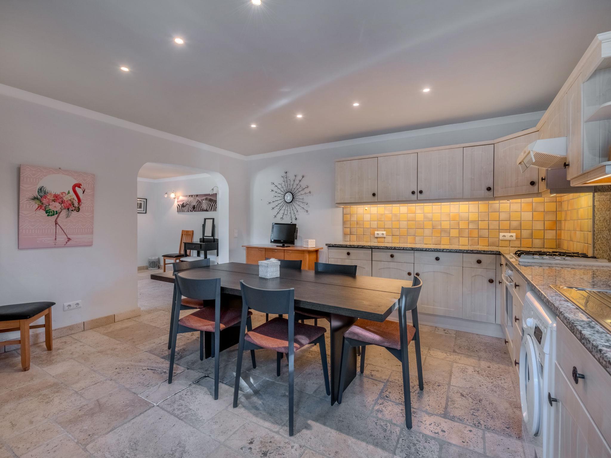 "Nara", 7-room villa 430 m2 on 3 levels. Spacious, very cosy furnishings: living room with dining table, cable TV, flat screen, air conditioning and forced-air heating. Exit to the terrace. 1 room with 1 french bed (180 cm, length 200 cm), bath/shower/WC, air conditioning and forced-air heating. 1 room with 1 french bed (160 cm, length 200 cm), bath/shower/WC, air conditioning and forced-air heating. Kitchen (oven, dishwasher, 7 gas rings, toaster, kettle, microwave, freezer, grill, electric coffee machine, Capsules for coffee machine (Dolce Gusto not incl)). Sep. WC. On the lower ground floor: Studio with 2 beds (90 cm, length 200 cm), shower/WC and air conditioning. Exit to the patio. Open kitchen (oven, 4 ceramic glass hob hotplates, toaster, kettle, microwave, freezer, electric coffee machine) with air conditioning and forced-air heating. Upper floor: 1 room with 1 french bed (160 cm, length 200 cm), shower/WC, air conditioning and forced-air heating. 1 room with 1 french bed (160 cm, length 200 cm), air conditioning and forced-air heating. Barbecue, deck chairs. View of the swimming pool and the garden. Facilities: washing machine, dryer, iron, children's high chair, baby cot for up to 2 year olds (extra), hair dryer. Internet (WiFi, free). Please note: suitable for families. Fire extinguisher. 89345/AL