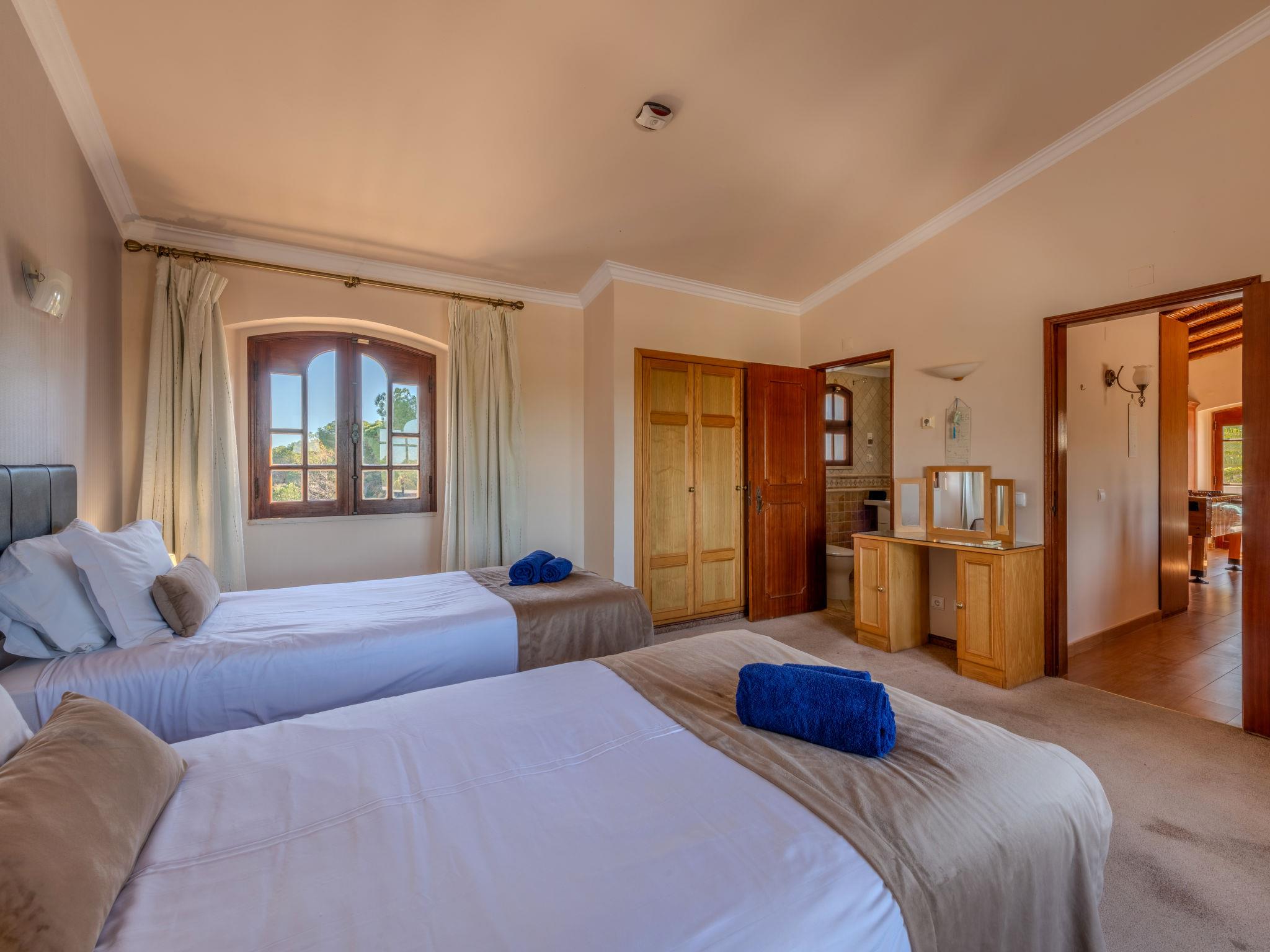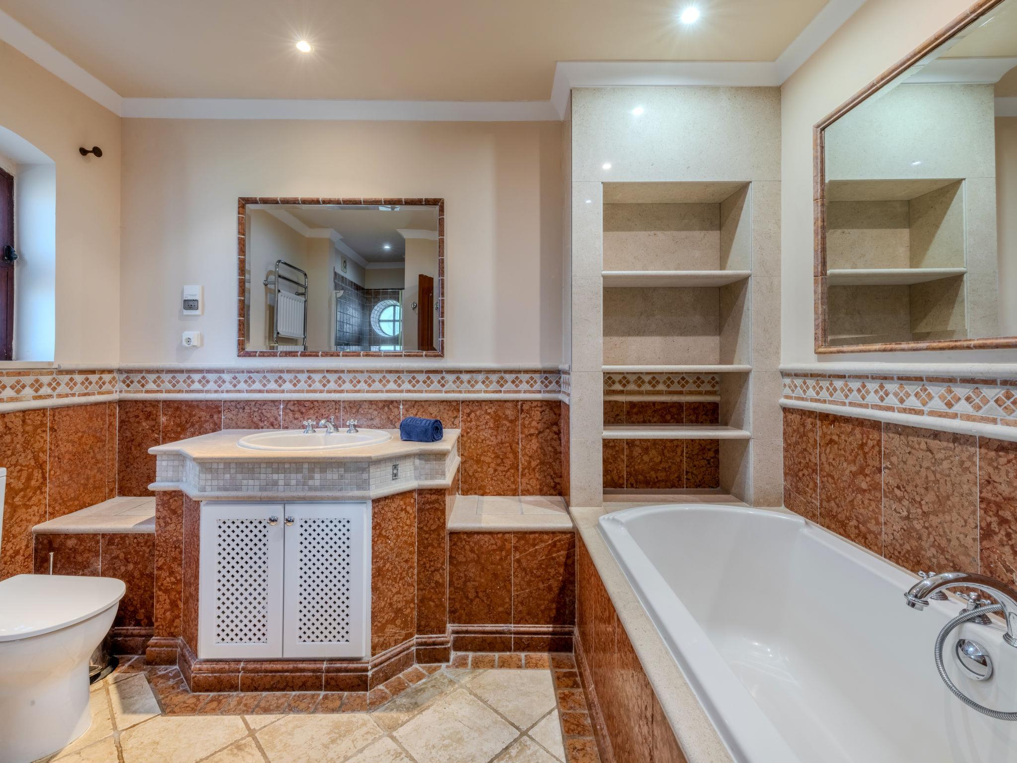 Vilamoura: Very cosy villa "Nara", 3 storeys, detached, surrounded by trees and fields. Outside the resort, 3.4 km from the centre of Vilamoura, in a quiet position residential area (villas), 5 km from the sea. Private: large, beautiful, well-kept garden, swimming pool angular (5 x 10 m, depth 90 - 180 cm, seasonal availability: 01.Jan. - 31.Dec.). In the house: WiFi, billiard table, table football, air conditioning, washing machine, tumble dryer. Grocery 2.2 km, supermarket 4.3 km, shopping centre 2.3 km, restaurant 4.7 km, bar 4.1 km, bakery 4.3 km, café 2.2 km, bicycle rental 9.1 km, bus stop 18.5 km, sandy beach "Praia de Quarteira" 5 km. Marina 5.7 km, golf course (18 hole) 1.2 km, surf school 12.5 km, tennis 4.1 km, riding stable 7.8 km. Nearby attractions: Ruínas Romanas do Cerro da Vila 4.9 km, Aquashow 3.7 km, Casino de Vilamoura 5.8 km, Karting de Almancil 7 km, Family Golf Park 4.5 km, Cerro da Vila Estação Arqueológica 4.9 km. Please note: car recommended. Suitable for families. The owner does not accept any youth groups. Loading and unloading of baggage is possible at the holiday house.