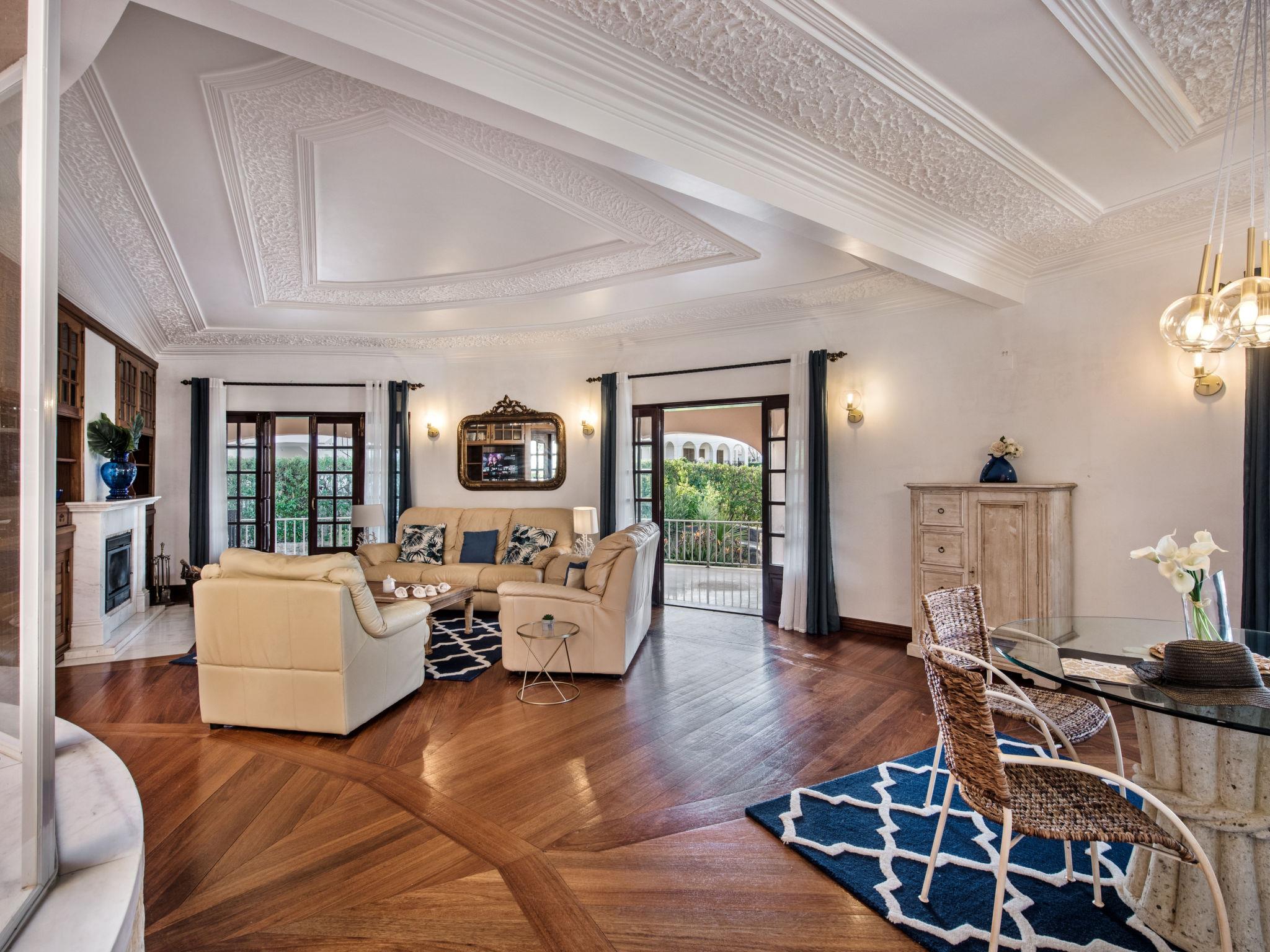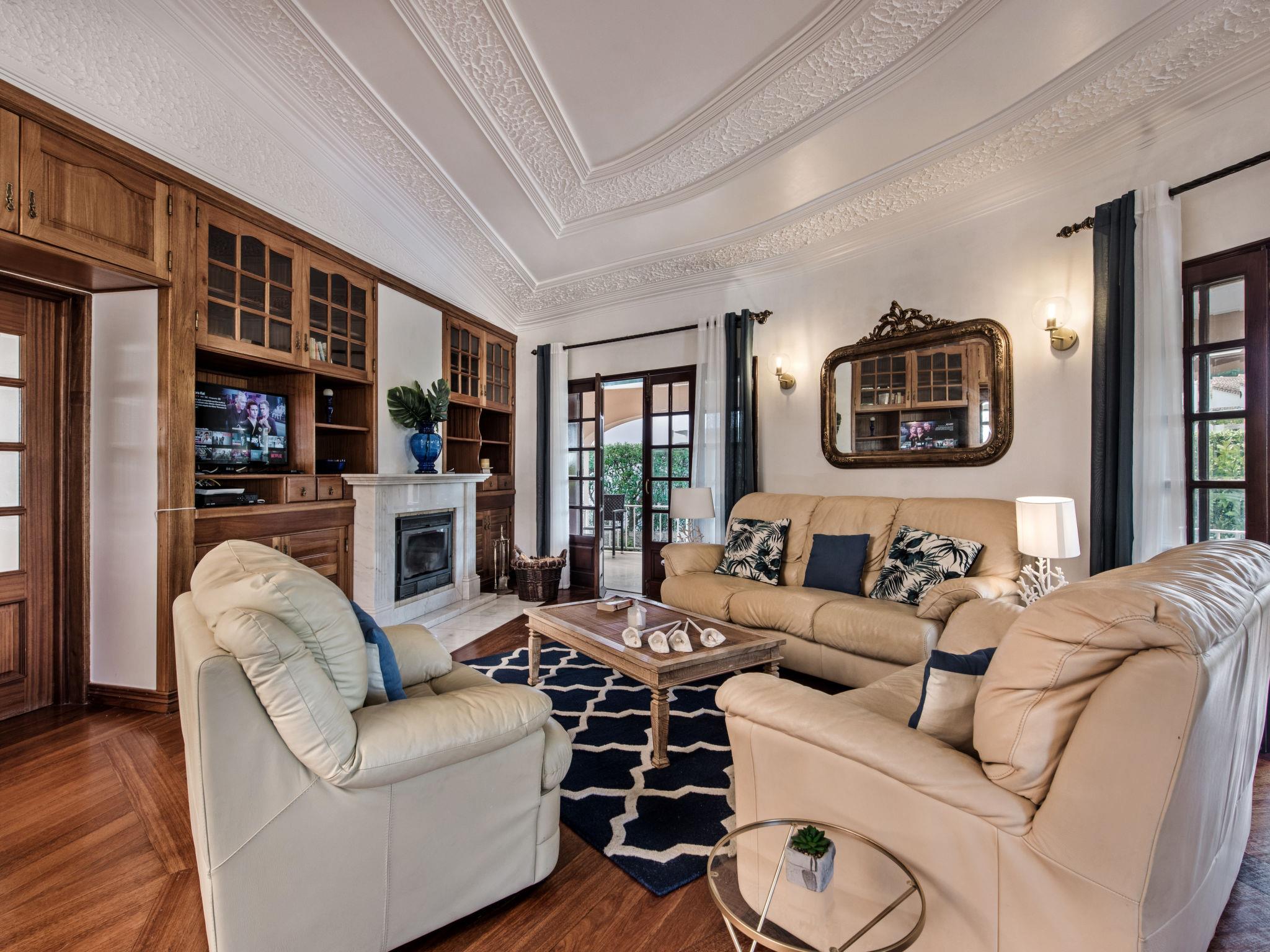 "Vera VIP Properties", 5-room villa 341 m2 on 2 levels. Partly renovated in 2021, very practical and cosy furnishings: living room with dining table, cable TV, flat screen, air conditioning and forced-air heating. Exit to the terrace. 1 room with 1 french bed (160 cm, length 200 cm), air conditioning and forced-air heating. Exit to the garden. 1 room with 1 french bed (160 cm, length 200 cm), air conditioning and forced-air heating. 1 room with 2 beds (90 cm, length 200 cm), air conditioning and forced-air heating. Open kitchen (oven, dishwasher, 4 ceramic glass hob hotplates, toaster, kettle, microwave, freezer, electric coffee machine, Capsules for coffee machine (Dolce Gust not Incl.)) with dining table. 2 showers/WC, sep. WC. Upper floor: 1 room with 1 french bed (160 cm, length 200 cm), air conditioning and forced-air heating. Porch. Terrace furniture, barbecue, deck chairs (5). View of the swimming pool, the garden and the resort. Facilities: washing machine, children's high chair, baby cot for up to 2 year olds (extra), hair dryer. Internet (WiFi, free). Suitable for families. 83585/AL