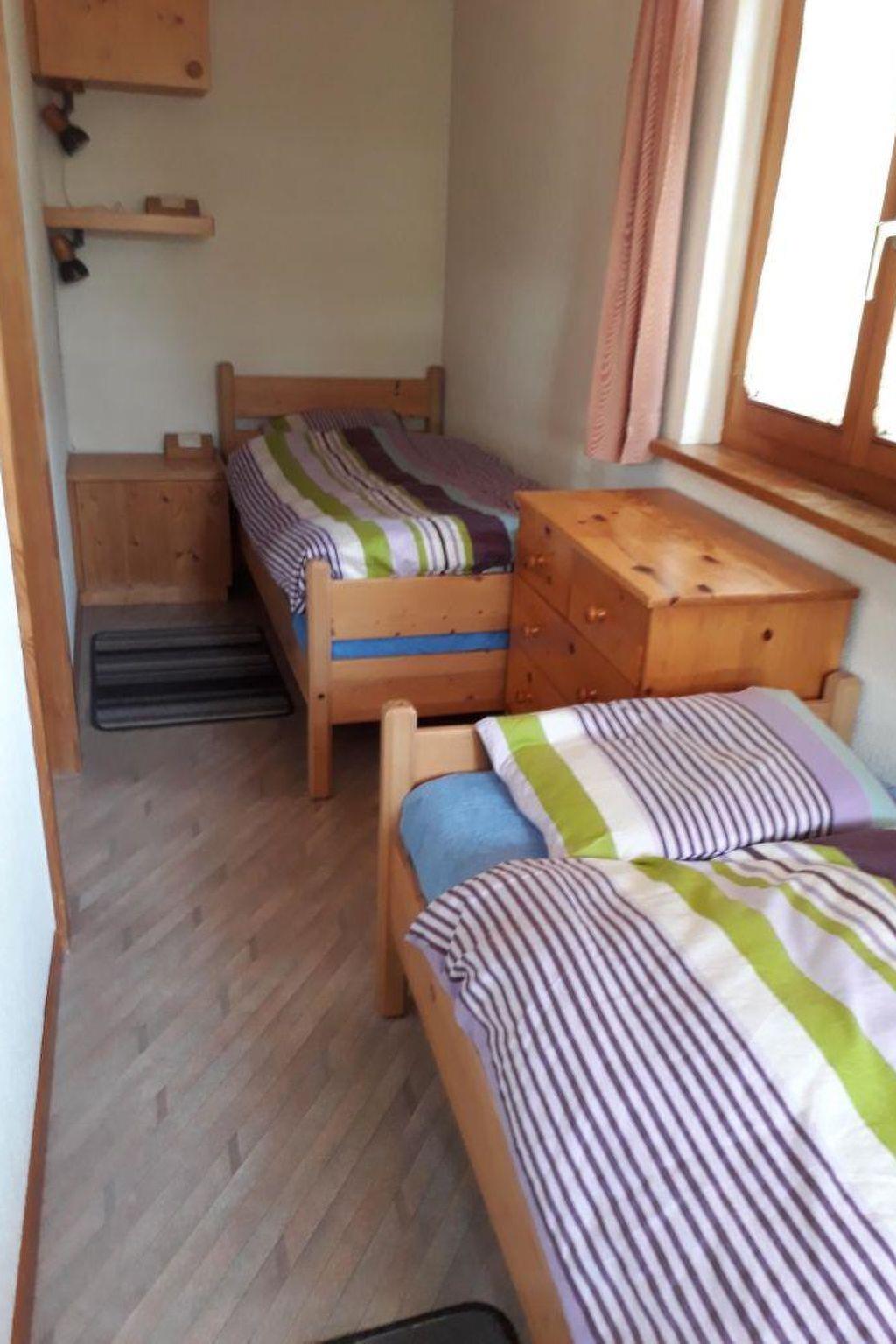 3 room apartment with 2 bedrooms (55m2). Each bedroom has 2 beds, in one room the beds can be pushed together, seperate childbed for smaller children Eat-in kitchen, table with corner bench, dishwasher, refrigerator, various kitchen materials (raclette, fondue). Living room with sofa, TV, books, toys for childern and a fold-away bed. Bathroom with shower, toilet, hairdryer. Washingmachine, tumbler and Seccomat in the basement. Large balcony with a mountain panorama view of Bunder, Engstligen and Chuenisbergli, garden furniture and electric grill. Parking space available. Ski and bike room. 5 minutes walking distance to the village and the cable car station "Dorf" 3 minutes walking distance to the puplic outdoor pool "Gruebi" (free entry).