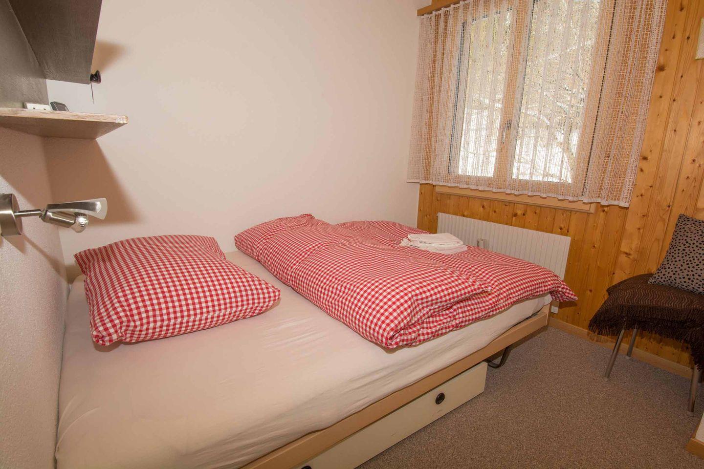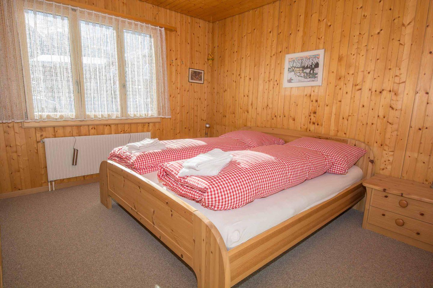 Die Ferienwohnung liegt im Ortsteil Boden, an ruhiger Lage, im 1. Stock eines Chalets mit zwei Wohnungen. Drei Schlafzimmer bieten Platz bis 5 Personen. Der grosse helle Wohnraum mit Sitzgruppe, Esstisch für 6 Personen, Cheminée, TV, Radio und WLAN, lädt ein zu gemütlichen Abenden mit der Familie. Vom Wohnzimmer gelangen Sie auf den grossen Balkon mit herrlicher Aussicht auf die Berge und den Wasserfall. Die Küche ist mit allem ausgerüstet was Sie brauchen: Kochstelle, Backofen, Geschirrspülmaschine, Kühlschrank, usw. Das Badezimmer ist ausgestattet mit Badewanne, WC und Waschbecken. Ein Skiraum und ein gedeckter Parkplatz gehören ebenfalls zur Wohnung. Eine Waschmaschine und ein Trockner stehen in der Liegenschaft zur Verfügung.150 Meter entfernt befindet sich ein Lebensmittelgeschäft mit Bäckerei. Bushaltestelle 100 Meter entfernt.