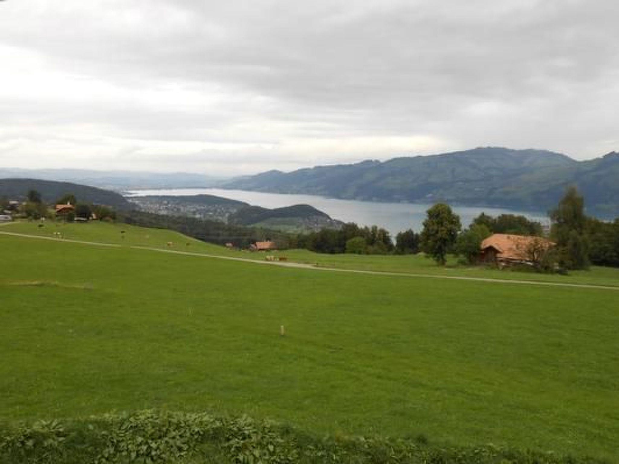 Beautiful new apartment on the ground floor of a two family house. Outdoor patio with stunning views of mountains, lake and the village Aeschi. The house is surrounded by green meadows. To get to the entrance you descend a staircase. The generous windows allow unobstructed views of Lake Thun at day and night.