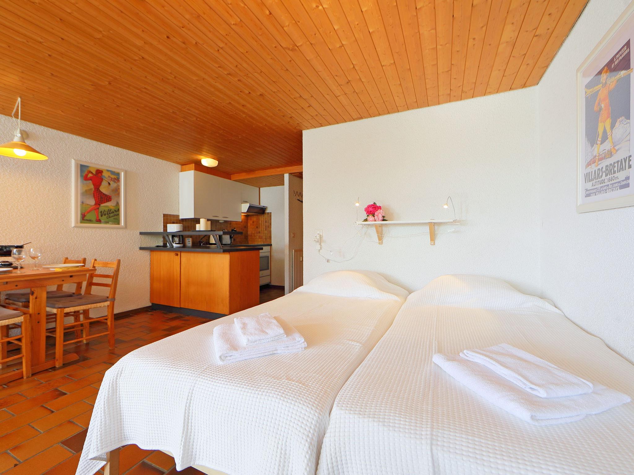 "Les Beluardes Bl. 151/2", 1-room apartment 30 m2, lower ground floor, south facing position. Simple and practical furnishings: living/dining room with 1 double sofabed and 1 double bed (160 cm, length 200 cm), open-hearth fireplace and TV (flat screen), DVD. Exit to the terrace. Kitchenette (oven, 4 ceramic glass hob hotplates, toaster, kettle, electric coffee machine, raclette grill, fondue Set (cheese)). Bath/WC. Small terrace, south facing position. Terrace furniture. View of the mountains and the countryside. Facilities: hair dryer. Internet (WiFi, free). Parking space n 151/2.