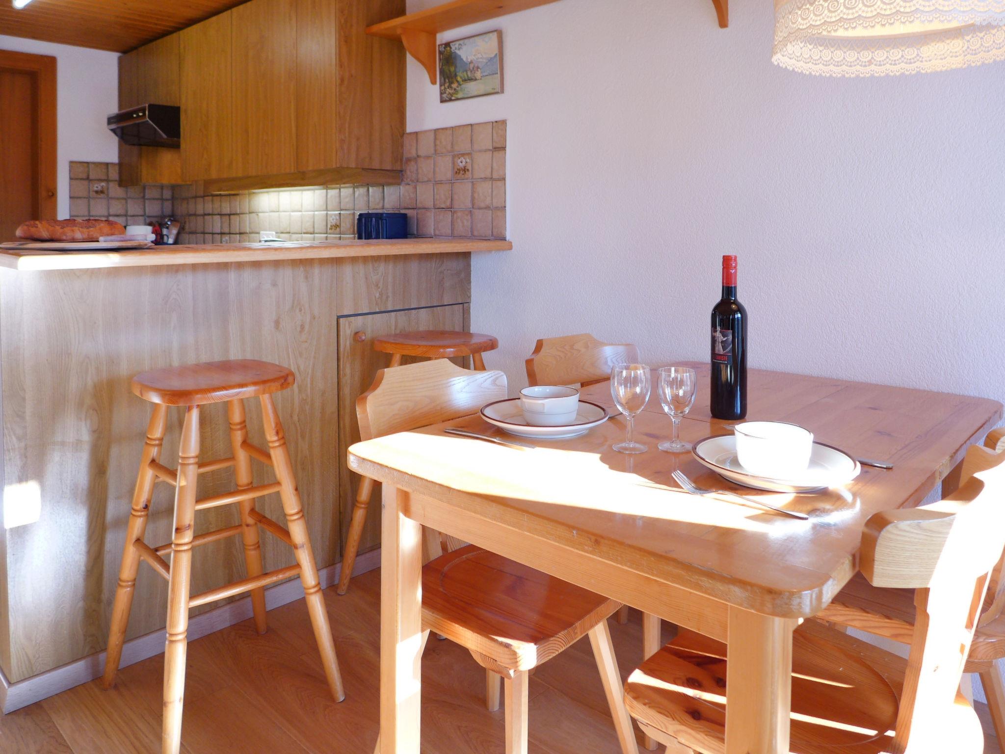 "Les Arsets 01/203", 2-room apartment on the ground floor, south facing position. Simple and beautiful furnishings: small living/dining room with open-hearth fireplace, dining table and TV (flat screen). Exit to the terrace. 1 room with 2 beds. Open kitchen (3 hot plates, oven, toaster, kettle, electric coffee machine, raclette grill, fondue Set (cheese)). Bath/WC. Terrace, south facing position. Terrace furniture. Very beautiful panoramic view of the mountains. Facilities: Internet (WiFi, free). Parking space n 66 (roofed).