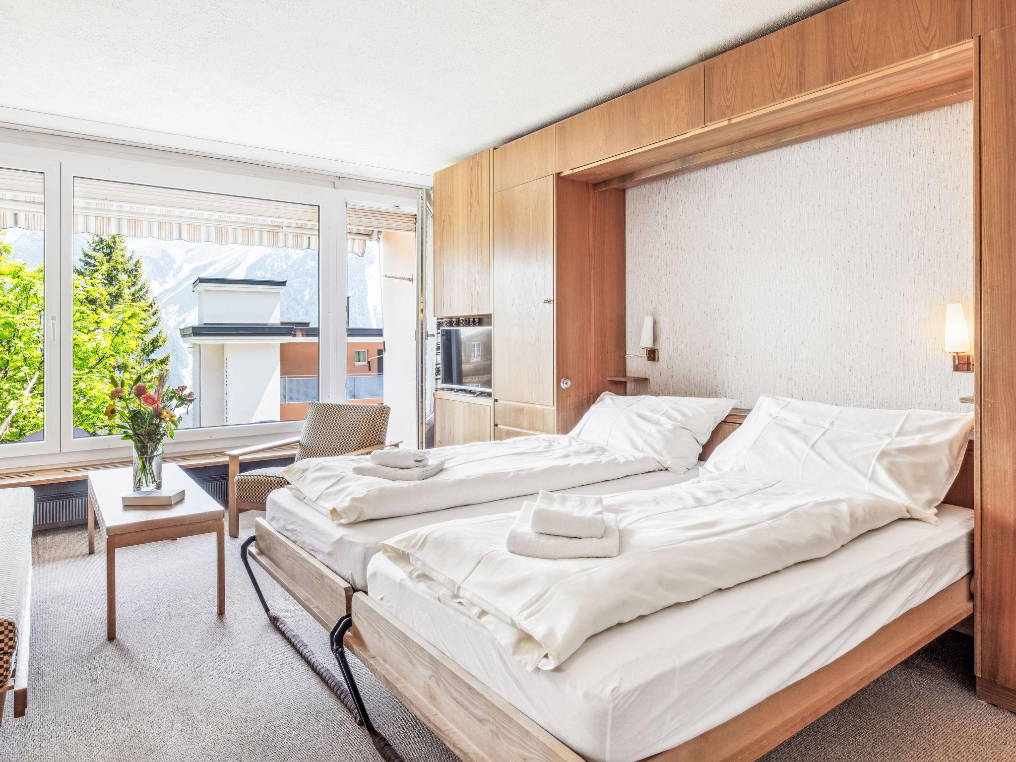 Apartment block "Promenade (Utoring)". In the resort, 500 m from the centre, in a quiet position. In the house: lounge, table tennis, kiosk, lift, storage room for skis, central heating system, washing machine (for shared use). Motor access to the house (mountain road). In Winter: please take snow chains, 4x4 car recommended in winter. Parking (limited number of spaces, extra) at the house, communal covered parking (extra), public car park at 800 m. Shop 500 m, bus stop "Arosa, Rathaus" 400 m, railway station "Arosa" 1 km. Skisport facilities, slopes, sled run 500 m. Home delivery service possible. Beautiful hiking trails right in front of the house. Attention: limited number of parking spaces! Parking space or garage space must be reserved in advance with the key holder: parking space CHF 5.00/day, covered parking space CHF 8.00/day, garage space CHF 16.00/day, payable on site. Lounge with internet connection (WiFi). Ski passes are available at reception.
