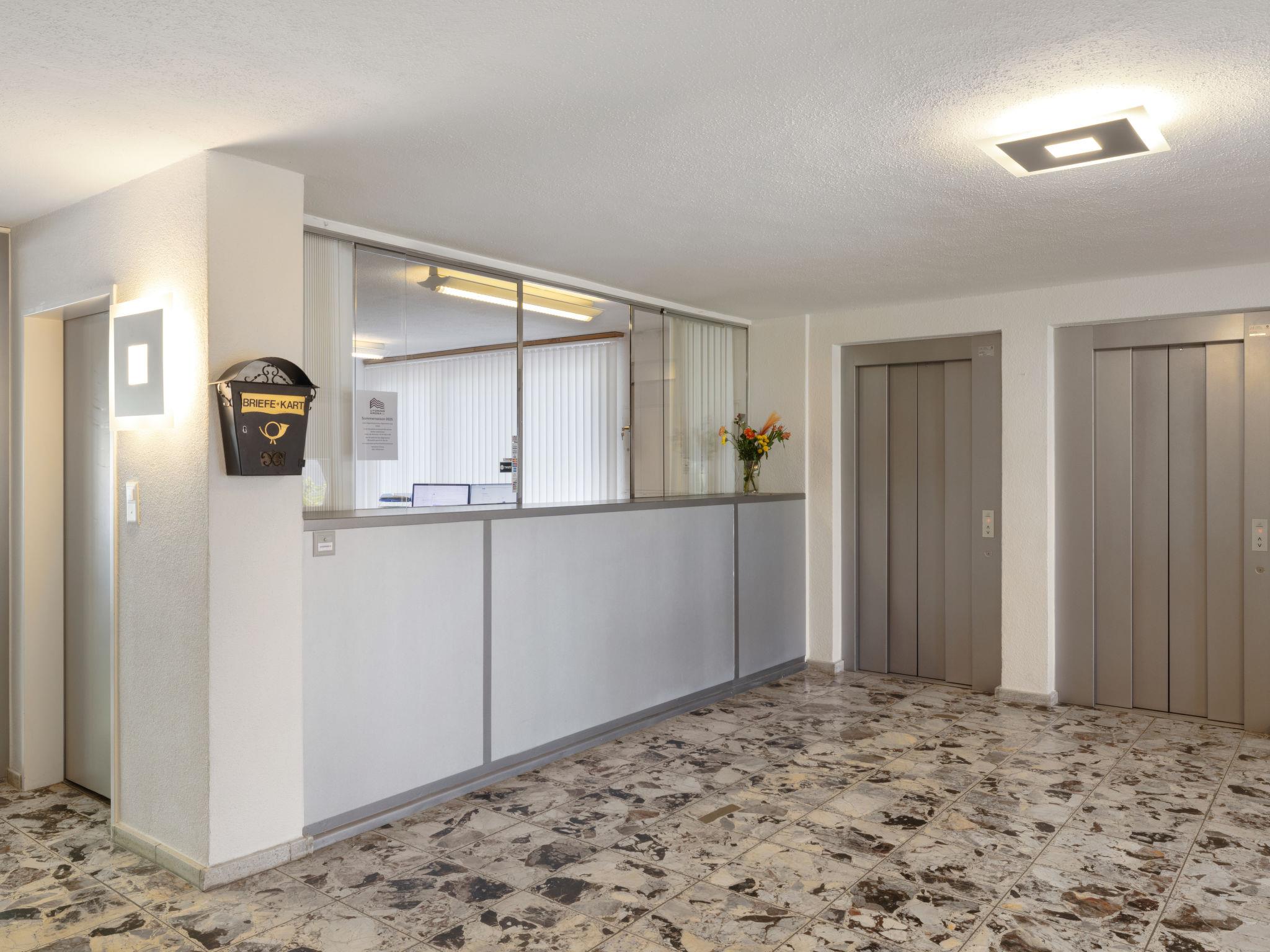 Apartment block "Promenade (Utoring)". In the resort, 500 m from the centre, in a quiet position. In the house: lounge, table tennis, kiosk, lift, storage room for skis, central heating system, washing machine (for shared use). Motor access to the house (mountain road). In Winter: please take snow chains, 4x4 car recommended in winter. Parking (limited number of spaces, extra) at the house, communal covered parking (extra), public car park at 800 m. Shop 500 m, bus stop "Arosa, Rathaus" 400 m, railway station "Arosa" 1 km. Skisport facilities, slopes, sled run 500 m. Home delivery service possible. Beautiful hiking trails right in front of the house. Attention: limited number of parking spaces! Parking space or garage space must be reserved in advance with the key holder: parking space CHF 5.00/day, covered parking space CHF 8.00/day, garage space CHF 16.00/day, payable on site. Lounge with internet connection (WiFi). Ski passes are available at reception.