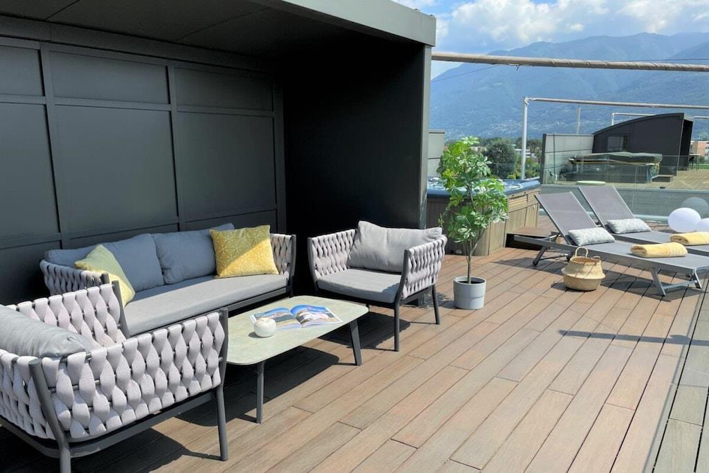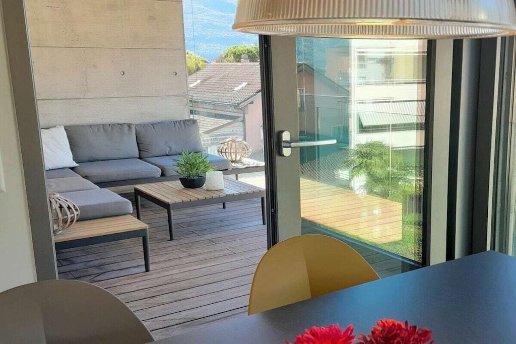 • 3,5-værelses lejlighed, 3. sal, 130 m², elevator • Tagterrasse, 4. sal, 130 m², trappe • Plads til 4 personer • Solrig, central beliggenhed • Panoramaudsigt over Ascona og de omkringliggende bjerge • Rummelig tagterrasse med opholdsstue og spisebord • Spabad, åben året rundt • Elektrisk solskærm, 4 liggestole • Luksuriøs indretning • Stue-spisestue med sofagruppe, LCD-tv med lydsystem • Spisebord med 6 stole • Udgang til balkon med loungemøbler, lodret solafskærmning/solbeskyttelse • Højhastigheds-Wi-Fi • Designerkøkken med kogeø, moderne apparater • Induktionskogeplade, ovn, tallerkenvarmer • Opvaskemaskine, stort køleskab • Brødrister/kedel • Dolce Gusto kaffemaskine (medbring venligst dine egne kapsler) • 1 soveværelse med queensize-seng og eget badeværelse med bruser/toilet • 1 soveværelse med dobbeltseng og tøjstativ • 1 ekstra badeværelse med bruser/toilet og hårtørrer • Store indbyggede skabe • Elektriske skodder i alle vinduer • Hele lejligheden har aircondition • Vaskemaskine/tørretumbler • 1 reserveret parkeringsplads i parkeringskælderen • Kæledyr er ikke tilladt • Ikke-ryger lejlighed, rygning venligst på terrassen • Depositum CHF 800,00