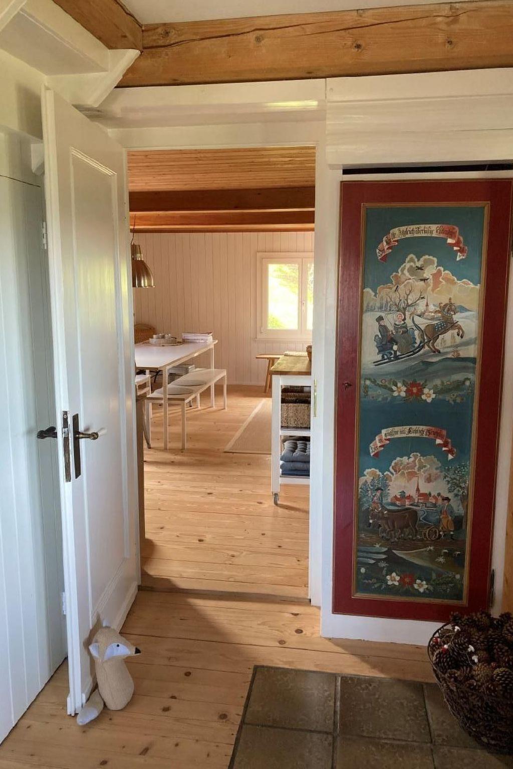 The house is Nordic-inspired, modern and furnished to a high standard. It has a wonderful large wood-burning stove and lots of windows. The floor is made of light-coloured wood and the walls are painted white. There is a natural light-coloured wool carpet in the bedroom.