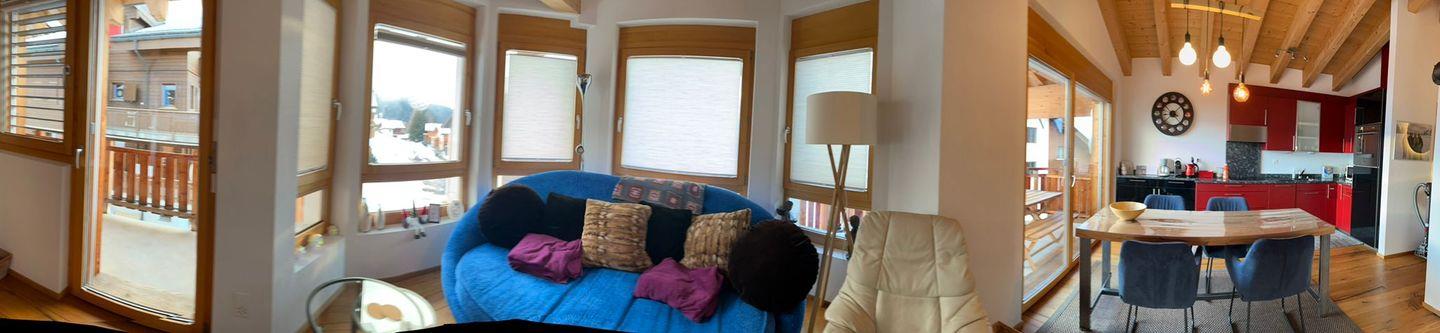 Traumhafte 3.5 Zimmer-Dachwohnung auf der Bettmeralp – Ski-in/Ski-Out - im Ferienhaus “Mon Rêve”. Das Haus befindet sich etwas unterhalb der Bergstation der Luftseilbahn.