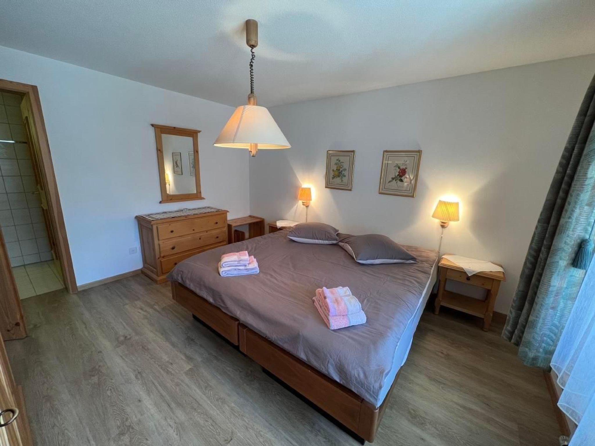 Inside, a cosily furnished bedroom with a double bed invites you to dream, while you can conjure up culinary delights in the well-equipped kitchen with extras such as a fondue and raclette set. A bathroom with bathtub and a separate WC round off the comfortable interior design. Communal facilities such as a washing machine and a ski room are also part of the offer for a carefree stay.