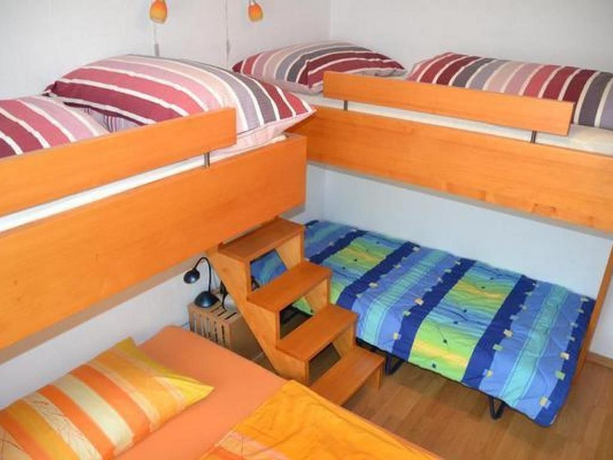 Modern living comfort awaits you inside the flat. With a ceramic hob, oven, fridge and dishwasher, the kitchen has everything a hobby chef could wish for. The living room is equipped with a cosy fireplace, a set of upholstered furniture as well as a TV and radio with satellite reception. A dining area with corner bench offers plenty of space for cosy meals and seats up to 12 people. Two bedrooms, one with a double bed and built-in wardrobe, the other with a 1.60 m wide bed - which can be supplemented with bunk beds or a cot on request - promise restful nights. A completely remodelled bathroom with shower, two washbasins and WC completes the offer.