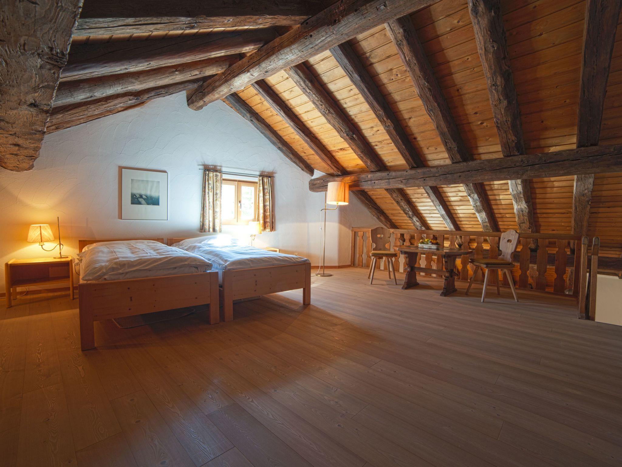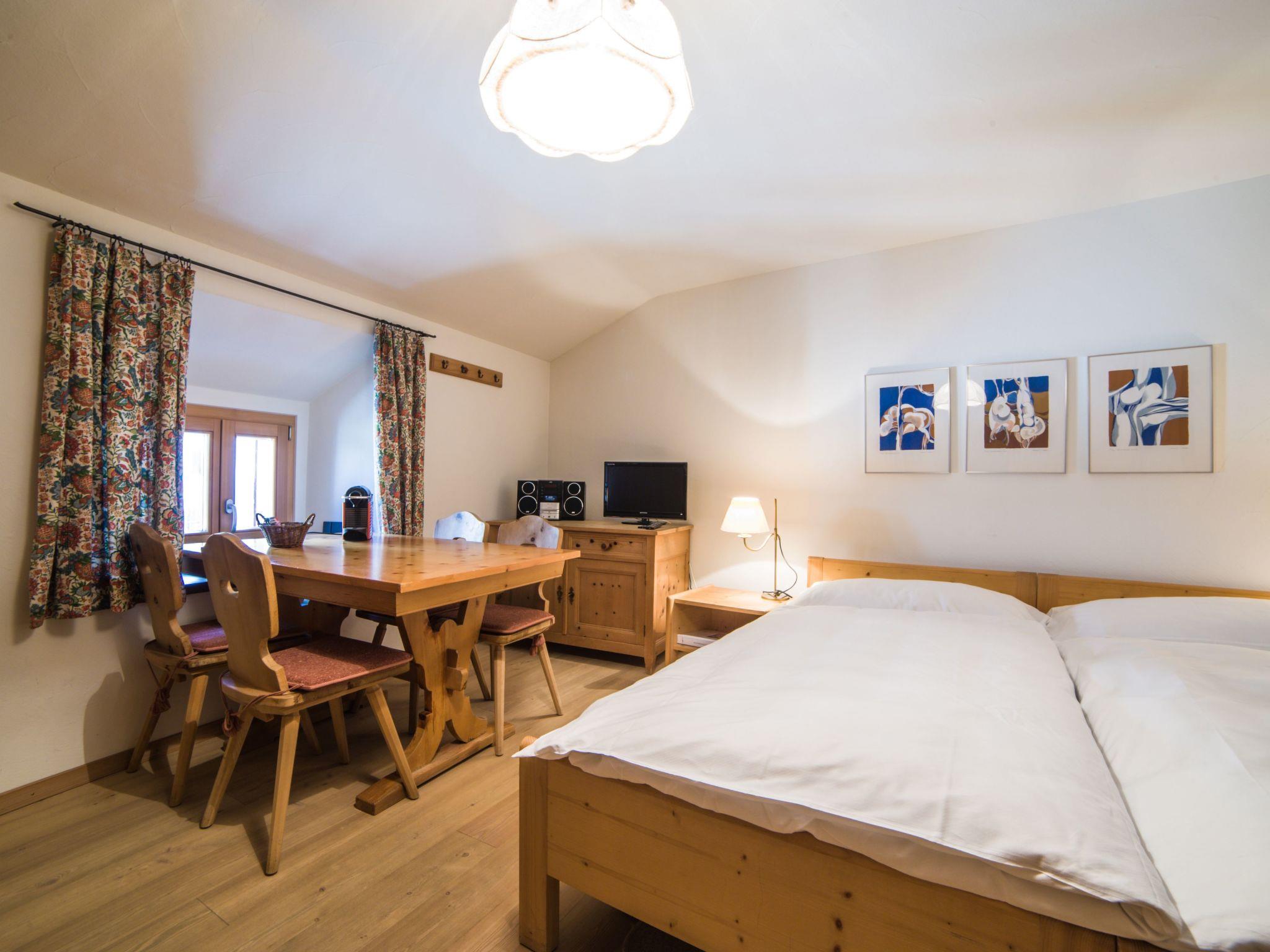 Outside, guests have access to a ski and bike room, while a washing machine and tumble dryer offer practical shared facilities for everyday needs. The warmth of parquet floors, historical photographs and Swiss stone pine furniture combined with the modern convenience of underfloor heating, WLAN and flat-screen TV complete the traditional Engadine ambience.