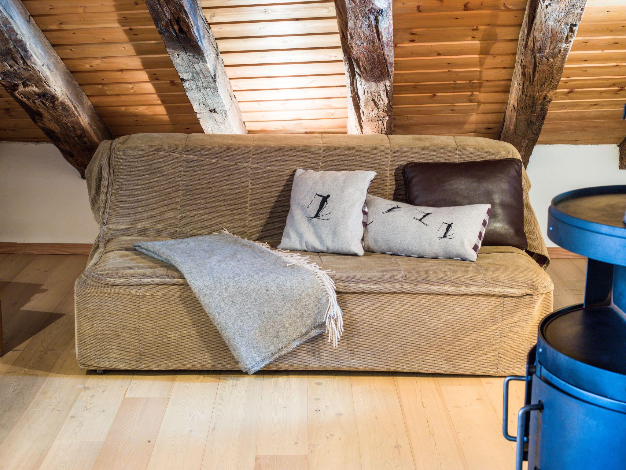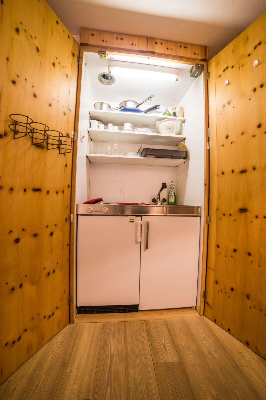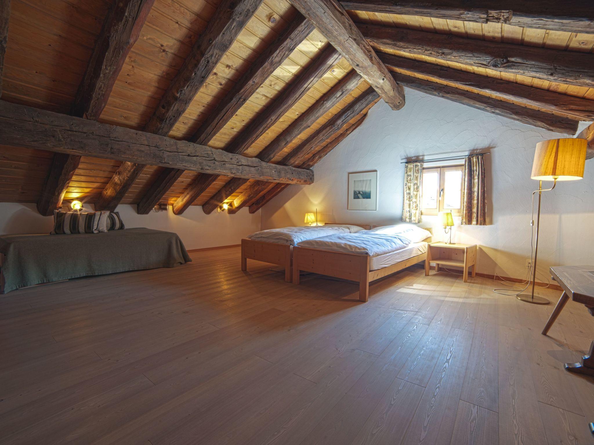 The Morteratsch flat enchants with its open-plan living and dining area, a fully equipped kitchen including a large fridge, oven, dishwasher and Nespresso machine, as well as a cosy Swedish stove. A staircase leads to the spacious gallery, which creates a particularly warm atmosphere with its 4 beds and wooden panelling. Two bathrooms - one with bath/shower, the other with shower/WC - emphasise the living comfort. The stylish Studio Grisch, adjacent to the roof maisonette, enriches the offer with its separate bedroom with two beds, a cupboard kitchen, Nespresso machine and its own bathroom with bath/shower and offers additional flexibility and privacy.