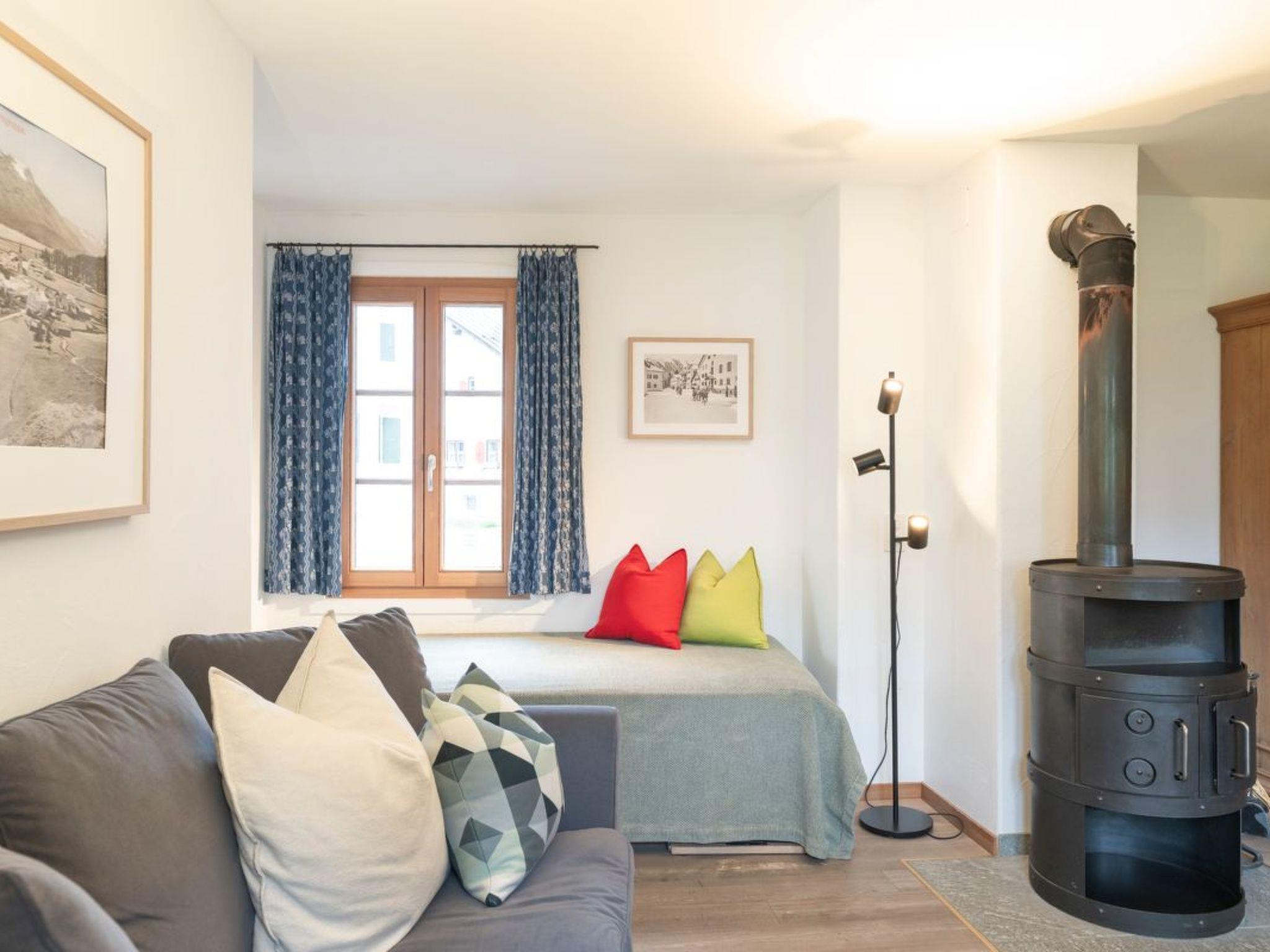 The 2 ½-room Palü holiday flat is characterised by its generous living space of 57 m² and is ideal for up to 4 people (normal occupancy 2 people). Located on the ground floor, this flat perfectly combines modern comfort with traditional Engadine architecture. This is underlined by partially antique furniture and an open-plan kitchen in the cosy living/dining area, complete with a Swedish stove and two additional single beds. The separate bedroom offers access to a small balcony and the bathroom is practically furnished with a bathtub with shower attachment.