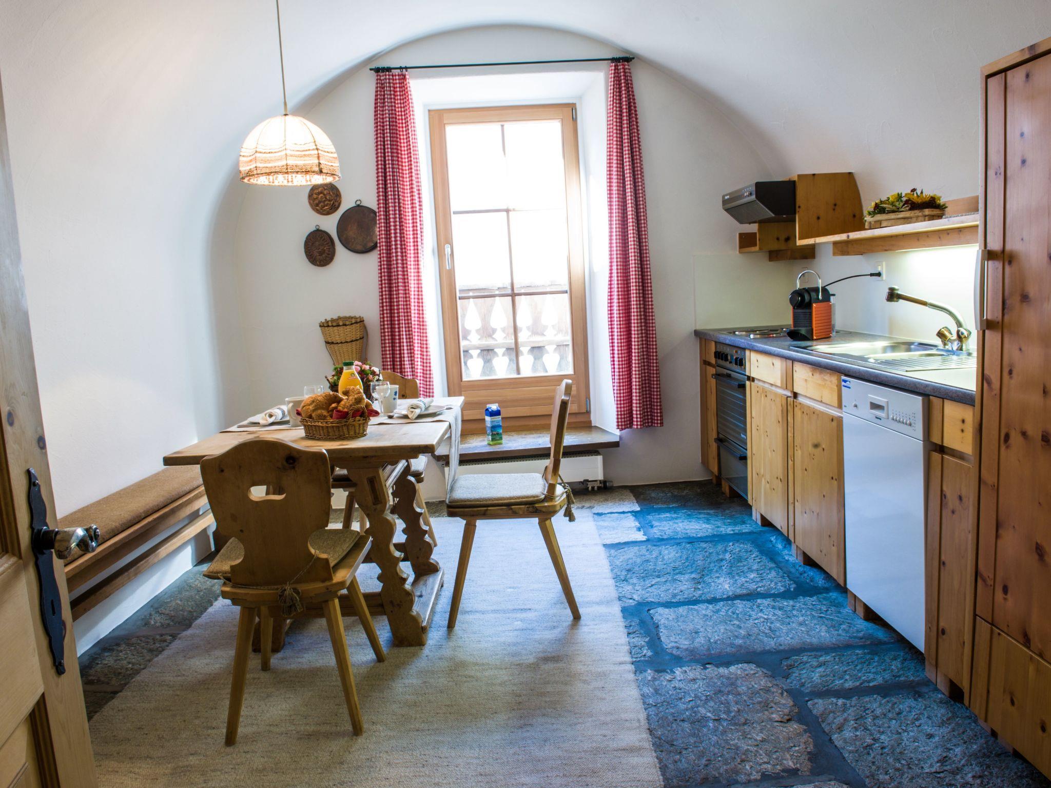 The outside area of the flat boasts a very small but lovely balcony, which offers a unique view of the charming village centre with its church and the breathtaking mountain backdrop of the Engadine. The exclusive amenities also include parking spaces in a subterranean garage as well as additional parking spaces outside and close to the house.