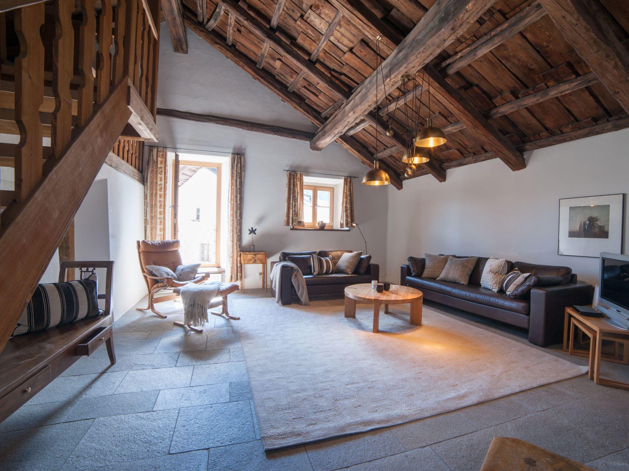 Discover the historical jewel of the Upper Engadine - the Chesa Michel dating back to 1786. In this listed Engadine house, located in the picturesque village centre of Bever, we offer you six high-quality holiday flats and two cosy studios for an incomparable stay. In particular, our 3 ½-room rooftop maisonette Muragl, the largest and most opulent flat in the Chesa Michel, is waiting to provide up to 6 guests with an exclusive holiday experience.