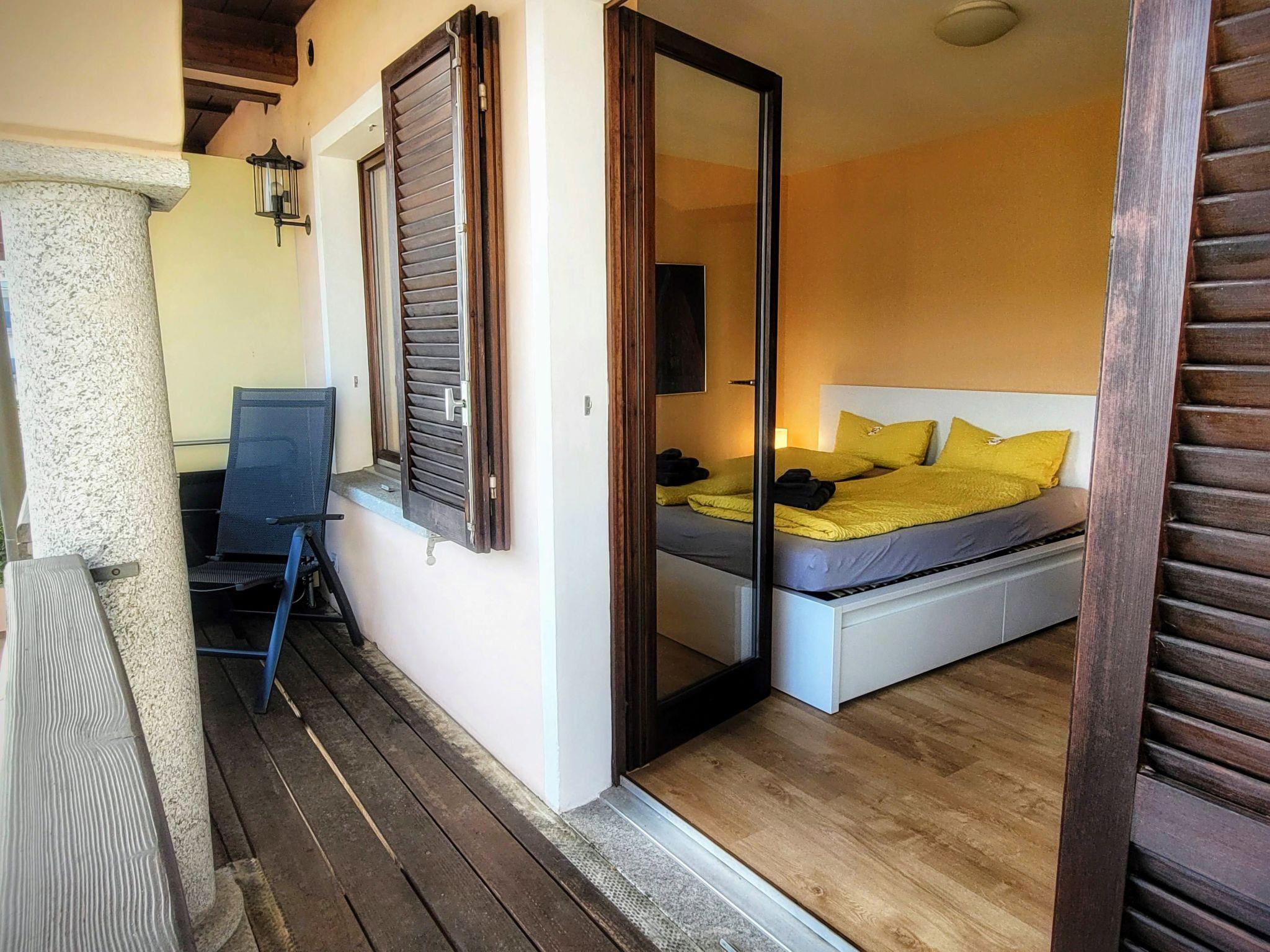 Downstairs, in addition to a modern bathroom with shower, there are two bedrooms: one with a double bed and a wonderful view of the lake from the adjoining veranda, the other with a comfortable 120x200 cm bed.