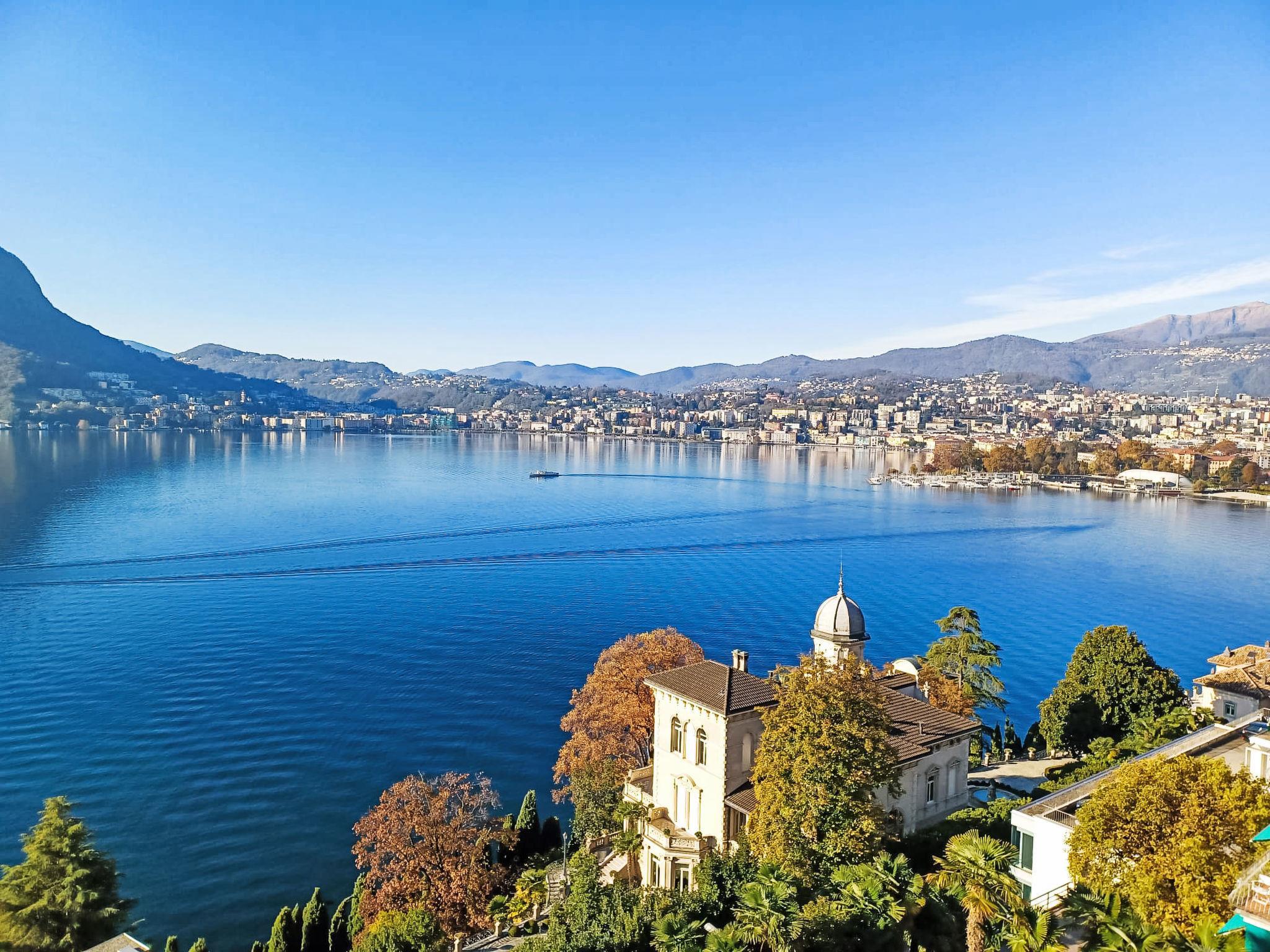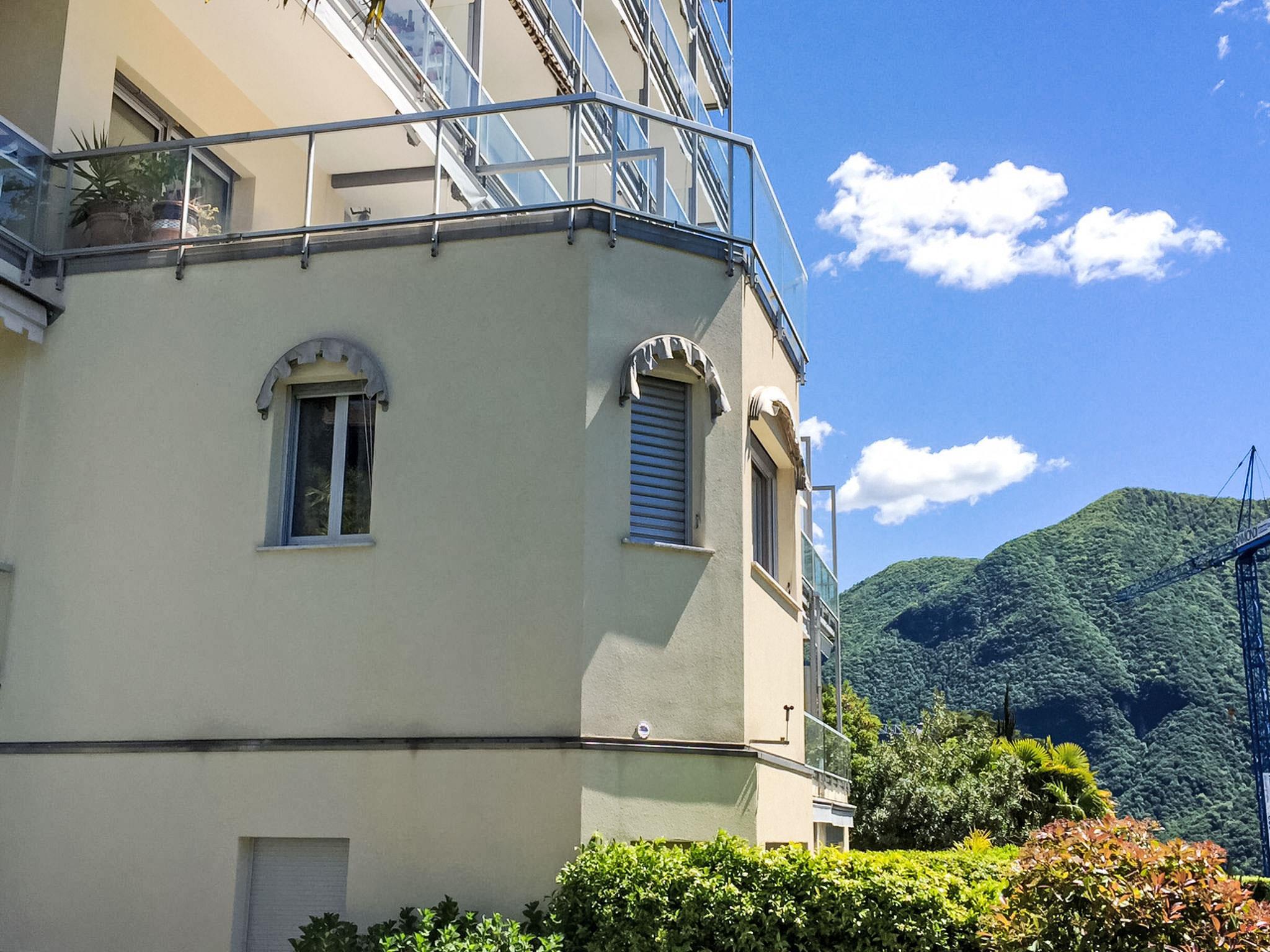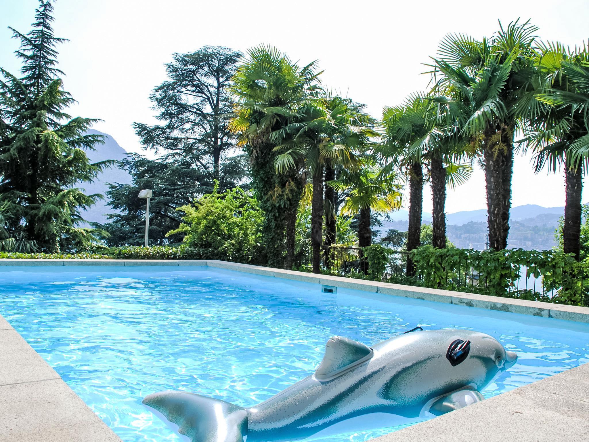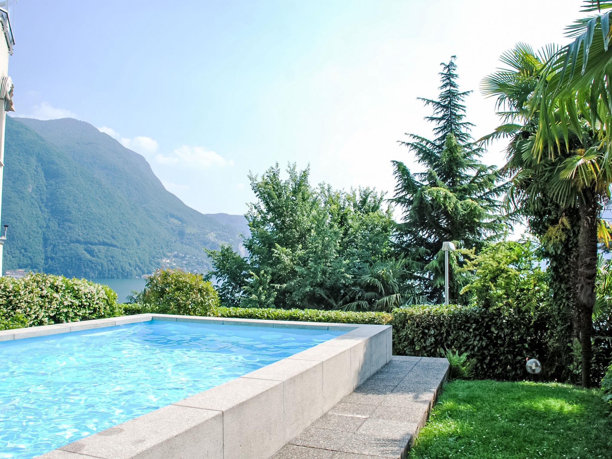Castagnola 3 km from Lugano: Large, comfortable residence "Eldorado". On the outskirts, in a quiet, sunny, elevated position, excellent location: right in the centre but still quiet, 1 km from the lake, south facing position. For shared use: small garden plants, meadow, swimming pool angular fenced (3 x 4 m, seasonal availability: 01.Jun. - 15.Sep.). Outdoor shower, patio, garden furniture. In the house: lift, storage room for bicycles, central heating system, washing machine, tumble dryer (for shared use, extra). Motor access to the house. Communal covered parking at the house. Parking space or garage only for small to medium-sized cars. Dimension: height 150 cm. Shop 1 km, grocery 1 km, supermarket 1 km, restaurant 300 m, bar, café, 20 minute walk to the centre, bus stop "Linie 2" 1 m, railway station "Lugano SBB-CFF" 3.6 km. Tennis 1 km, walking paths from the house 1 m. Nearby attractions: Gandria-Porlezza-Como, Swissminiatur, Melide 9.2 km, Outlet Fowtown, Mendrisio 22 km, Mercato Como, Ponte Tresa, Luino IT. Well-known lakes can easily be reached: Lago di Lugano, Lago di Como, Lago Maggiore. Hiking paths: Monte Bré, Monte Tamaro, San Salvatore, Monte San Giorgio, Monte Lema. Please note: baby equipment on request (extra).