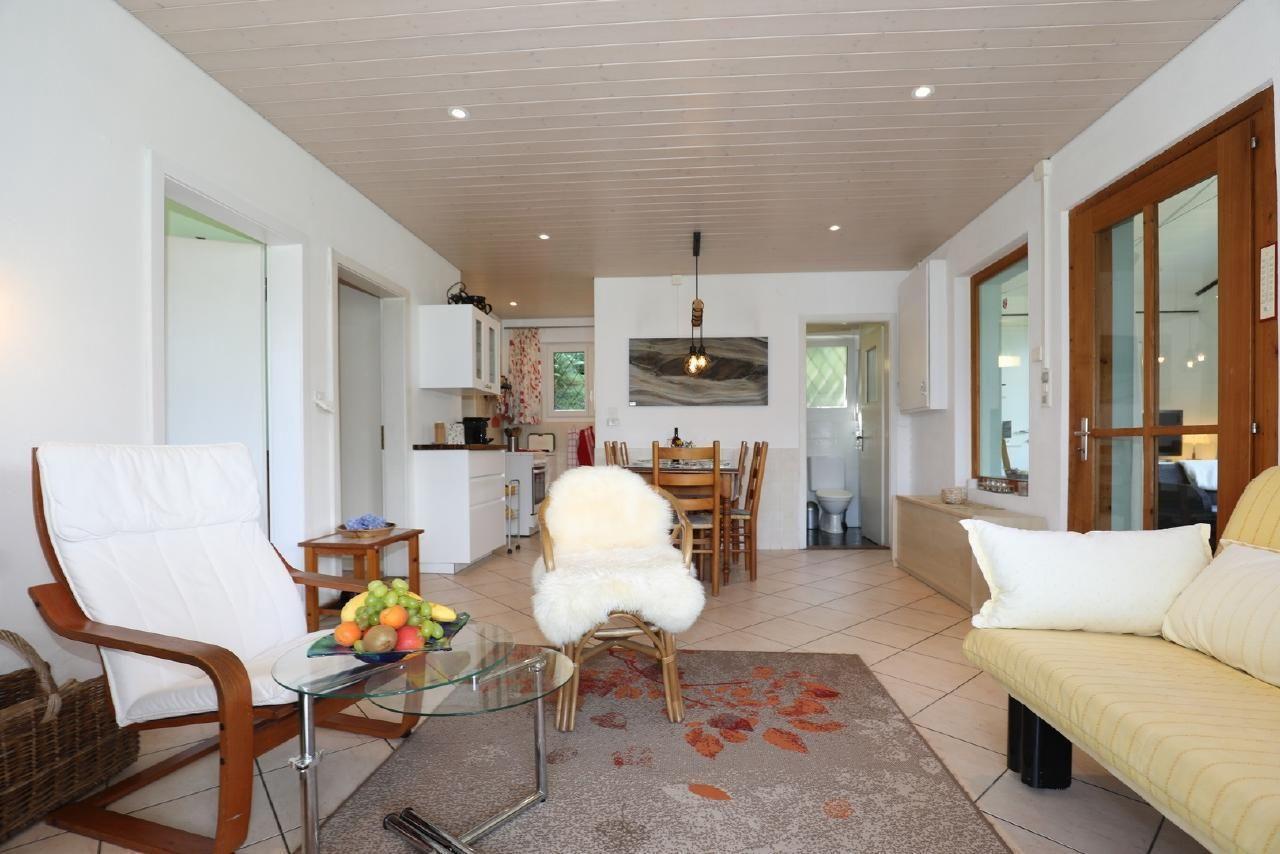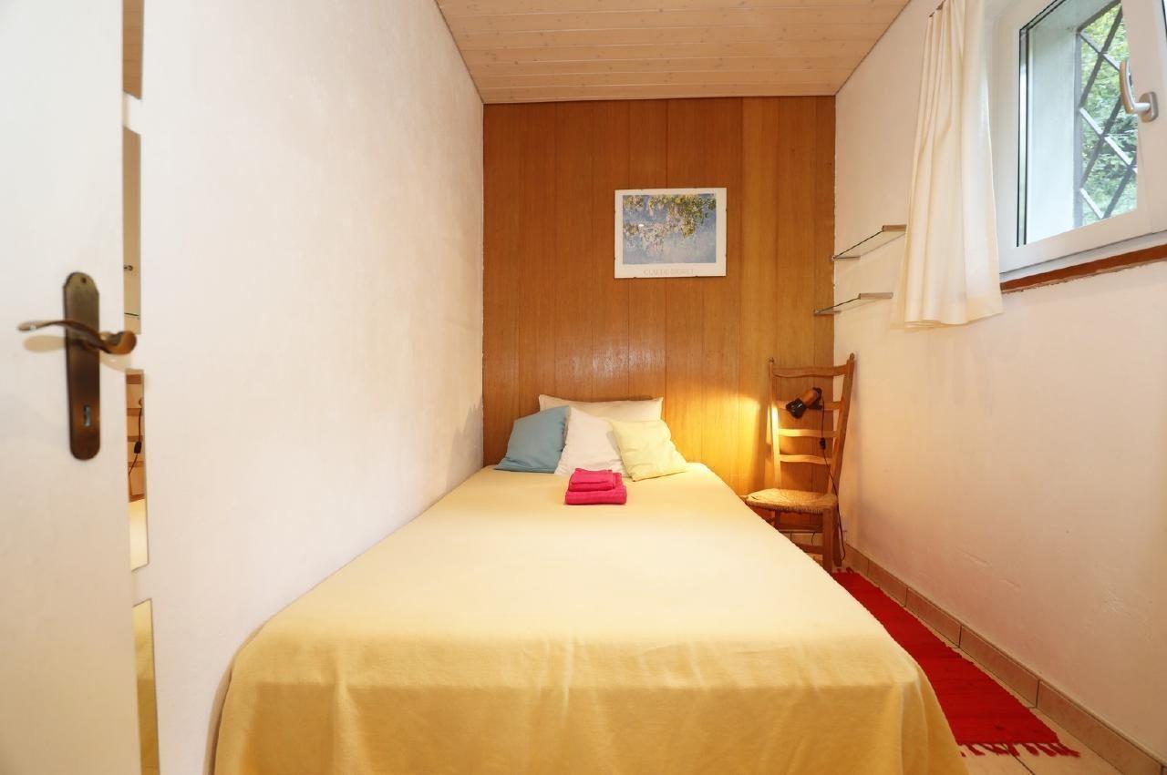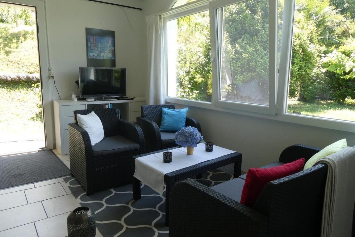 This detached single-family holiday home in a great location offers wonderful views of the lake, mountains, the Brissago Islands and the opposite shore of Lake Maggiore. It is located close to the border with Italy, approx. 70 metres above Lake Maggiore and is the perfect retreat in a beautiful, well-tended garden. A staircase leads from the car park to the extensive property, which is situated on the edge of the forest, surrounded by meadows, vines and palm trees, in an idyllic, peaceful location. The property extends over three terraces and is also safe for children. A 30m2 terrace, sheltered from the sun and rain, offers plenty of space and marvellous views. Although the house has a large number of beds (bedroom: 2 beds, children's room: 1 bunk bed, 3rd room: comfortable wide bed (120x200), living room: pull-out sofa bed (140x200), its friendly and functional furnishings provide a cosy atmosphere even for small families.