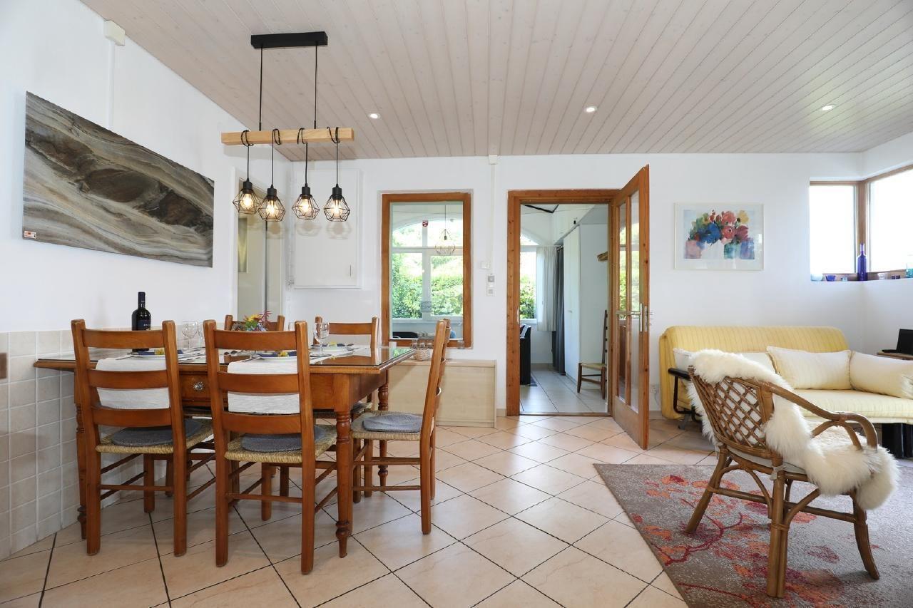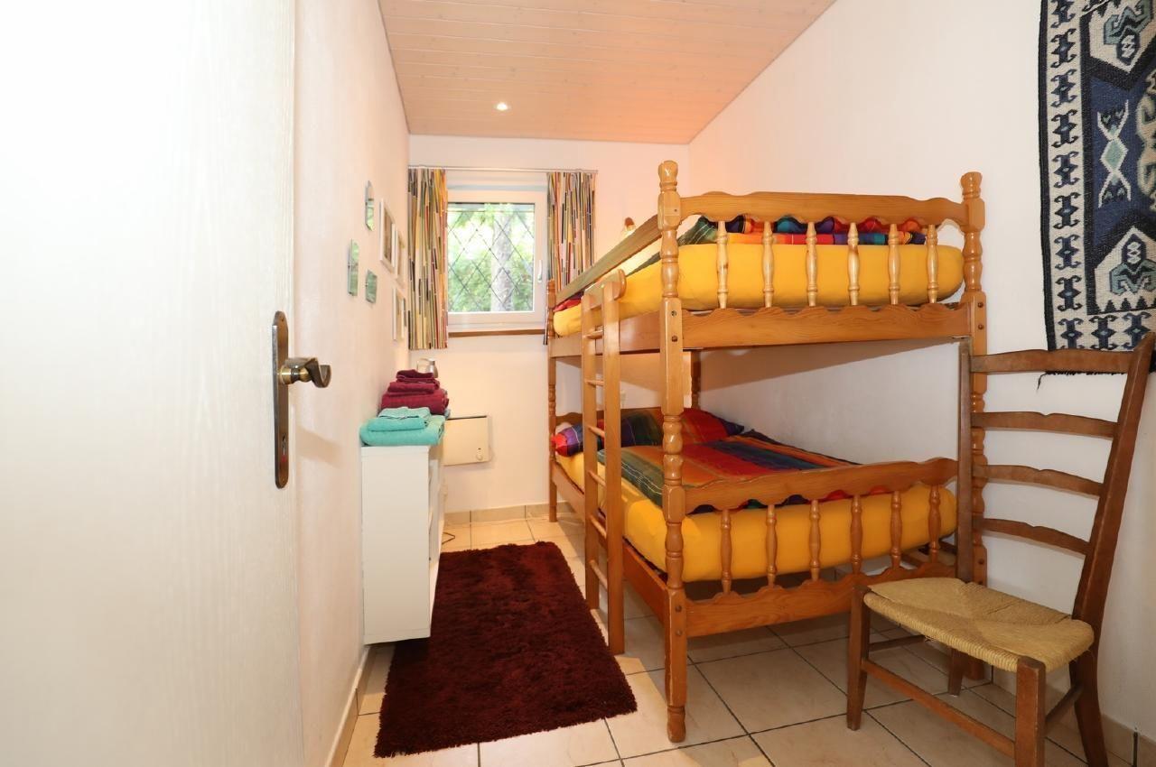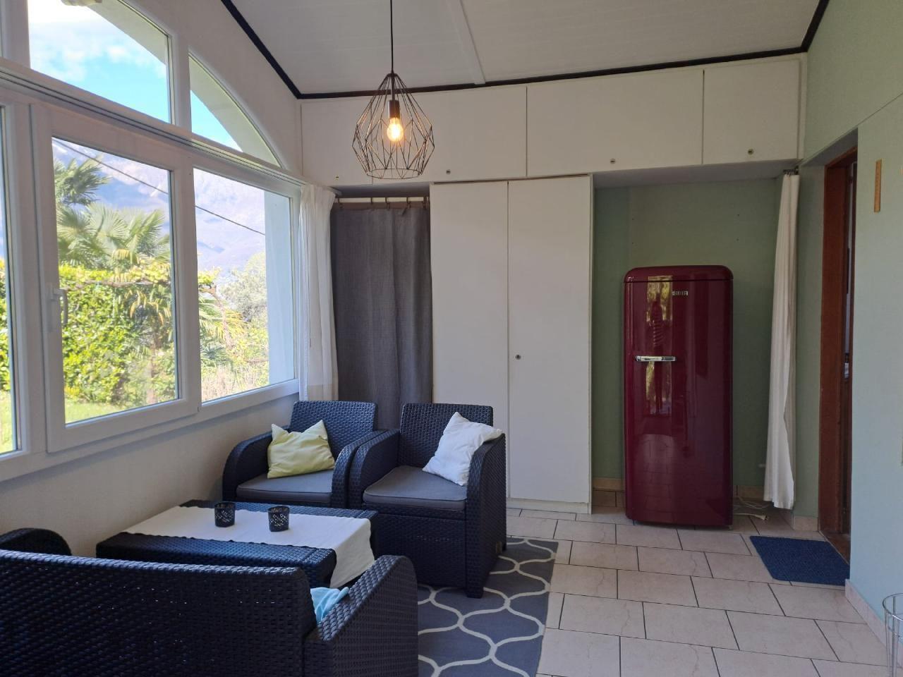 This detached single-family holiday home in a great location offers wonderful views of the lake, mountains, the Brissago Islands and the opposite shore of Lake Maggiore. It is located close to the border with Italy, approx. 70 metres above Lake Maggiore and is the perfect retreat in a beautiful, well-tended garden. A staircase leads from the car park to the extensive property, which is situated on the edge of the forest, surrounded by meadows, vines and palm trees, in an idyllic, peaceful location. The property extends over three terraces and is also safe for children. A 30m2 terrace, sheltered from the sun and rain, offers plenty of space and marvellous views. Although the house has a large number of beds (bedroom: 2 beds, children's room: 1 bunk bed, 3rd room: comfortable wide bed (120x200), living room: pull-out sofa bed (140x200), its friendly and functional furnishings provide a cosy atmosphere even for small families.