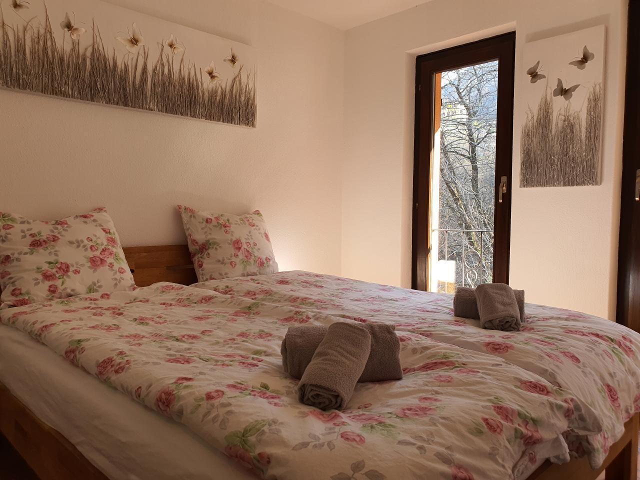 The flat sleeps 4 people. A bright and airy bedroom with double bed, access to a balcony, views of nature and the neighbouring forest.