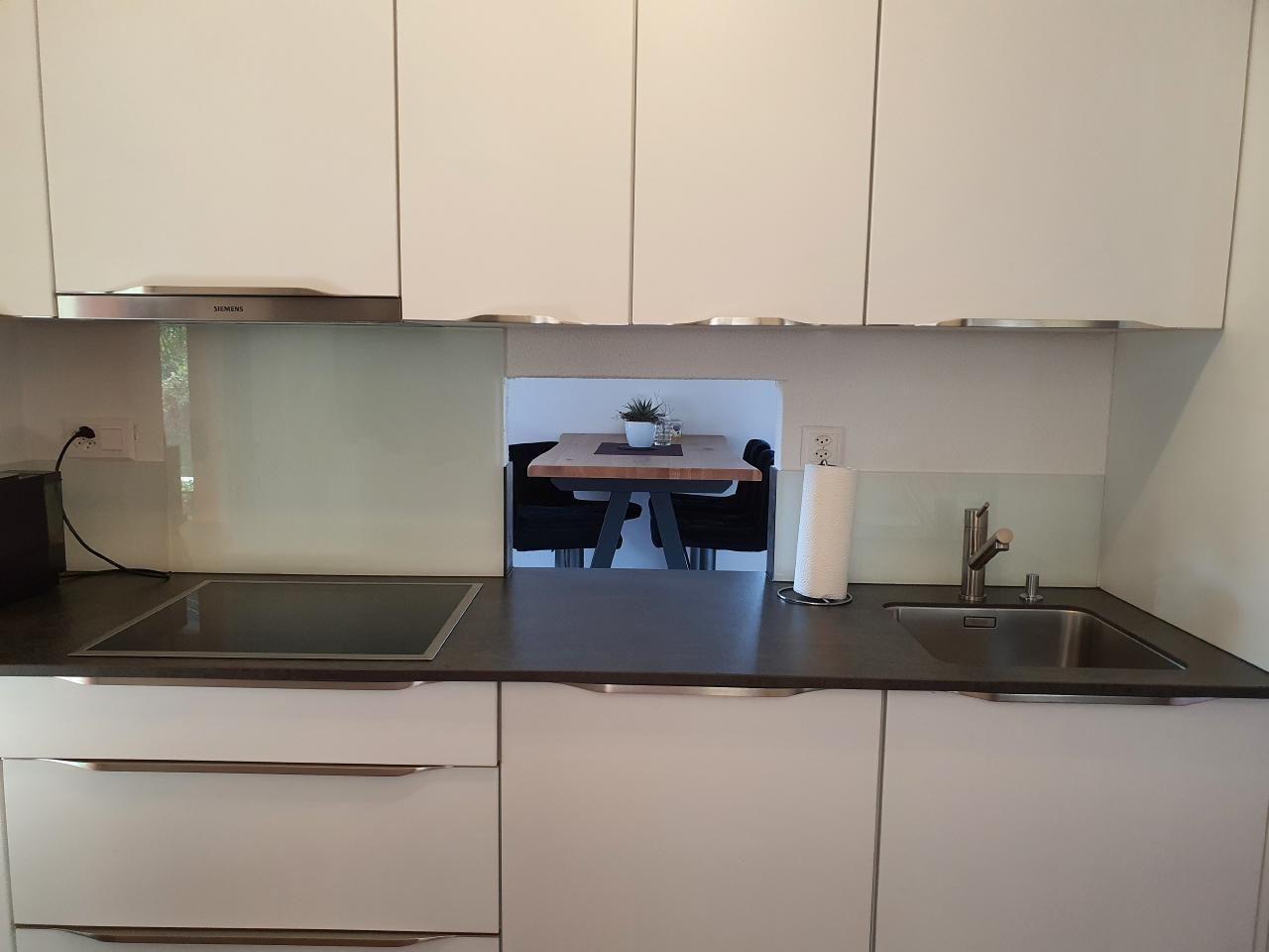 The spacious living/dining room with its large windows offers an unforgettable view of the lake, the communal pool and the surrounding mountains. From here you have direct access to your own large, private sun terrace, which is furnished with a dining table for 4 people and 2 sun loungers.