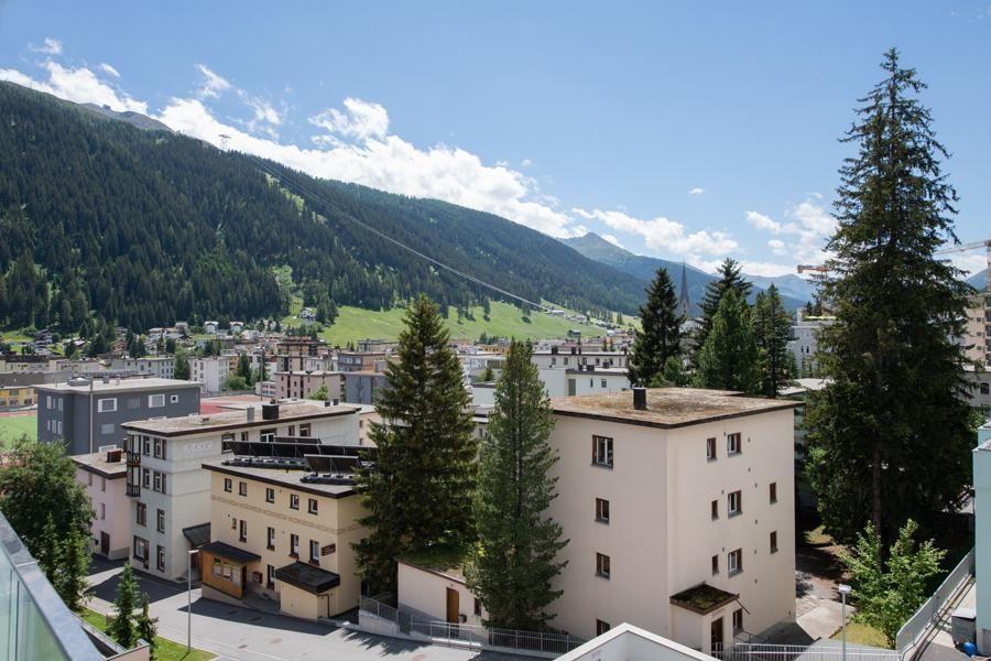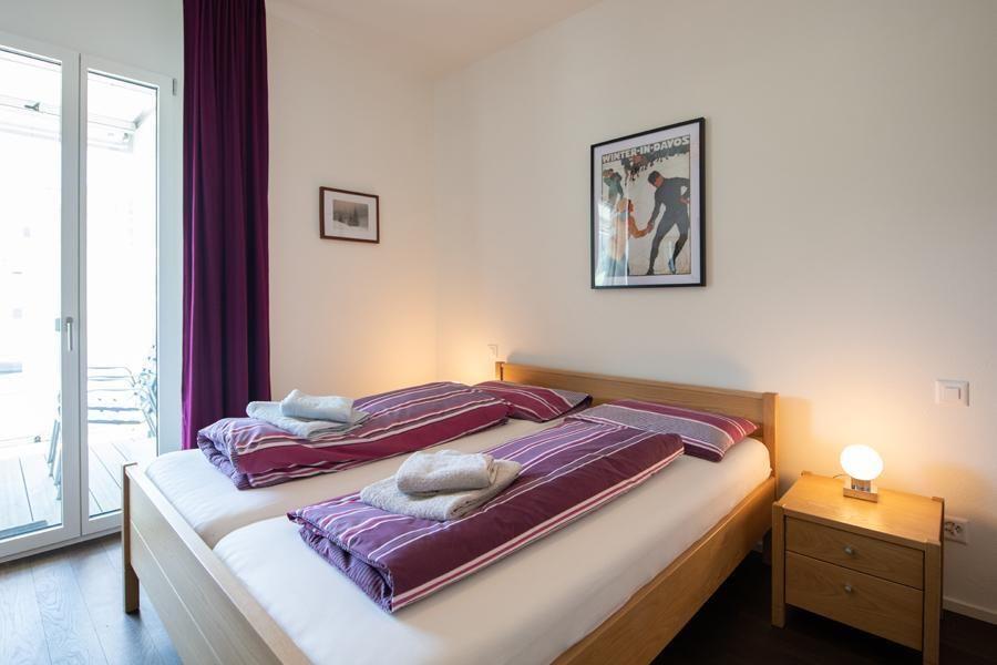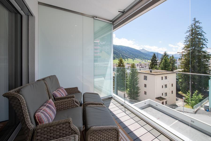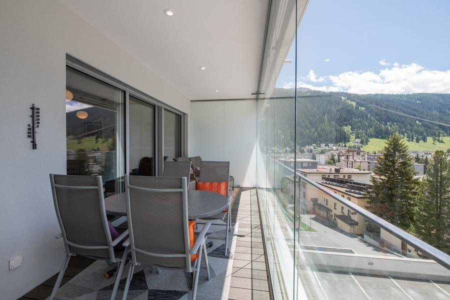 Modern, newly built flat with a beautiful view of the Jakobshorn for 2 people plus 1-2 children right in the centre of Davos Platz and yet very quietly located 2 complete bathrooms Very large, glazed terrace with beautiful balcony furniture