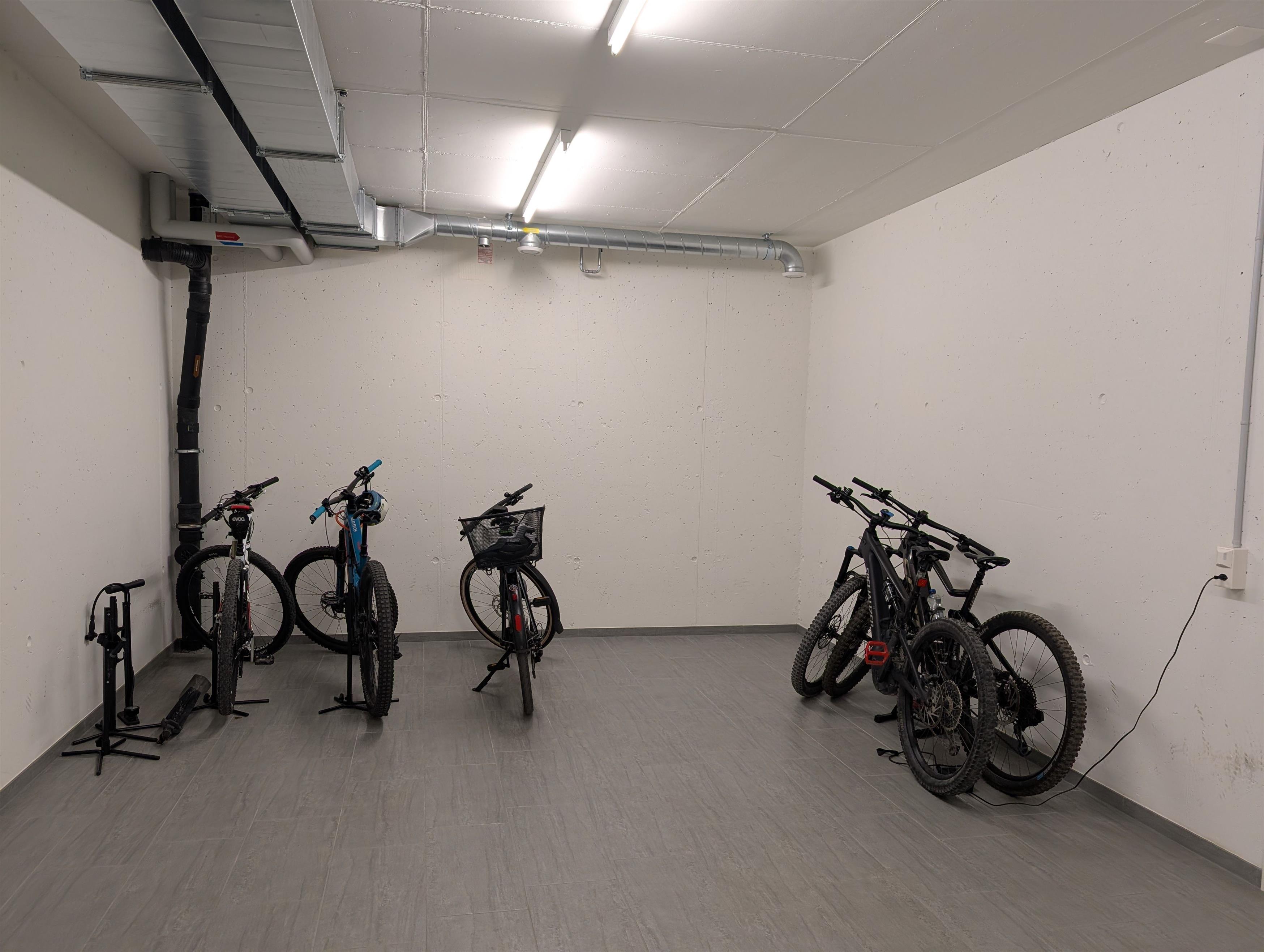 In the basement is the high garage, the ski and bike room, all lockable.