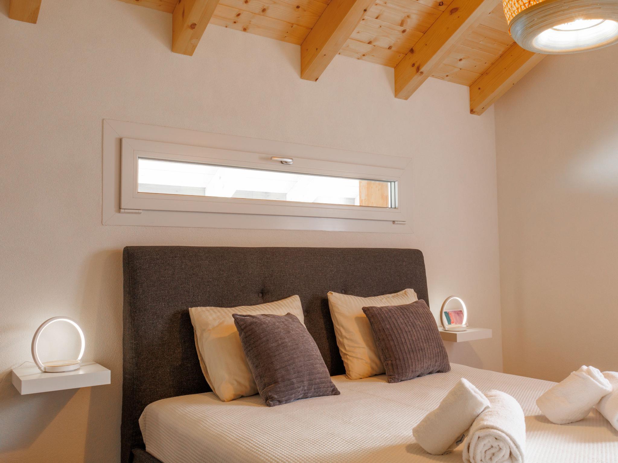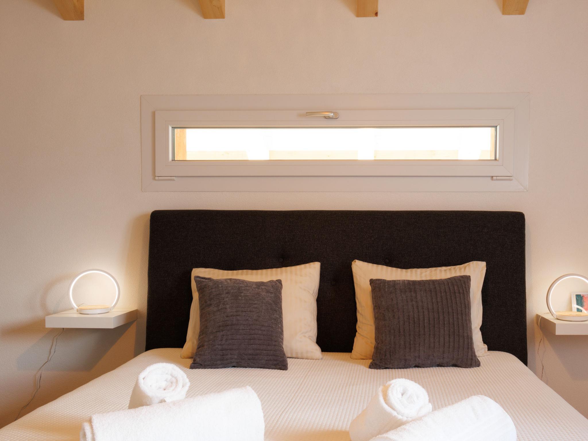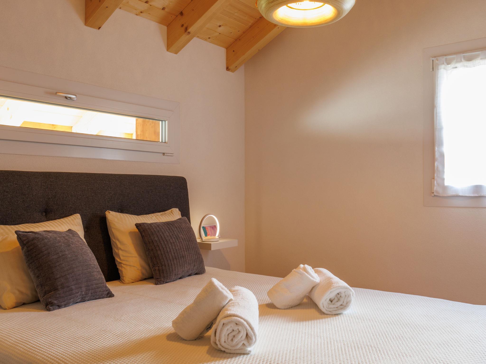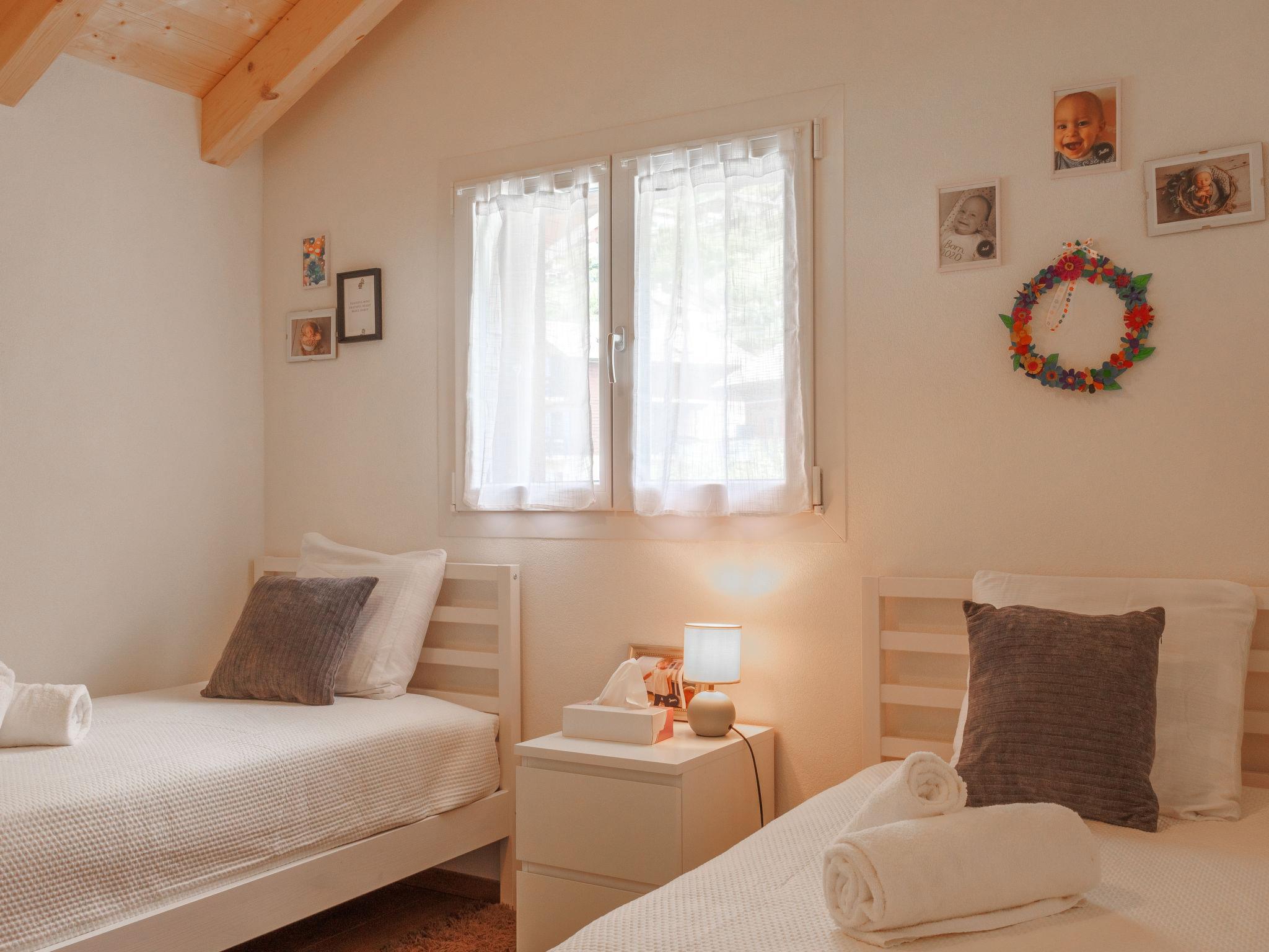 "Oxygène", 4-room chalet 85 m2 on 3 levels. Modern and tasteful furnishings: living/dining room with Scandinavian wood stove and cable TV. Exit to the terrace. Open kitchen (oven, dishwasher, 4 induction hot plates, toaster, microwave, electric coffee machine, raclette grill, fondue Set (cheese)). Shower/WC. On the lower ground floor: entrance hall. Upper floor: 1 room with 1 french bed (180 cm, length 200 cm). 1 room with 1 french bed (160 cm, length 190 cm). 1 children's room with 2 beds (90 cm, length 190 cm). Bath/WC. Terrace, north facing position and, east facing position. Terrace furniture, barbecue, deck chairs (1). Very beautiful view of the valley. Facilities: baby cot. Internet (WiFi, free). Parking (2 cars). Please note: non-smoking house. Maximum 1 pet/ dog allowed.