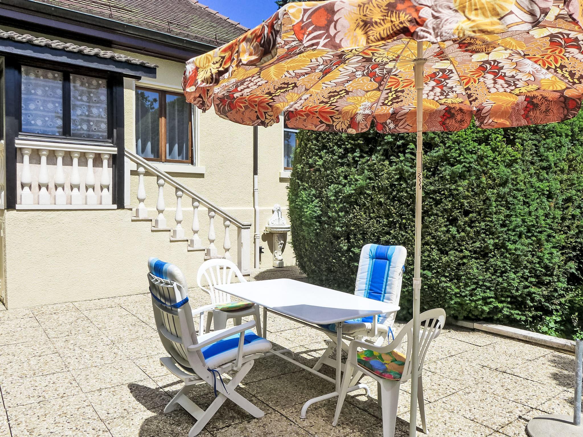 3-room house 81 m2. Object suitable for 2 adults. Comfortable and tasteful furnishings: dining room with dining table. Living room with cable TV. 1 room with 2 beds (90 cm, length 200 cm). Kitchen (oven, dishwasher, 4 ceramic glass hob hotplates, toaster, kettle, microwave). Shower/WC. Gas heating. Large patio. Terrace furniture, deck chairs (2). No view. Facilities: Internet (DSL/LAN, free). Please note: not suitable for children under 17 years. Non-smokers only.