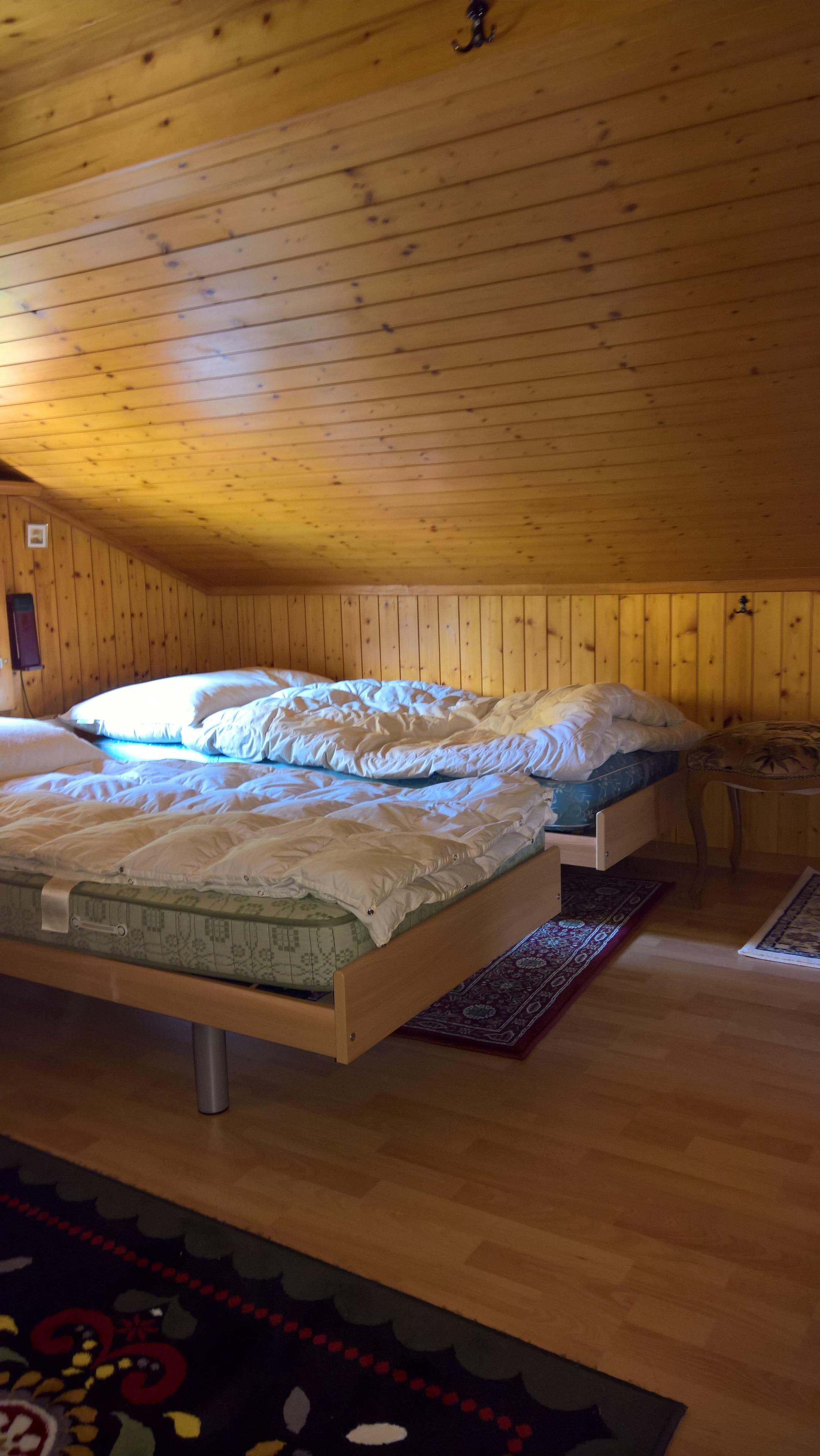 Das Chalet (auch für zwei Familien gut geeignet. Wir vermieten nicht an zwei sich fremde Parteien). hat drei Zimmer mit je mit 2 Betten, inklusiv Studio)Im ausgebauten Dachgeschoss befinden sich vier Zusatzbetten. Ein Wohnzimmer mit TV, WLAN, Radio ,DVD so wie Küche, Geschirrspüler und Bad. Zwei Baby Bett. Das Studio mit zwei Betten, Dusche, Toilette, Mikrowelle, Kühlschrank hat einen separaten Eingang. Das Chalet verfügt ausserdem über eine Waschmaschine im Keller.