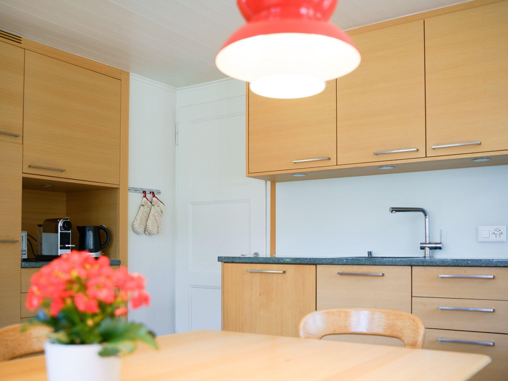 Ground floor: Living room with sofa, TV/radio, WiFi. Kitchen with dining area, dish-washer, refrigerator, freezer, filter coffee machine, coffee machine with capsules (Nespresso), raclette- et fondue-set, washing machine and tumble dryer. 1 bedroom with king-size-bed (160x200cm) and a piano. 1 bedroom with 1 single bed (90x200cm). 1 bath/toilet. 1st floor: Gallery with table and chairs. 1 bedroom with 2 single beds (90x200cm). 1 bedroom with king-size bed (120x200cm). Small stairs from ground to 1st floor. 1 toilet/shower. Baby cot (80x120cm) incl. bed linen and highchair available.