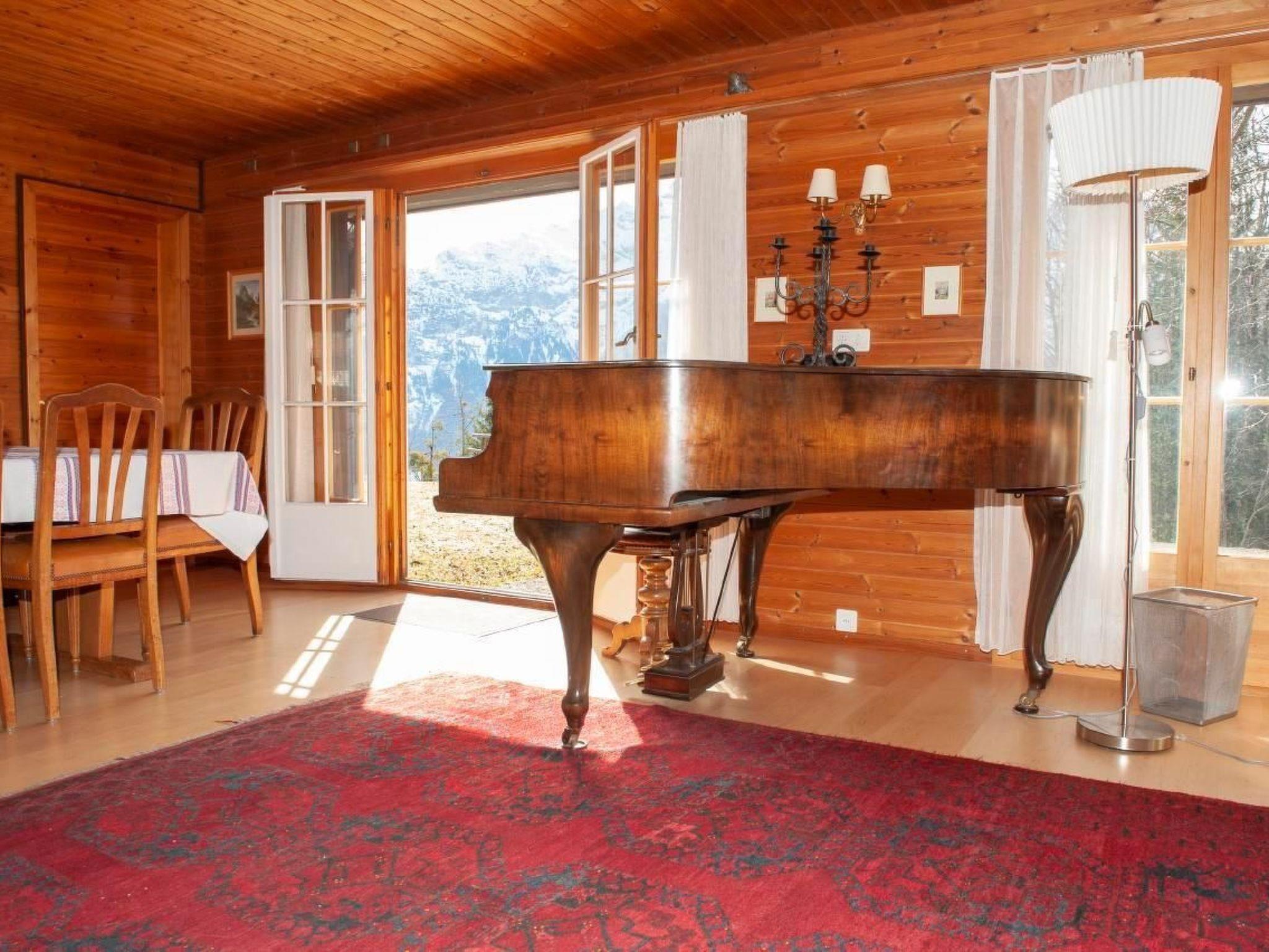 The interior leaves nothing to be desired. and a fully equipped kitchen with four hobs and oven, dishwasher, raclette and fondue equipment and a capsule coffee machine. In the spacious living room, the dining table with 9 chairs and the fireplace with a seating area invite you to spend cosy hours; with a small grand piano, a stereo system and Swisscom TV, a games collection and a large selection of fiction and crime novels in the house library, entertainment is provided. - Two bedrooms on the first floor each sleep 2 people (one with a double bed and one with a Grand LIt and a cot), and there is also a single bedroom on the ground floor with a rustic old wooden bed. An entrance hall with wardrobe and shoe rack, a boiler room with washing machine, a bathroom with bathtub and a separate toilet complete the interior.