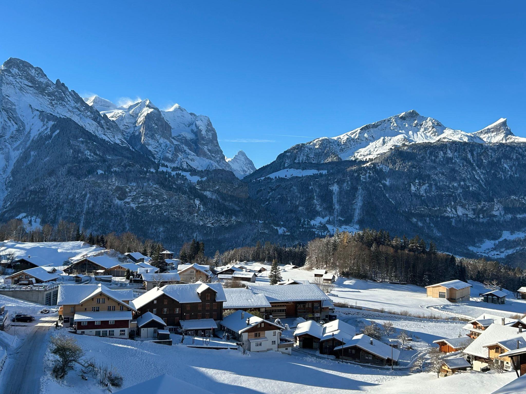 The highlight of the flat is its large balcony. This outdoor haven offers unparalleled views of the Wetterhornegruppe and Eiger, inviting guests to unwind and soak in the breathtaking surroundings. A private parking space is also included, underscoring the thoughtful amenities that make this flat a perfect retreat.