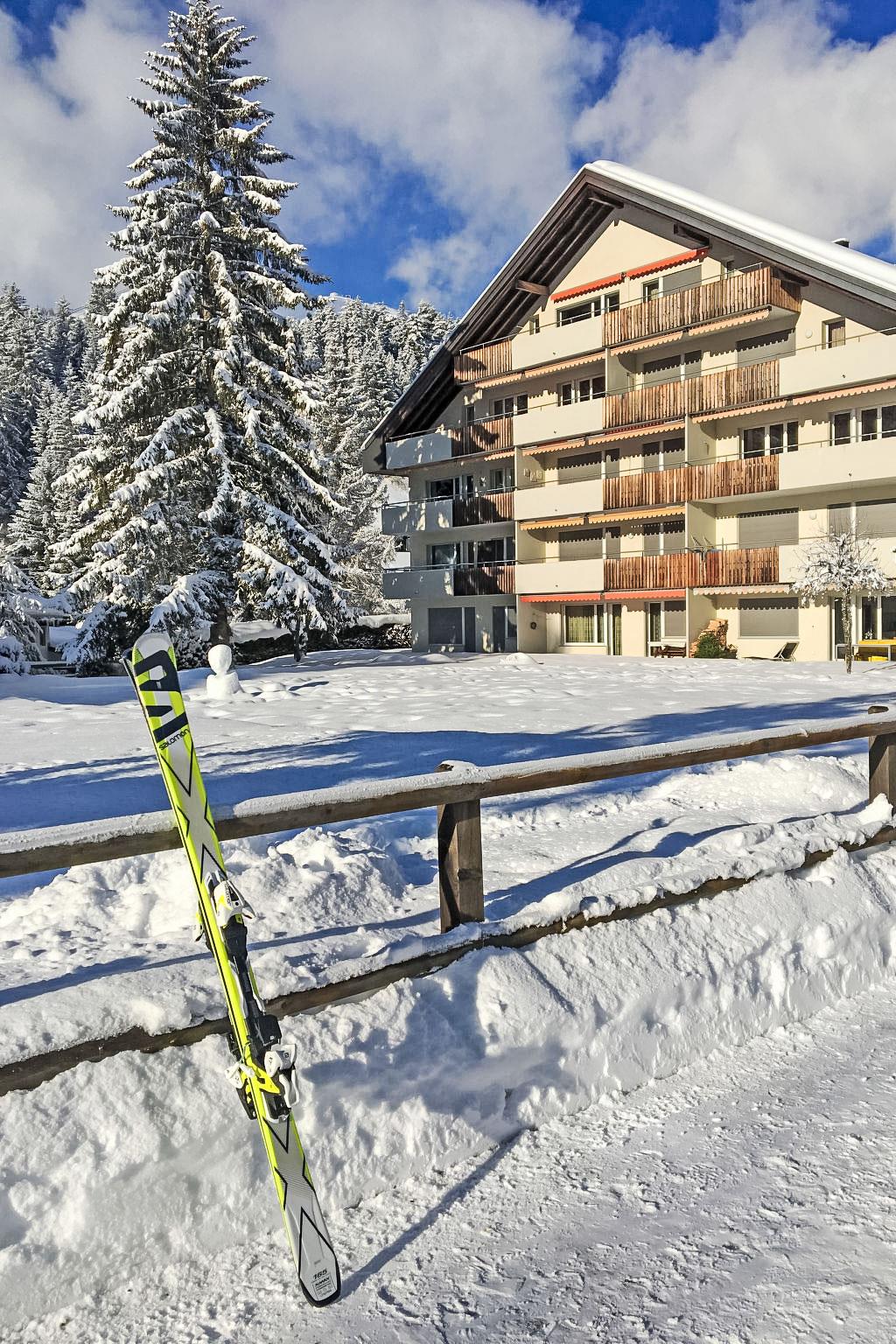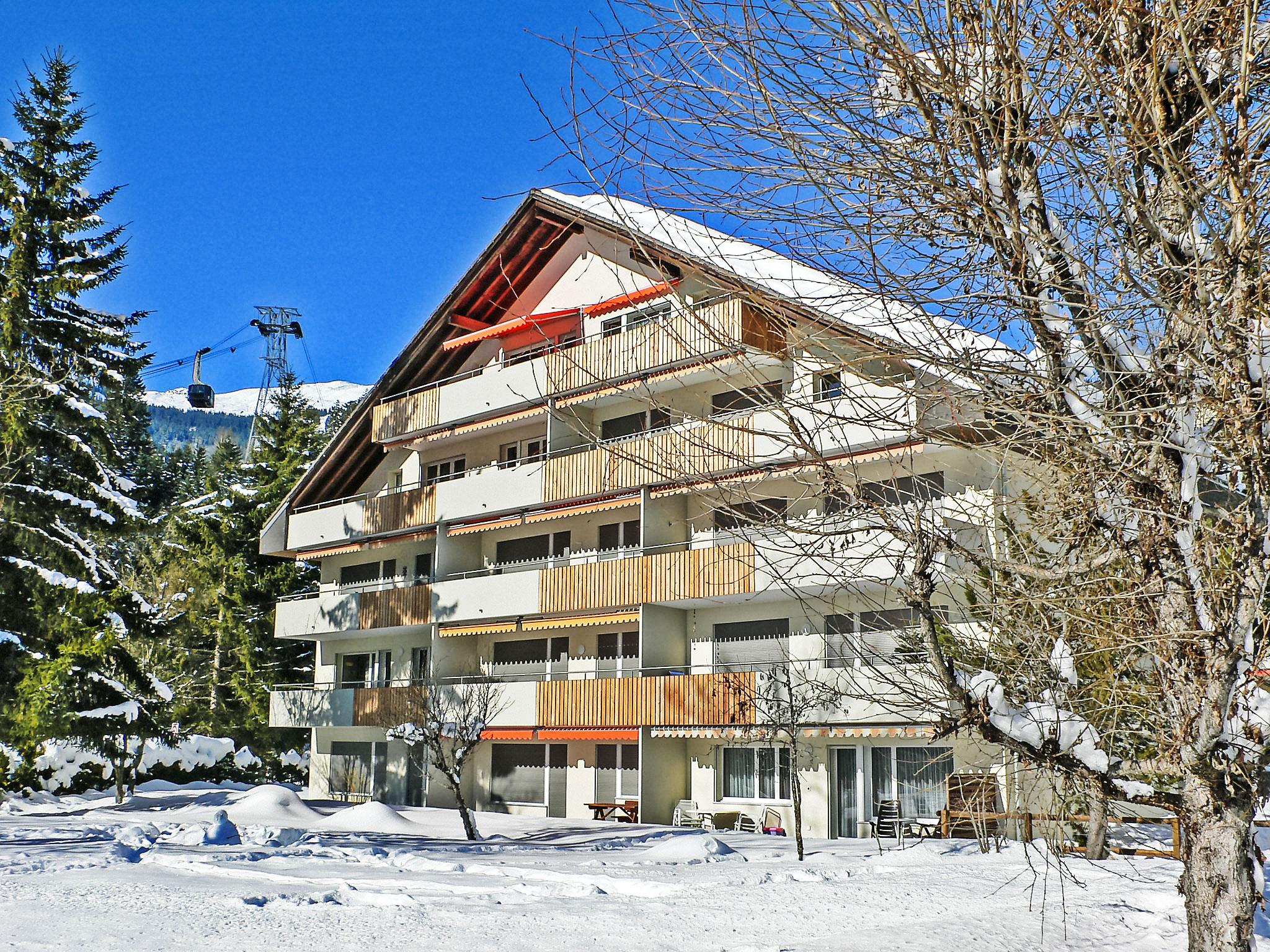 Laax-Murschetg 25 km from Chur: Comfortable apartment house "Val Signina", built in 1974, renovated in 2012, surrounded by trees and meadows. On the outskirts, 2 km from the centre of Laax, in the district Surselva, in a quiet position, in the countryside. For shared use: table tennis. In the house: lift, storage room for skis, central heating system, washing machine, tumble dryer (for shared use, extra). Motor access to the house. Communal covered parking. E-charging station. Shop 150 m, supermarket 100 m, restaurant, bar 150 m, bus stop "Postauto" 200 m, railway station "Chur" 25 km. Golf course (18 hole) 6 km, walking paths from the house, cable car, mountain railway 100 m, ski lift 150 m, ski school 100 m, sled run 200 m. Nearby attractions: Rheinschlucht, Chur, Parc Ela. Well-known ski regions can easily be reached: Flims - Laax. Well-known lakes can easily be reached: Crestasee, Caumasee. Please note: Additional accommodations can be booked. Property ref. CH7031.105 is situated on the same property. ,One more: the CH7031.105.1 and CH7031.105.2 apartments can be rented together.