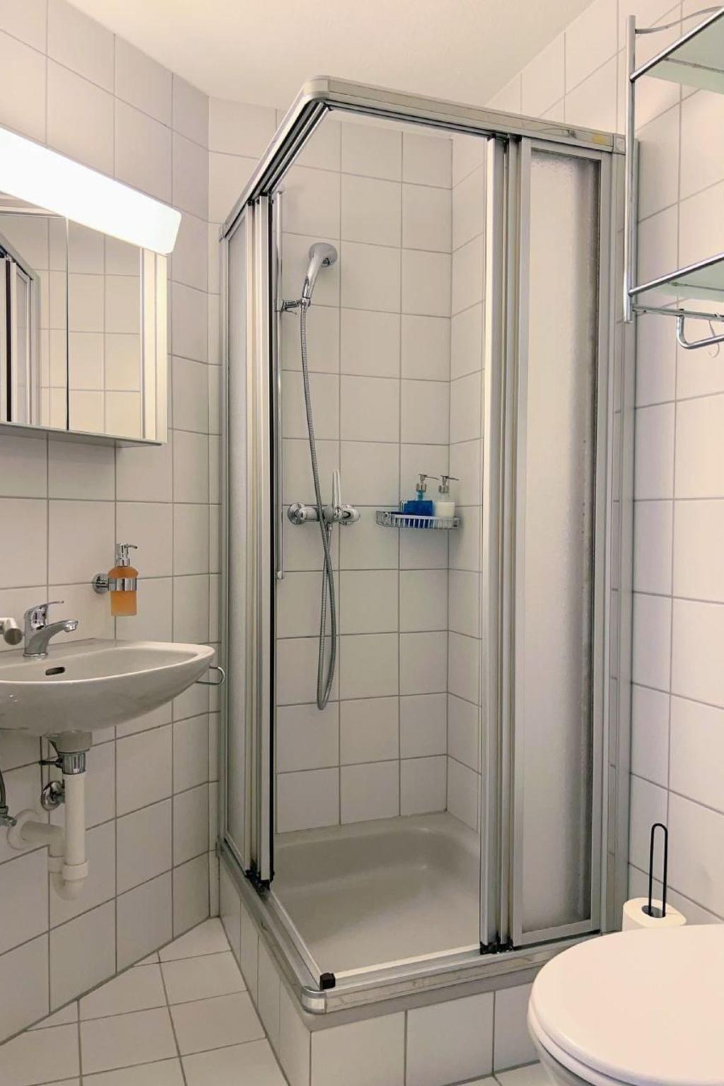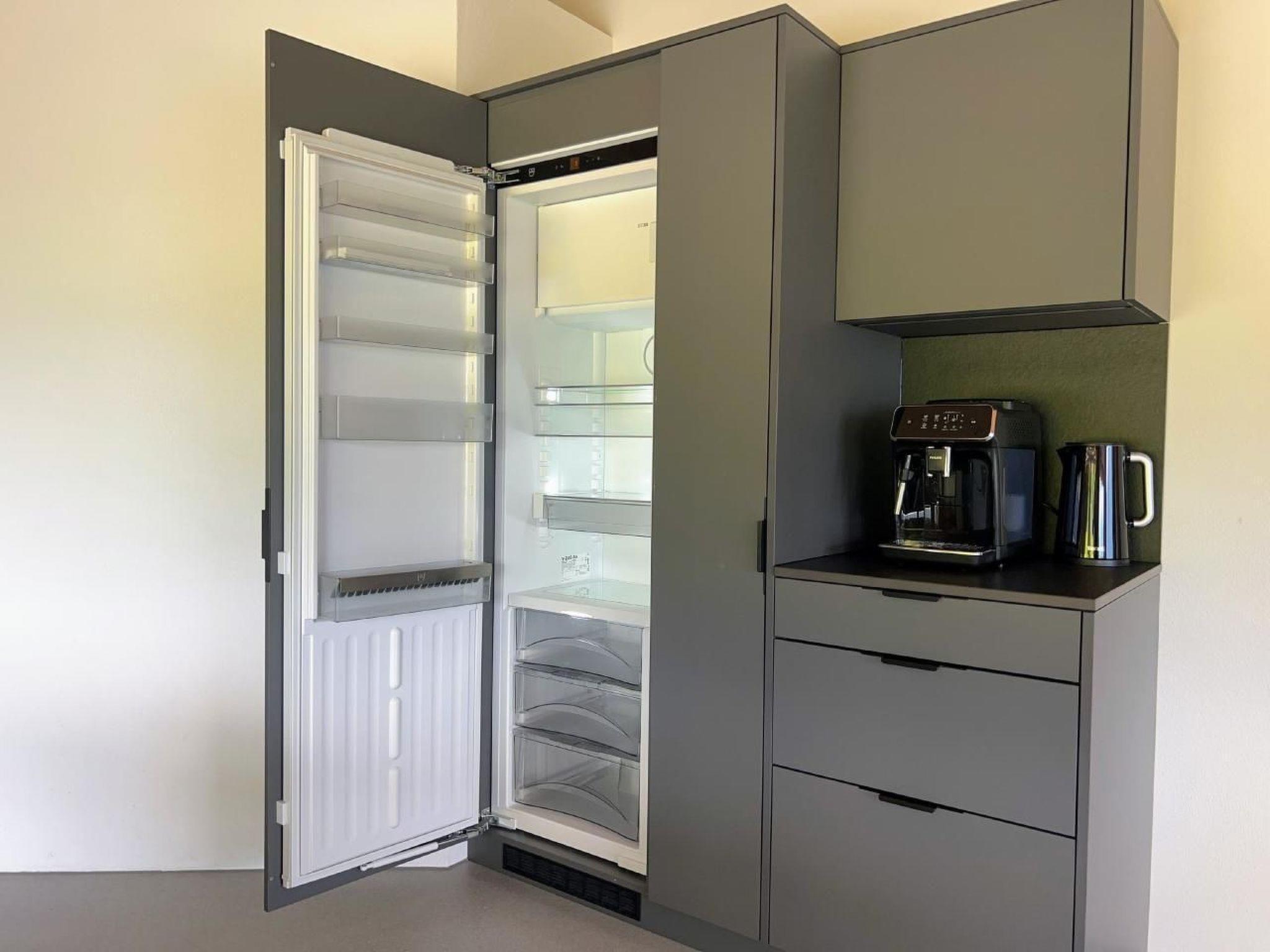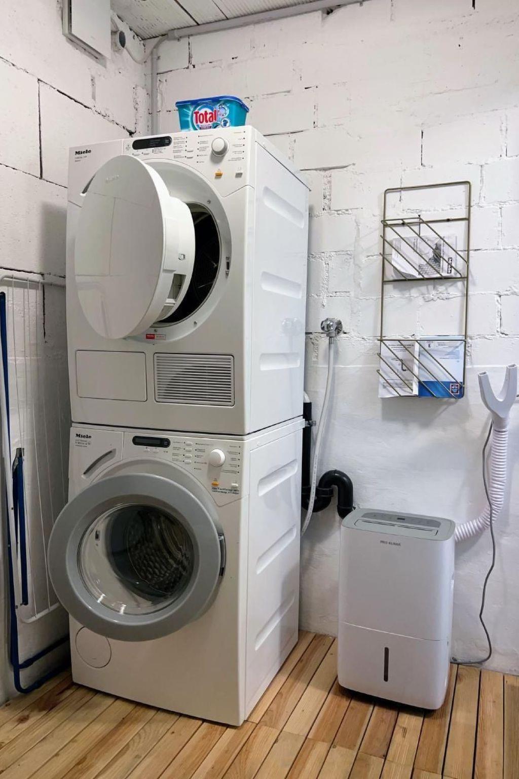 The lower floor - accessible both from the outside via a separate entrance and via the stairs in the house - has a cosy sitting area, a desk for 2 people, 2 bedrooms and 2 bathrooms (1x WC, 1x shower). The laundry room with a washing/drying tower and the boiler room with a separate, combined washing/drying machine are also located on this floor. The lower floor also has its own terrace, which is ideal for storing bicycles (power sockets), and is connected to the upper terrace via a natural staircase.