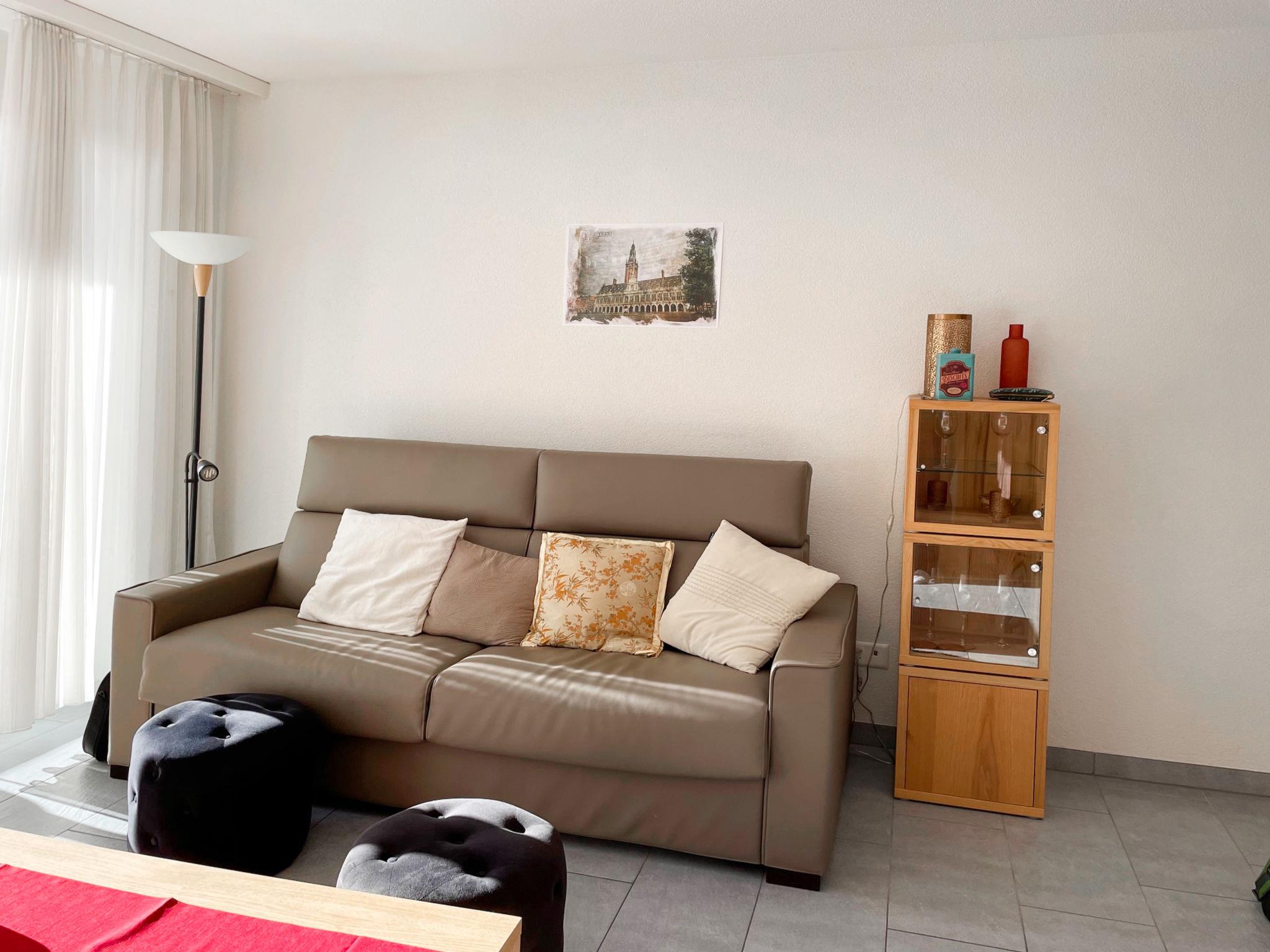 "Wohnung 13", 2-room apartment 49 m2 on 1st floor. Modern and cosy furnishings: living/dining room with 1 double sofabed and cable TV (flat screen). Exit to the balcony. 1 double bedroom. Exit to the balcony. Open kitchen (oven, dishwasher, 4 ceramic glass hob hotplates, microwave). Shower/WC, sep. WC. Balcony 18 m2. Balcony furniture. Beautiful view of the mountains and the countryside. Facilities: Internet (WiFi, free). Garage space n 13. Please note: non-smokers only.