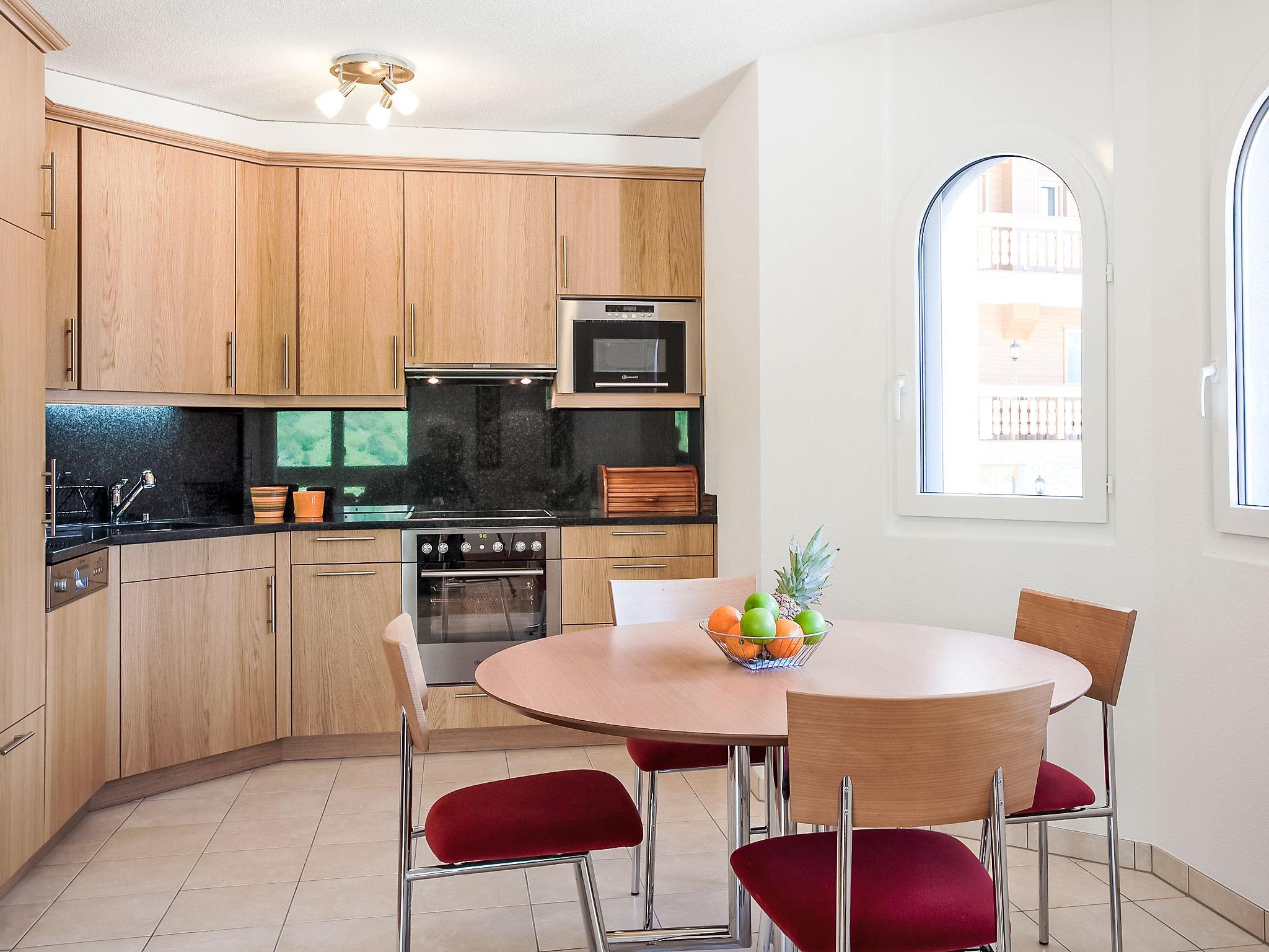 Comfortable apartment block "Iris A", 4 storeys, built in 2008. In the resort, in a central, sunny, elevated position, located by a road. In the complex: sauna, fitness room, steam room, hot tub, lift, central heating system, washing machine, tumble dryer (for shared use, extra). Communal covered parking. Shop 400 m, restaurant 200 m, bar, café 400 m, bus stop "Leukerbad, Obere Maressen" 250 m, thermal baths 400 m. Skisport facilities 600 m, ski bus stop 150 m, ice rink 1 km. A fitness and relaxation chalet is available to all residents among Iris houses. Relaxation area with Finnish sauna, aroma steam bath, hot tub. The Leukerbad Card Plus is included in the reservation. The Leukerbad Card Plus includes the following services: free use of Ringjet local bus, free access to the ski area for children Erli, free use of the sports center (badminton, tennis, squash, billiards, table tennis, skating, football, indoor football, mini-golf, boulder, etc.), 15 % discount on the purchase of pass and snow bath. 10% discount on subscriptions and the multiple entry tickets to public baths.