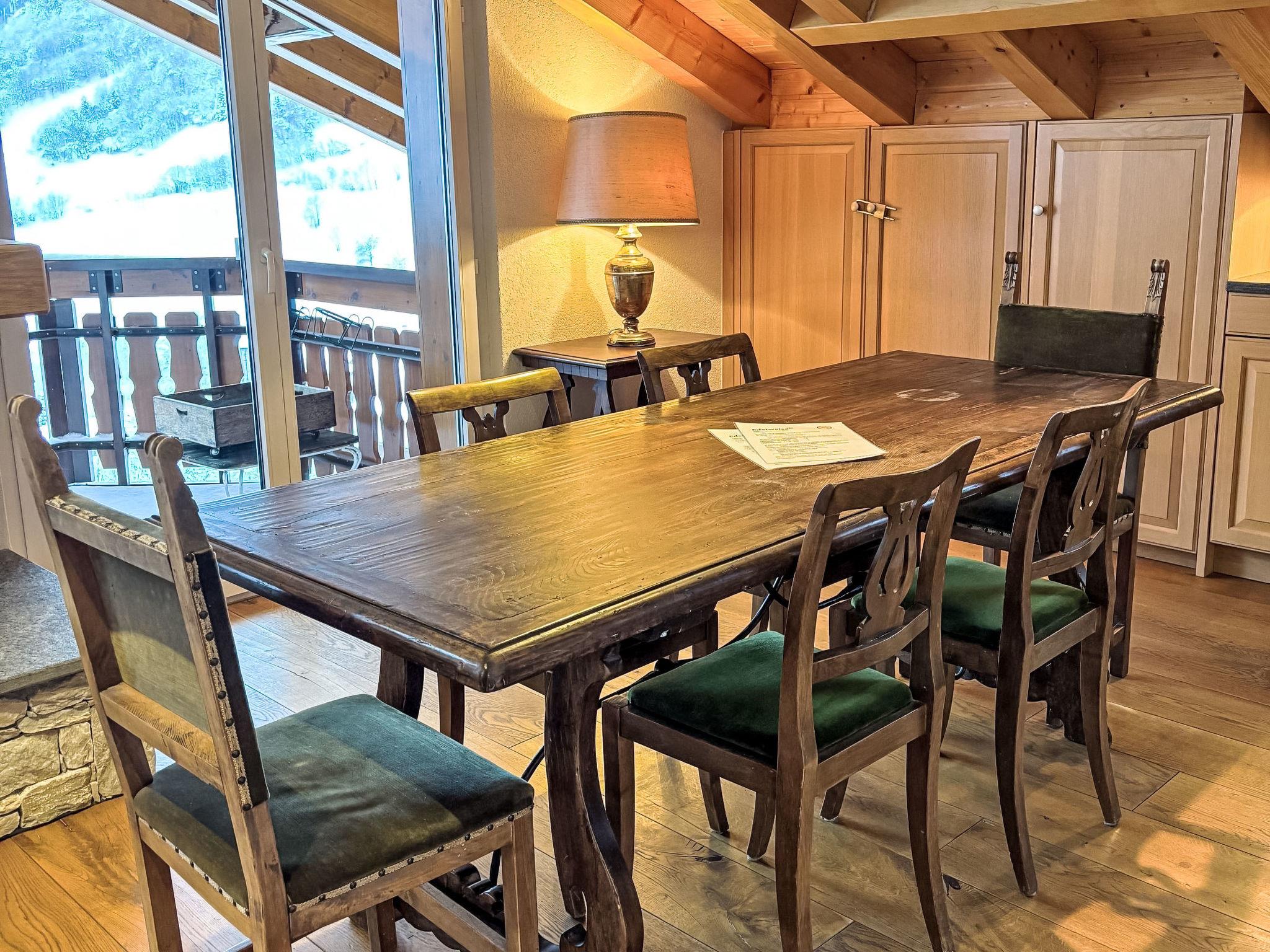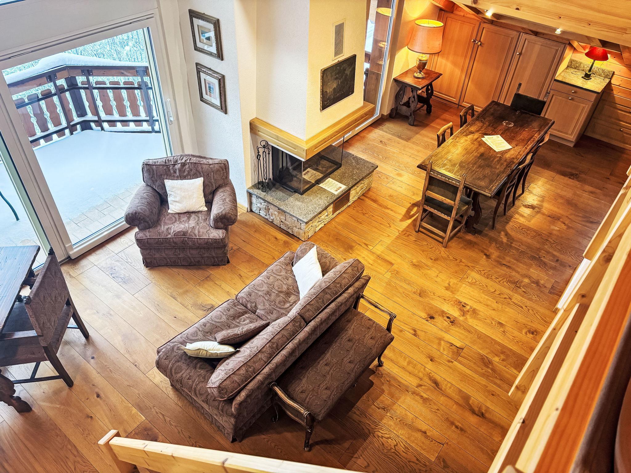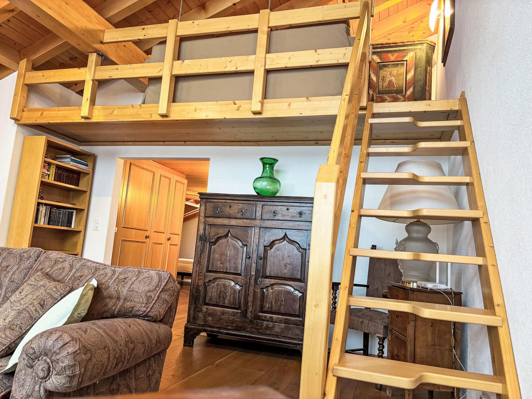 3-room penthouse 100 m2 on 2 levels on 4th floor. Comfortable and tasteful furnishings: living/dining room with open-hearth fireplace. Exit to the balcony, south facing position. 1 room with digital TV and DVD. 1 double bedroom with sloping ceilings with 1 double bed. Open kitchen (oven, dishwasher, 4 ceramic glass hob hotplates, microwave, electric coffee machine, Capsules for coffee machine (Nespresso) extra). Shower/WC, bath/shower/WC. Upper floor: open gallery with sloping ceilings with 1 double bed. Very beautiful view of the mountains and the countryside. Facilities: children's high chair, baby cot (extra). Internet (WiFi, free). Garage (extra). Please note: non-smokers only.