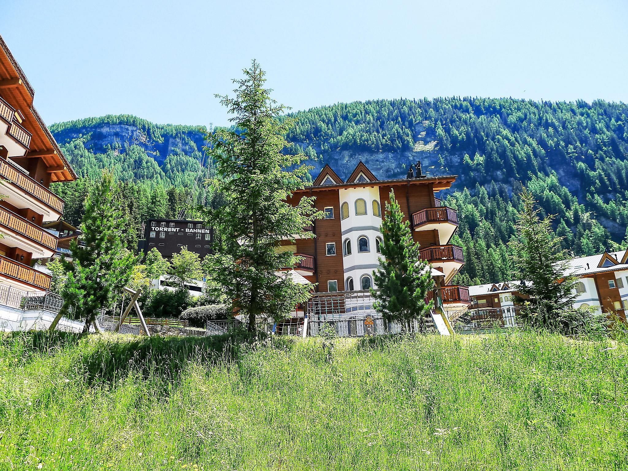 Beautiful, comfortable apartment block "Edelweiss B", 1'350 m a.s.l.. On the outskirts, 450 m from the centre, in a quiet, sunny position, 250 m from the skiing area. For shared use: children's playground. In the house: lift, storage room for skis, central heating system, washing machine, tumble dryer (for shared use, extra). Bread roll service. Motor access to the house (mountain road). Communal covered parking at the house. Shop, grocery, restaurant 250 m, bus stop "Leukerbad, Bristol" 200 m, thermal baths 350 m. Tennis, cable car, skisport facilities 250 m. The Leukerbad Card Plus is included in the price: free use of Ringjet local bus, free access to the ski area for children Erli, free use of fitness centre and discount on ski packages and pool.