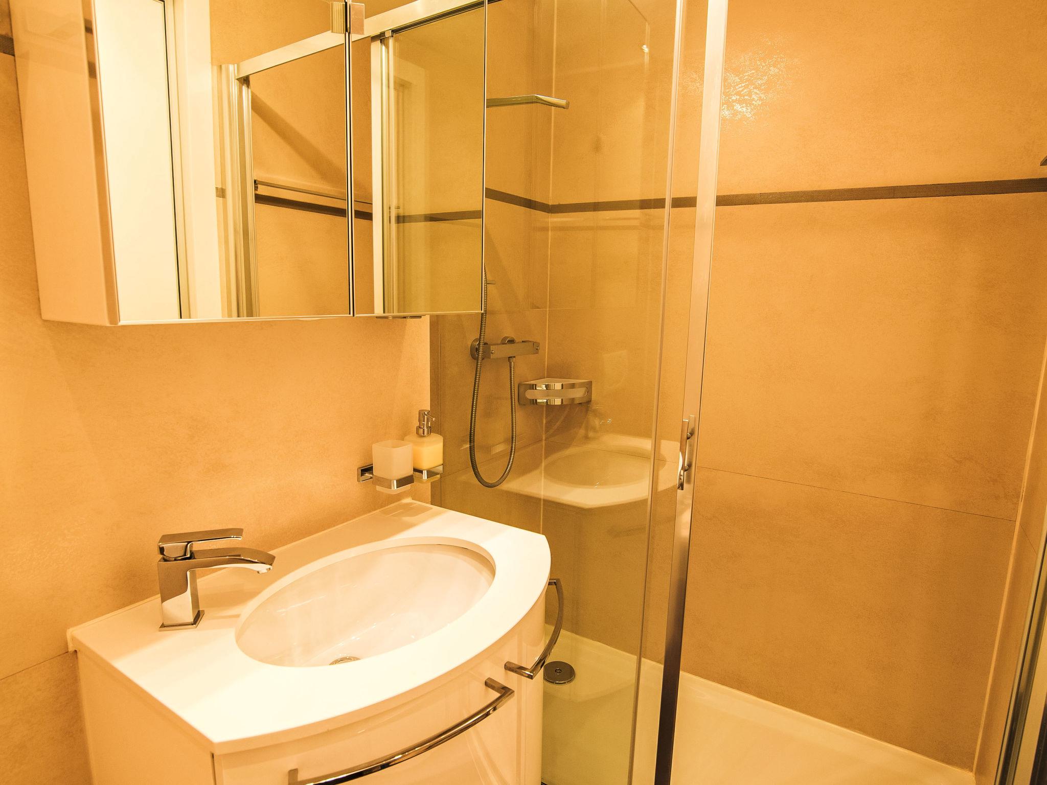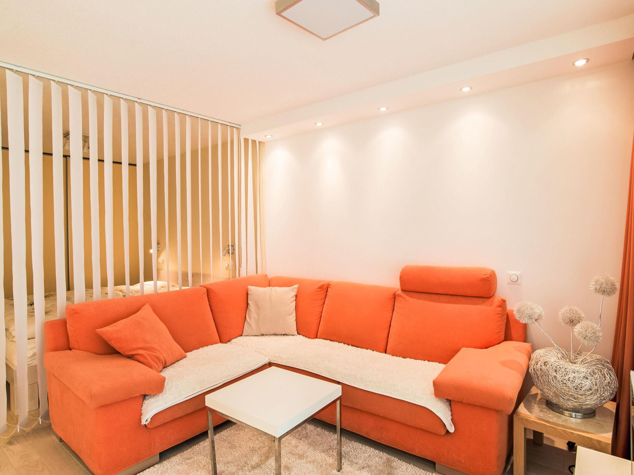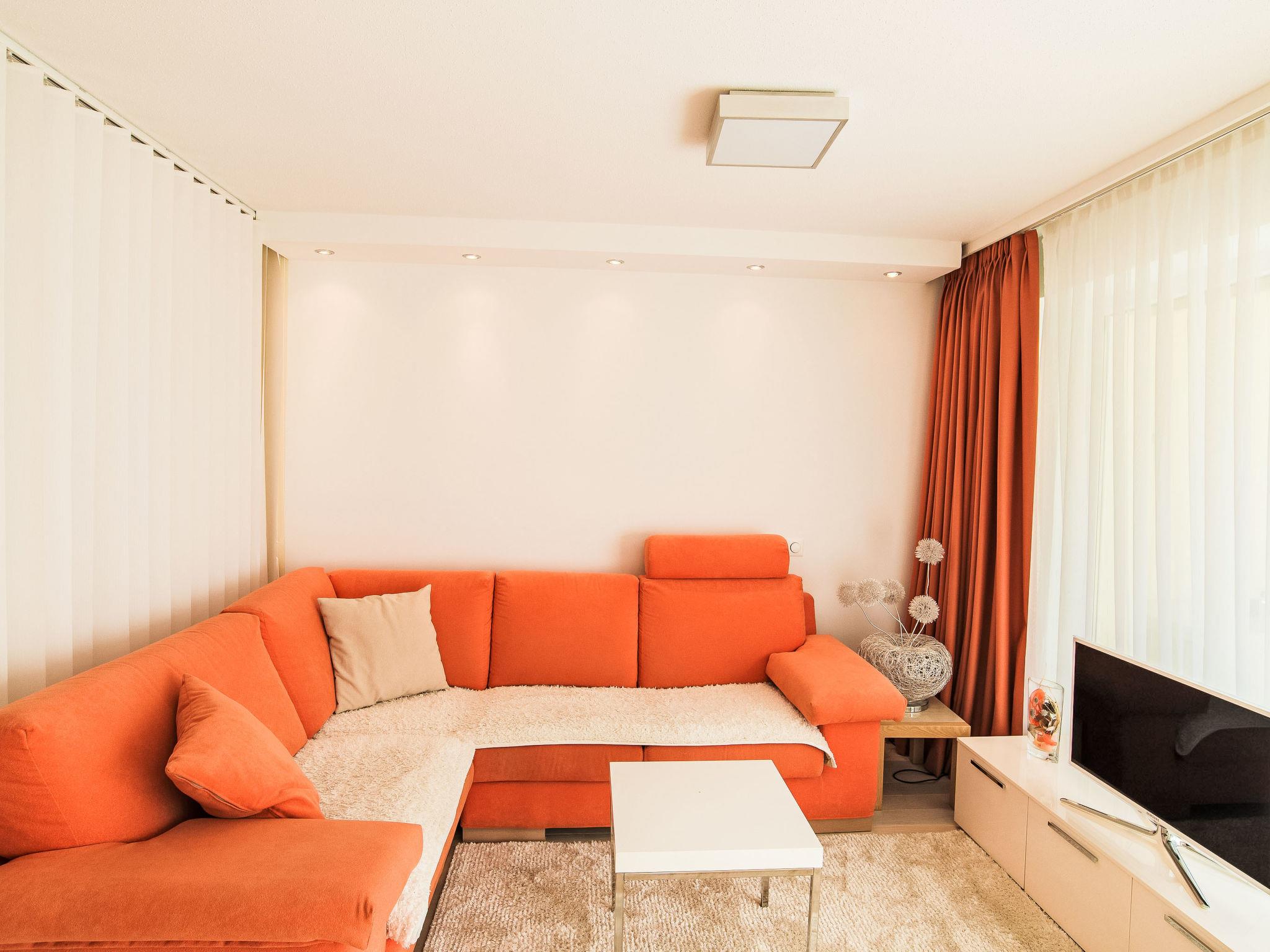 "Cristal 38", 1-room apartment 35 m2 on 1st floor. Renovated, beautiful and cosy furnishings: living/sleeping room with 1 sofabed and 1 double bed (2 x 90 cm, length 200 cm), dining table and cable TV. Exit to the balcony. Open kitchen (oven, dishwasher, 4 ceramic glass hob hotplates, electric coffee machine). Shower/WC. Parquet floors. Large balcony. Balcony furniture. Panoramic view of the mountains. Facilities: hair dryer. Internet (WiFi, free). Please note: non-smokers only.