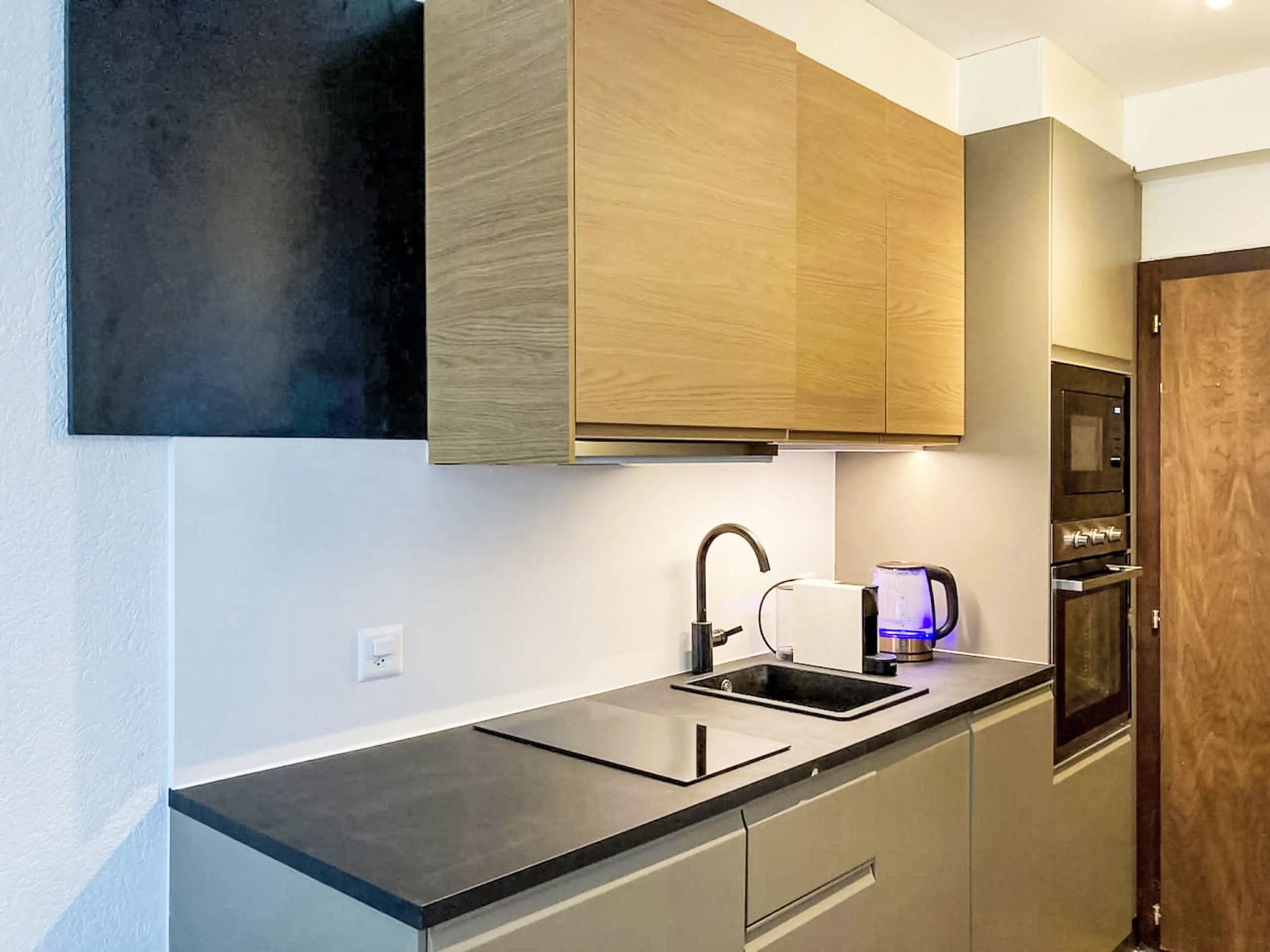 "Flaminia 24", 1-room apartment. Fully renovated in 2025, beautiful and tasteful furnishings: open living/sleeping room with 1 double sofabed (140 cm, length 200 cm), 1 double bed (160 cm, length 200 cm), dining table and digital TV. Exit to the balcony. Open kitchen (oven, dishwasher, 4 ceramic glass hob hotplates, kettle, freezer, electric coffee machine). Bath/WC. Heating. Parquet floors. Balcony. Balcony furniture. Very beautiful view of the mountains. Facilities: hair dryer. Internet (WiFi, free). Please note: non-smokers only.