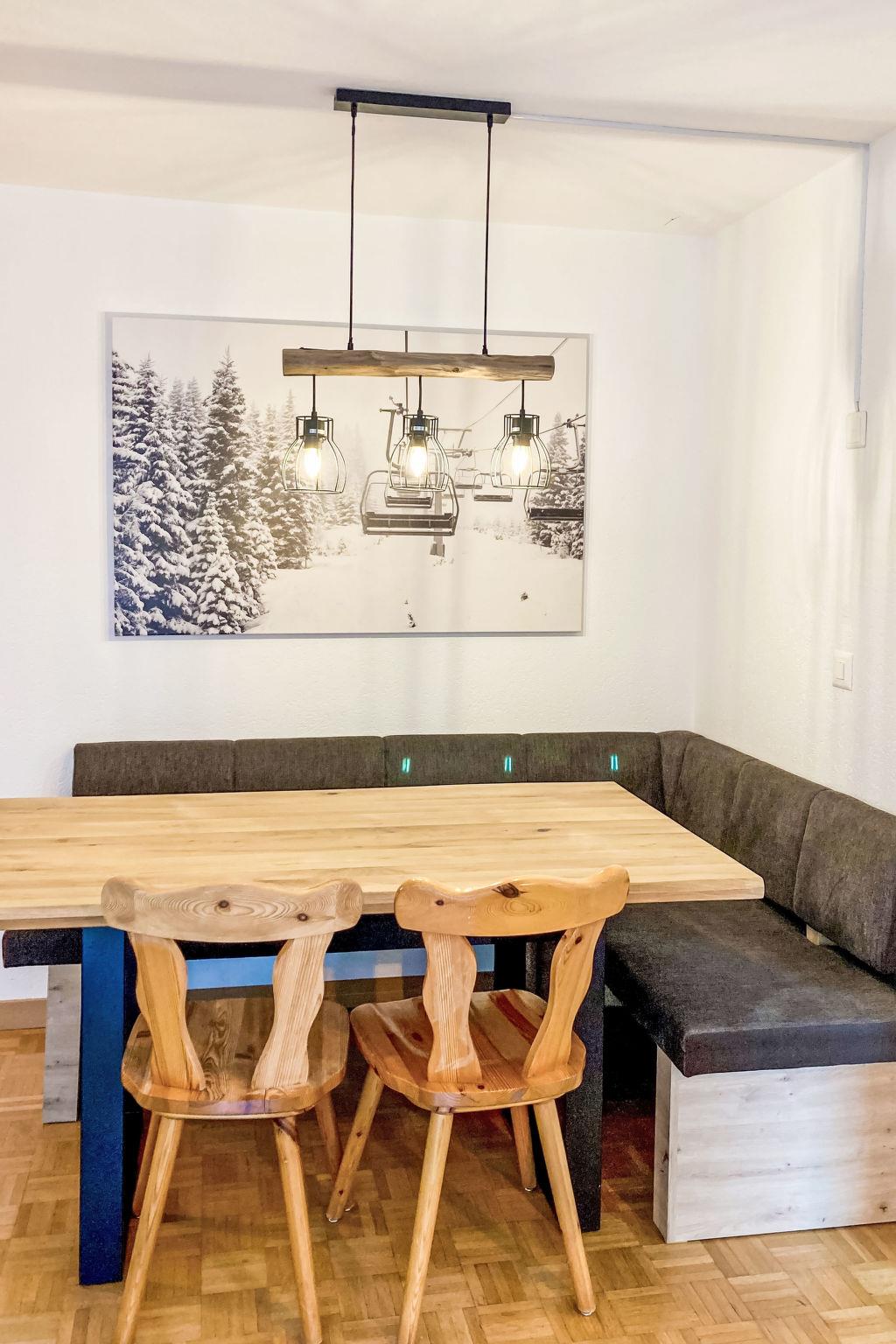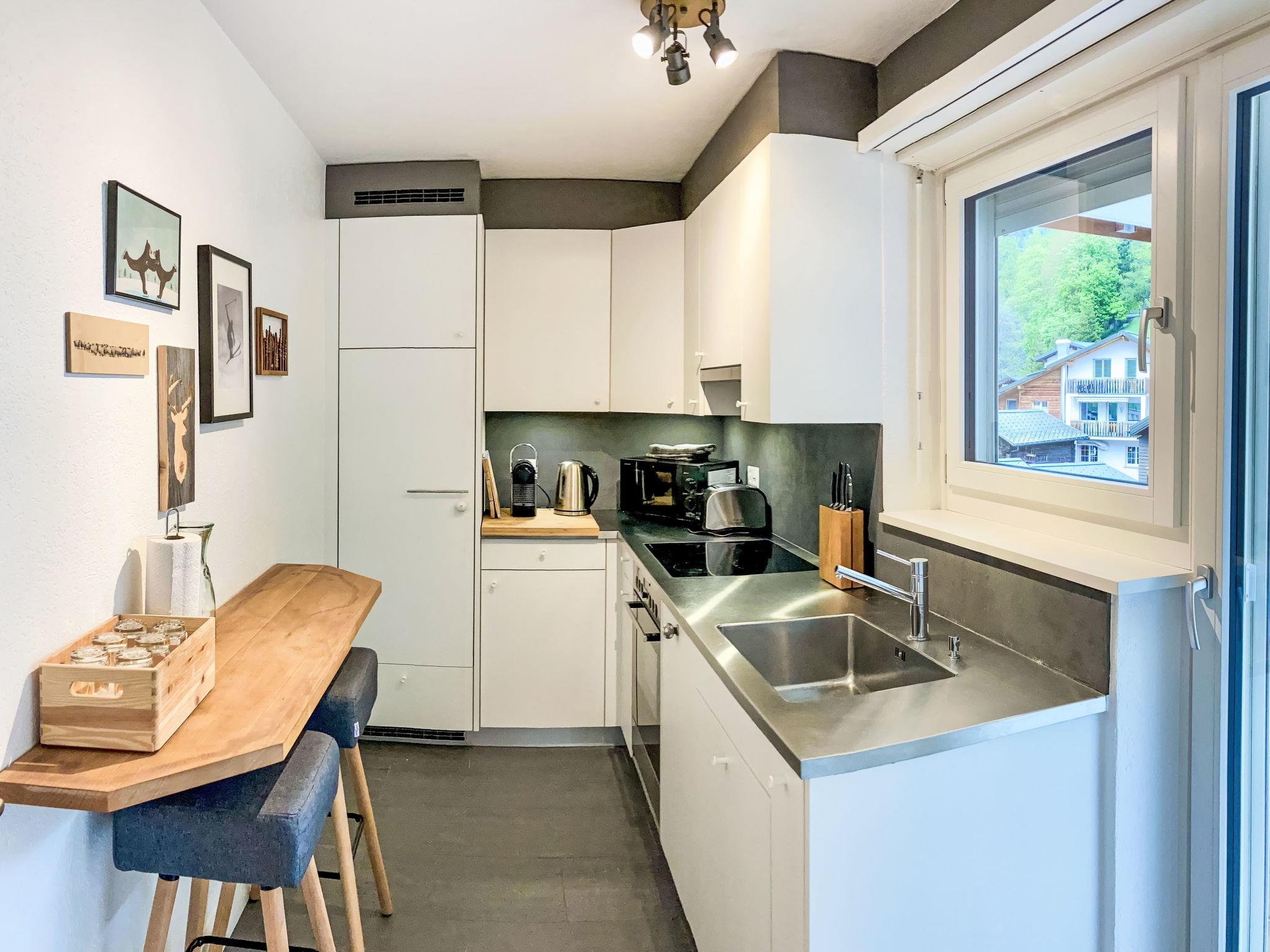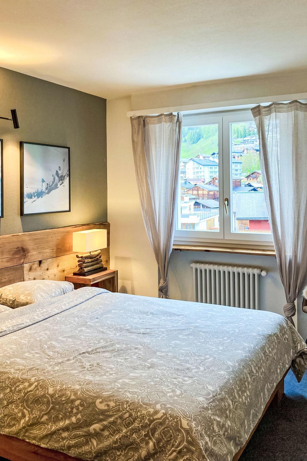 "Dala", 3-room apartment 60 m2 on 3rd floor. Bright, fully renovated in 2023, beautiful and cosy furnishings: living/dining room with 1 sofabed (140 cm, length 200 cm), dining nook and digital TV. Exit to the balcony. 1 double bedroom with 1 double bed (160 cm, length 200 cm). 1 room with 1 bed (90 cm, length 200 cm), 1 double bed (1 x 140 cm, length 200 cm). Large kitchen (oven, dishwasher, 4 ceramic glass hob hotplates, toaster, kettle, microwave, freezer, electric coffee machine). Exit to the balcony. Shower/WC. 2 balconies. Balcony furniture. Beautiful view of the mountains and the resort. Facilities: Internet (WiFi, free). Please note: non-smokers only.