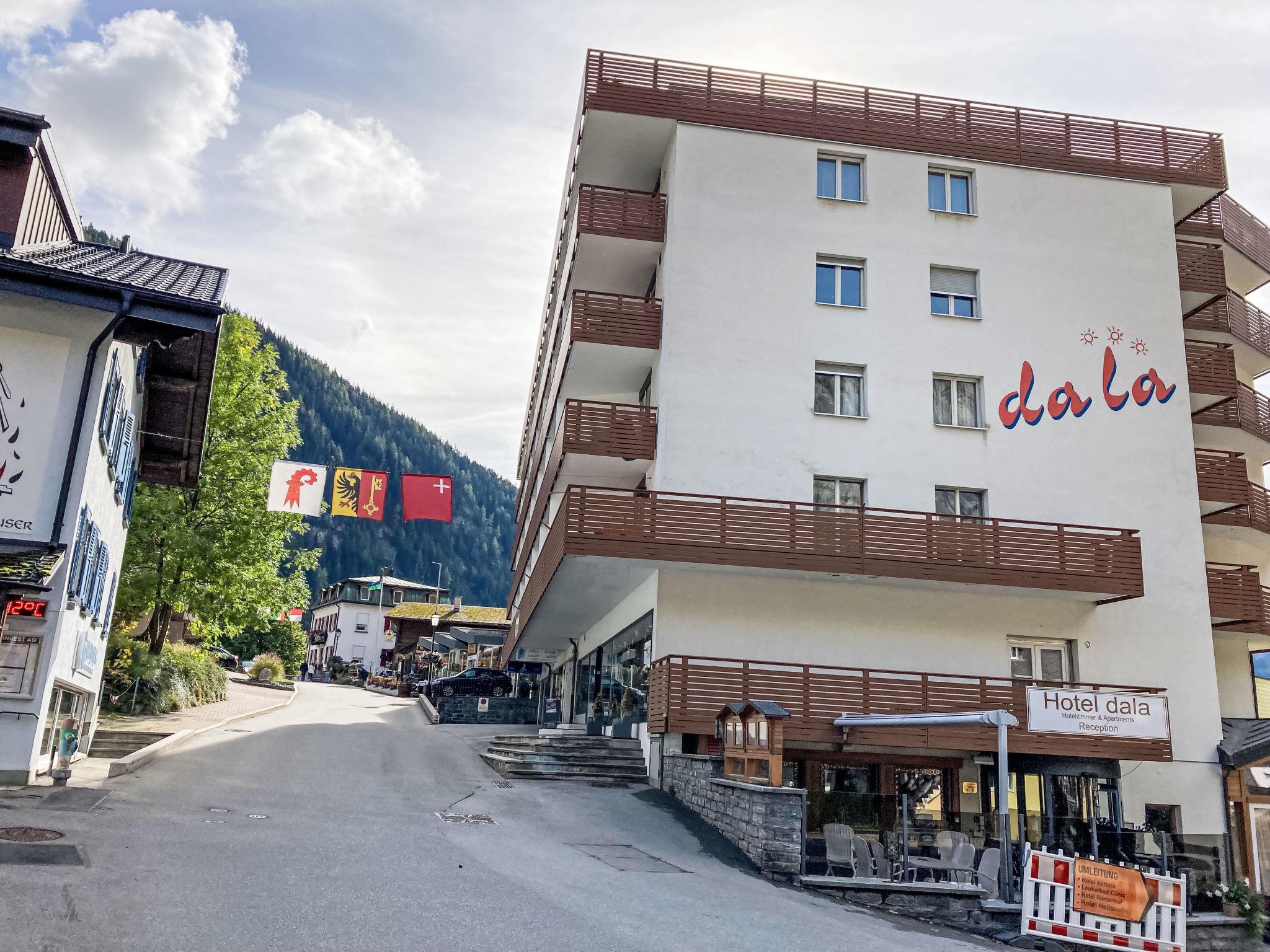 Large apartment house "Dala", 4 storeys. In the centre of Leukerbad, excellent location: right in the centre but still quiet. In the house: lift, storage room for skis, central heating system, washing machine, tumble dryer (for shared use, extra). Parking (extra). Supermarket, restaurant, café 200 m, 2 minute walk to the centre, bus stop "Dorf" 200 m, railway station "Bahnhof Leuk" 18 km, thermal baths "Alpentherme" 200 m. Slopes 500 m.