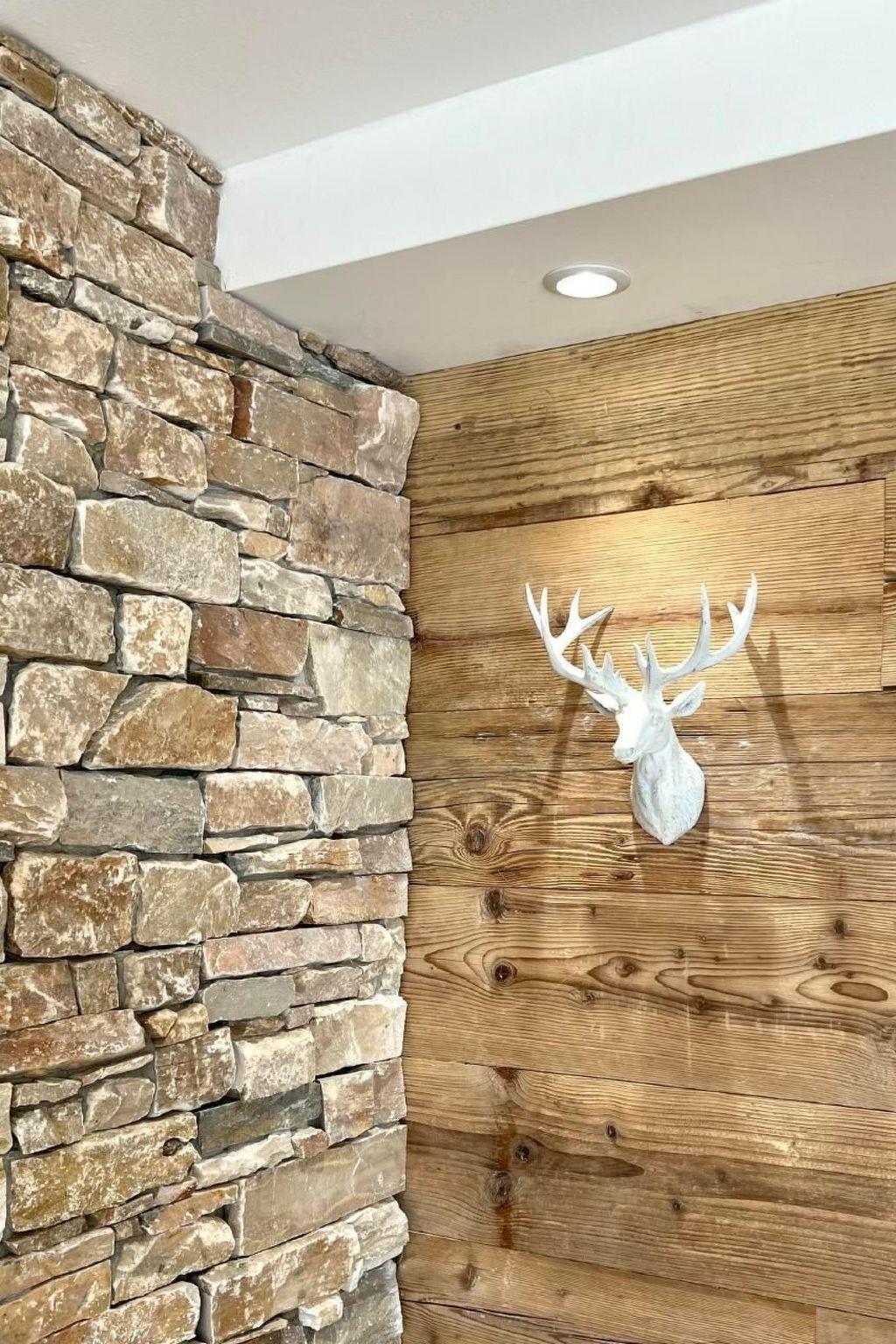 The flat was created in October 2022 exclusively with natural materials such as oak real wood parquet, wall design in natural stone and old wood.