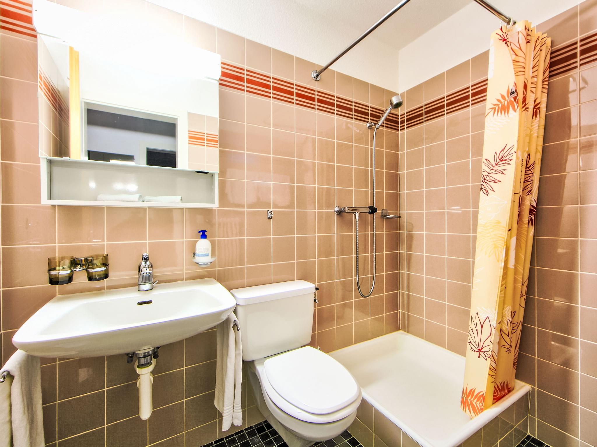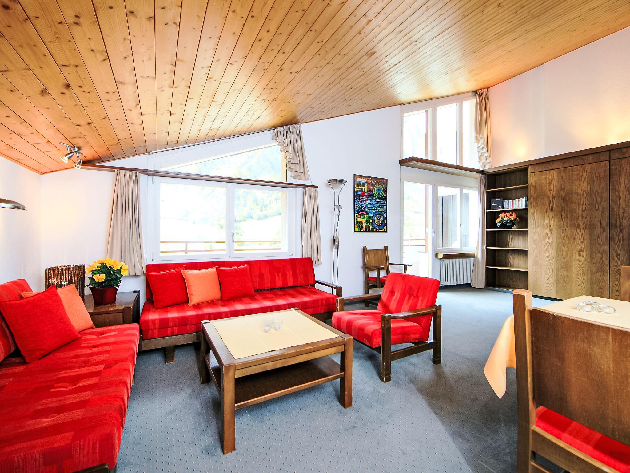 "Ringstrasse Apt 511", 2-room apartment 68 m2 on 5th floor. Partly renovated, tasteful and cosy furnishings: living/dining room with 2 fold-away beds and cable TV (flat screen), CD-player. 1 room with 2 beds. Kitchen (oven, dishwasher, 4 ceramic glass hob hotplates, toaster, microwave, electric coffee machine, Capsules for coffee machine (Nespresso) extra, raclette grill, fondue Set (cheese)). Bath/WC, shower/WC, double hand-basin. Balcony. Terrace furniture. Beautiful view of the mountains, the countryside and the resort. Facilities: Internet (WiFi, free). Please note: non-smokers only. Newly renovated kitchen in 2021.