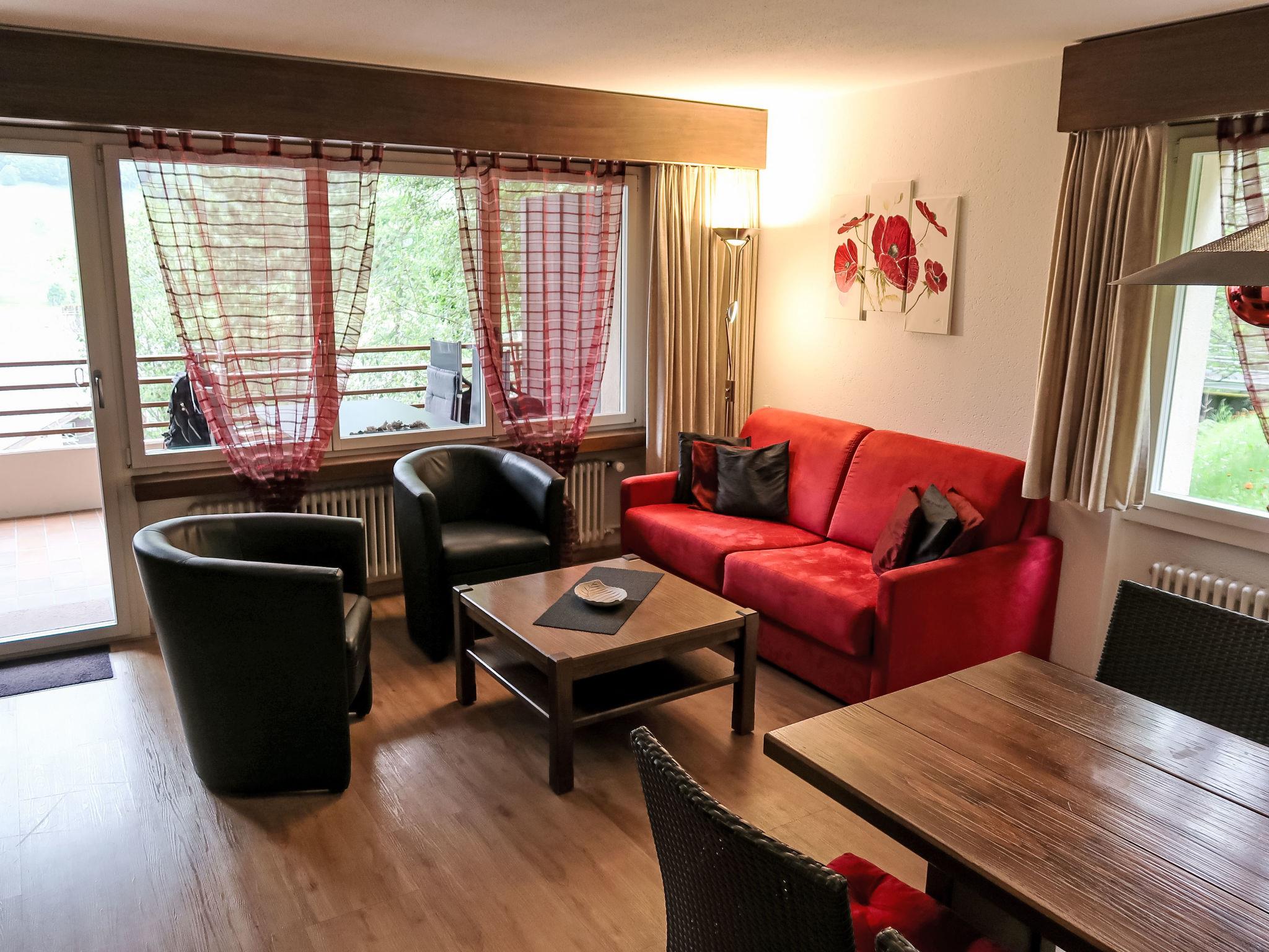 "Ringstrasse Apt 216", 2-room apartment 58 m2 on 2nd floor. Renovated in 2022, beautiful and cosy furnishings: living/dining room with 2 fold-away beds and cable TV (flat screen). 1 double bedroom. Kitchen (oven, dishwasher, 4 ceramic glass hob hotplates, toaster, kettle, microwave, electric coffee machine, Capsules for coffee machine (Nespresso) extra). Bath/WC, sep. WC. Balcony. Terrace furniture. View of the mountains and the valley. Facilities: Internet (WiFi, free). Please note: non-smokers only. Maximum 1 pet/ dog allowed.