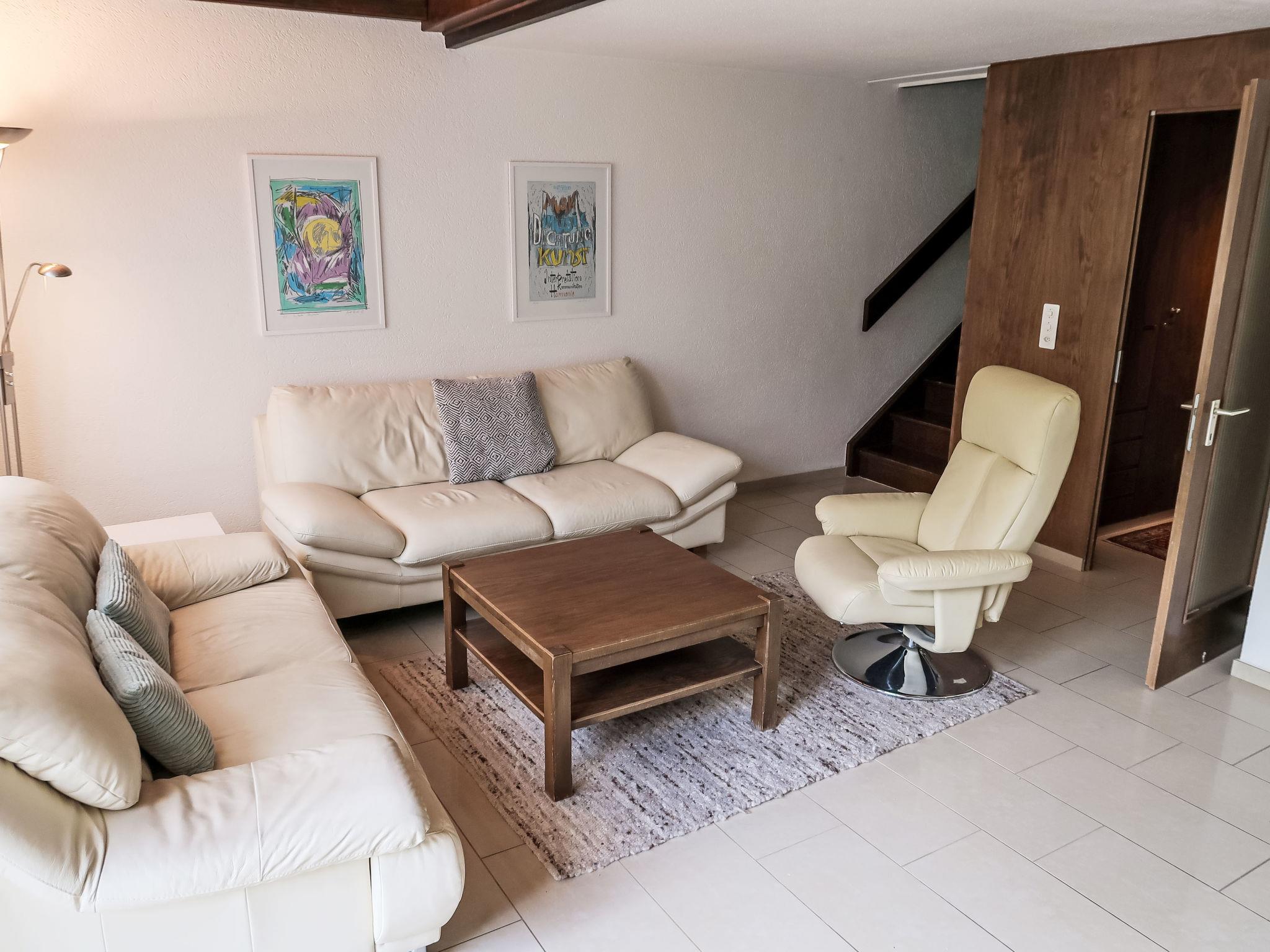"Ringstrasse Apt 422", 4-room maisonette 90 m2, on the top floor. Comfortable and cosy furnishings: living/dining room with cable TV (flat screen). Exit to the balcony. Kitchen (oven, dishwasher, 4 ceramic glass hob hotplates, microwave, electric coffee machine, Capsules for coffee machine (Nespresso) extra). Shower/WC. Upper floor: 1 double bedroom. 1 room with 2 beds and 1 sofabed. 1 room with 1 bed. Bath/WC. Large balcony. Balcony furniture. Beautiful view of the mountains, the countryside and the resort. Facilities: Internet (WiFi, free). Please note: non-smokers only.