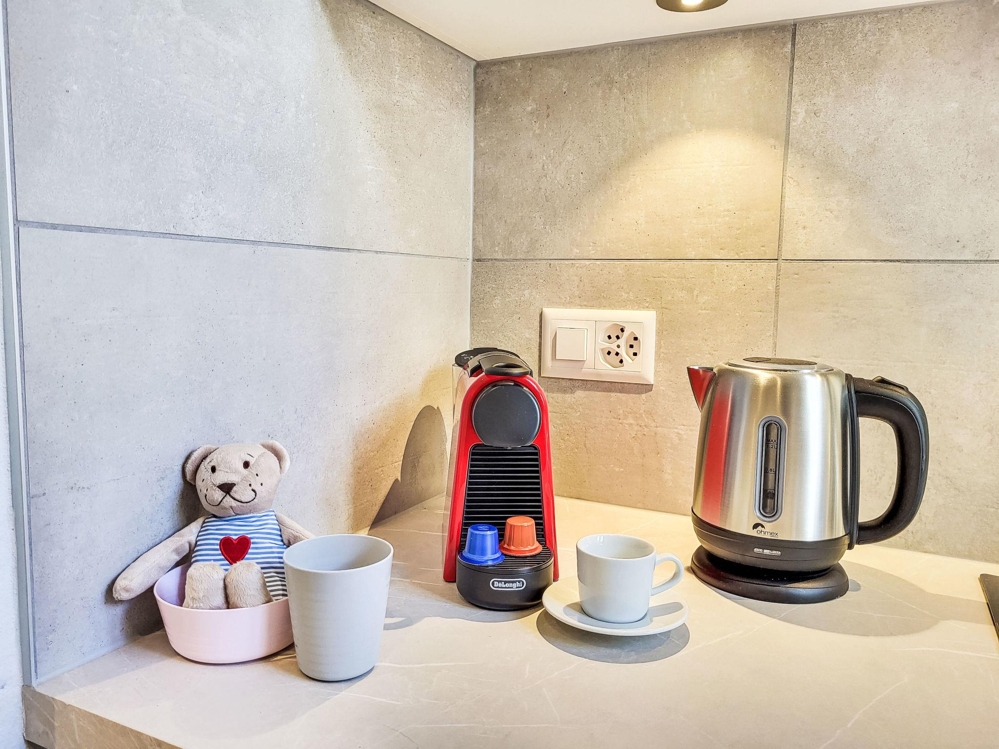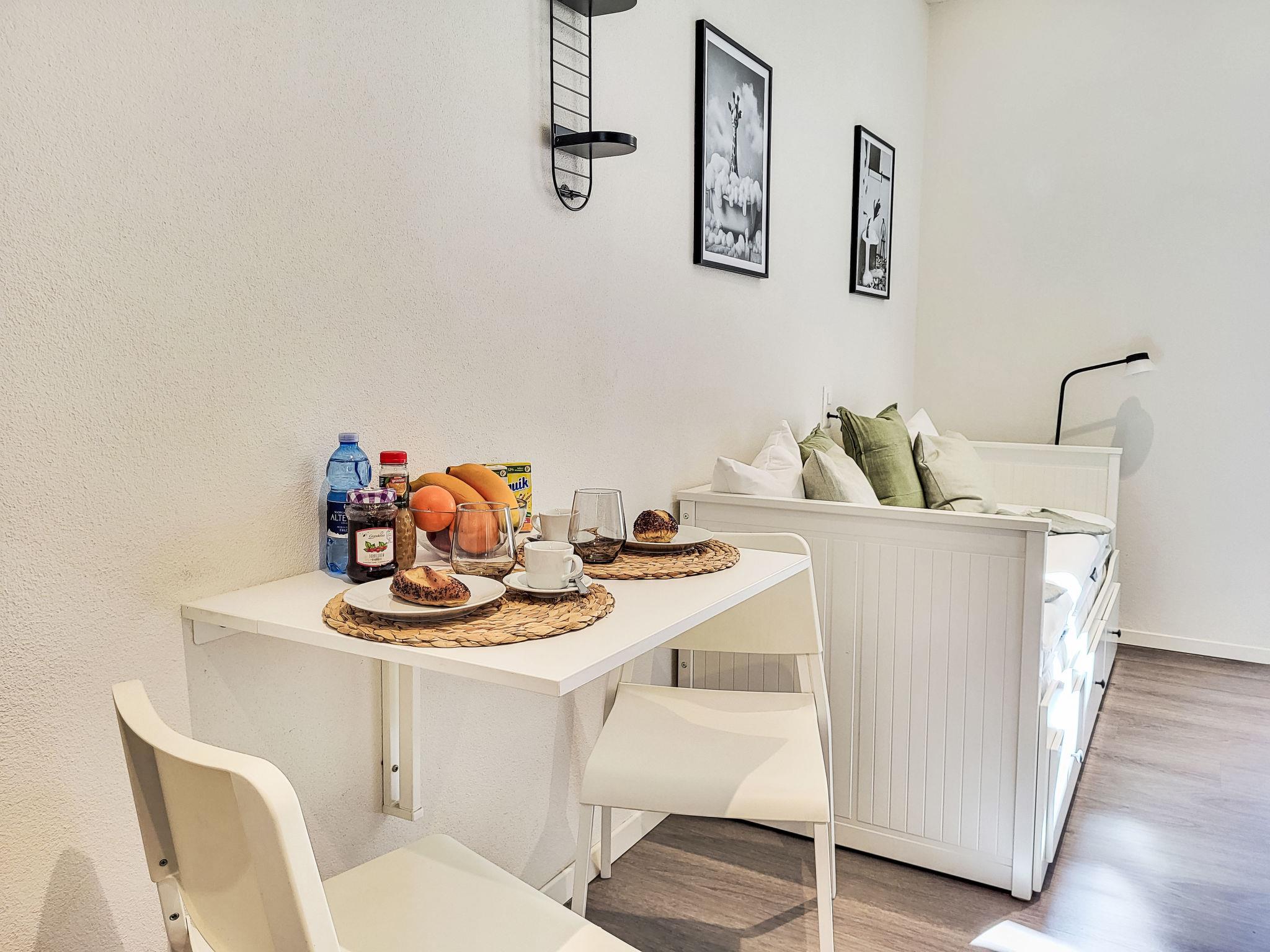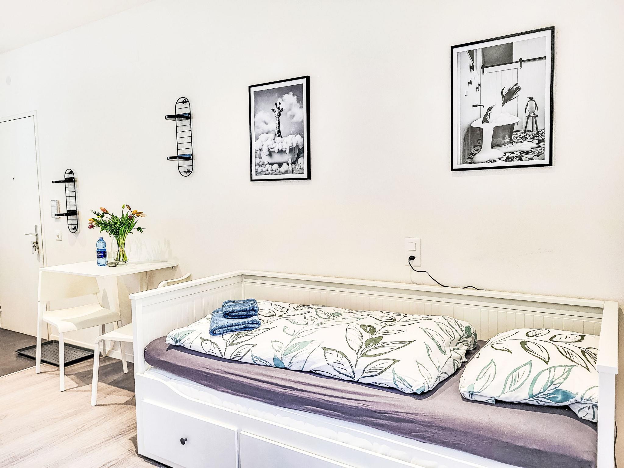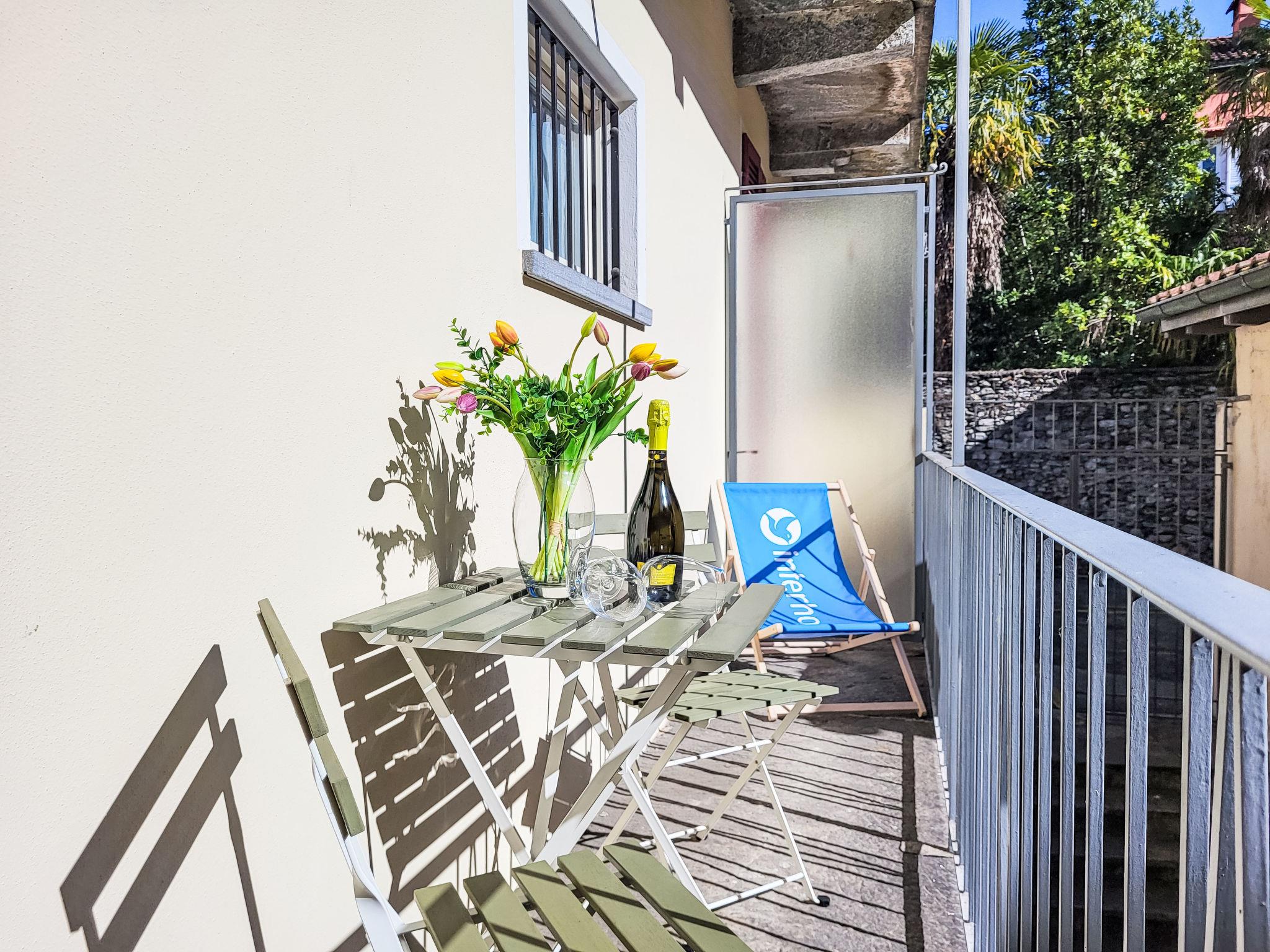 "White Locarno Apt.1", 1-room studio 25 m2, on the ground floor, south-east facing position. Object suitable for 2 adults. Bright, beautiful and modern furnishings: open living/sleeping room with 2 beds (90 cm, length 200 cm), dining table. Exit to the balcony, south-east facing position. Open kitchen (oven, 4 induction hot plates, electric coffee machine, Capsules for coffee machine (Nespresso) extra). Shower/WC. Small balcony 8 m2, south-east facing position. Terrace furniture, deck chairs (2). Side, of the town. Facilities: washing machine. Internet (WiFi). Please note: apartment courtyard side. Non-smokers only, no parking. Maximum 1 pet/ dog allowed. completely renovated in 2024, new bathroom, new kitchen, new floors. NL-00011800